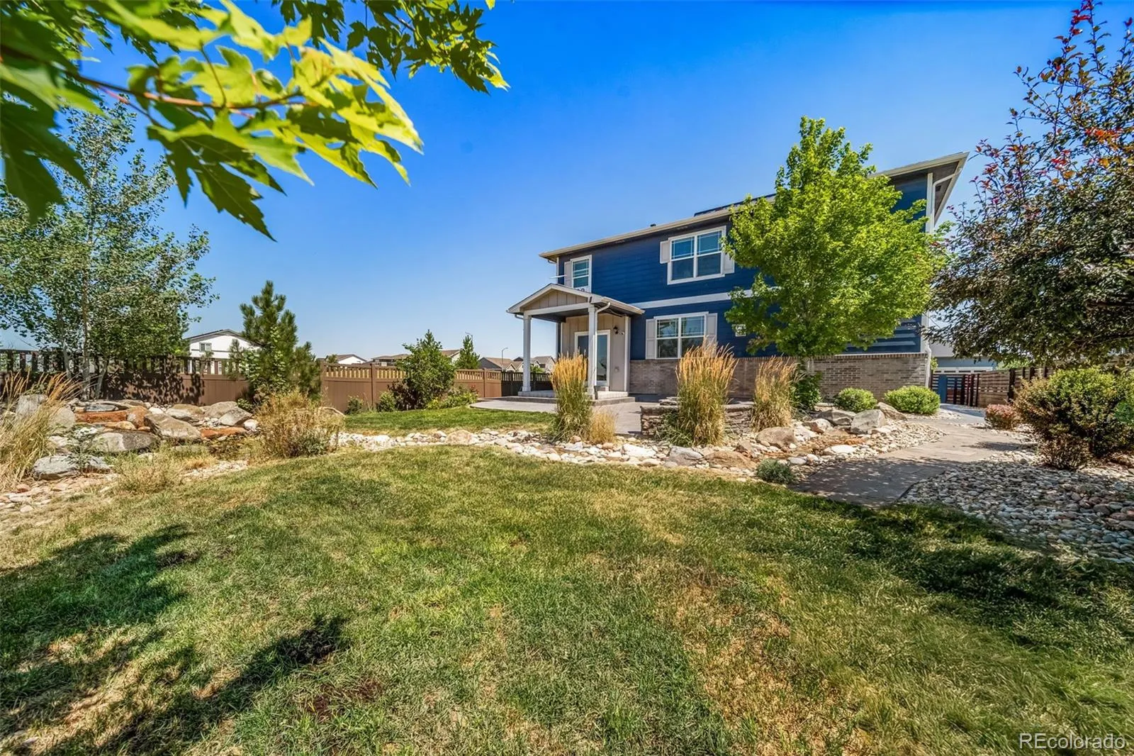Looking for a newer build, but also want beautiful landscaping? Look no further than this stunning property! Located in the desirable Harmony neighborhood, this incredible 5 bedroom, 3 bathroom home is a corner lot, backs to open space and has a backyard that is sure to impress. The home boasts an open floor plan that is perfect for entertaining and relaxing alike. From the moment you step inside, you’ll notice the brand new carpets, thoughtful layout and the incredible natural light around every corner. The gourmet kitchen features stainless steel appliances, a gas range, granite countertops and a spacious pantry. The seamless flow between the living, dining, and kitchen areas will make you feel right at home. Upstairs, you’ll find 4 bedrooms and a loft that offer plenty of space for family, guests, a home office or playroom. The primary is perfectly situated in the front of the home, has a private sitting area and walks into the primary bathroom and spacious walk-in closet. Additionally, the laundry room is thoughtfully located outside the primary and close to the upstairs bedrooms. Outside, you’ll love the covered patio, lush landscaping, a full drip system for easy maintenance, built-in gas fire pit and two incredible water features. Not to mention, the lights throughout the front and backyard are the perfect addition to this home. The unfinished basement has a great layout and is an open canvas for whatever your needs may be. The Harmony neighborhood includes a clubhouse, fitness center, pool, splash pad, parks and trails. Lastly, the home is located within walking distance to the local elementary school and is close to the Denver International Airport, Buckley Airforce Base, the highway and more! Don’t miss your chance to make this incredible home yours – schedule a showing today!