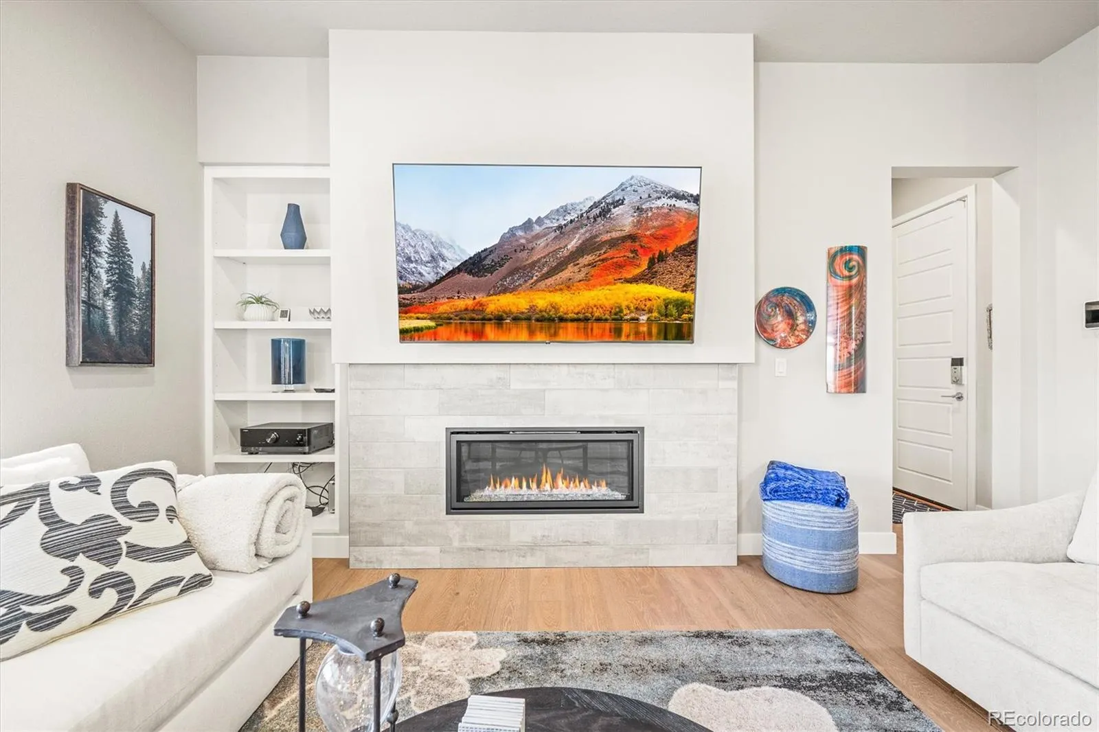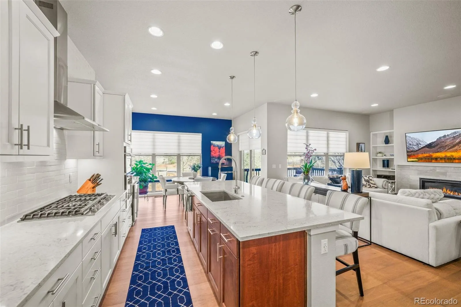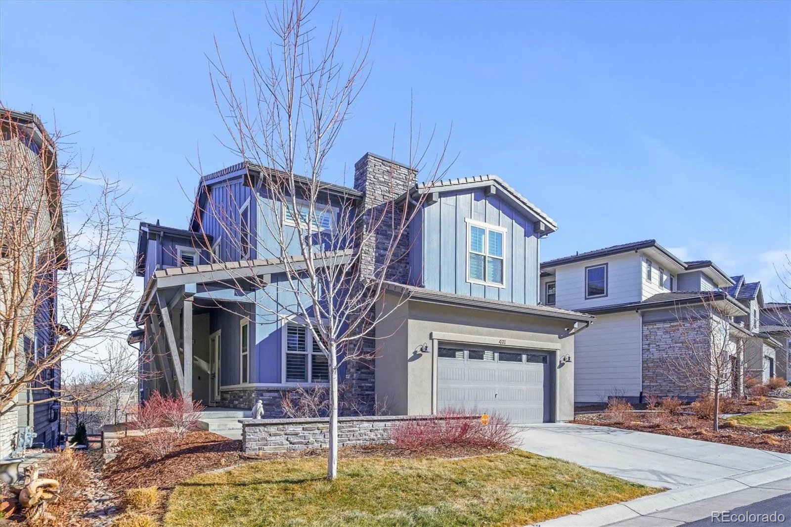Welcome home to this stunning, thoughtfully updated residence located in the highly sought-after Backcountry community. This Berkeley-built home showcases designer finishes and attention to detail throughout every room. The open-concept floor plan features engineered hardwood floors, upgraded lighting, and custom window coverings.The inviting entryway opens to a striking staircase and a beautifully designed accent wall. At the front of the home, the piano room offers versatile functionality and can easily serve as a home office, playroom, or library. The gourmet kitchen is truly impressive, featuring quartz countertops, under-cabinet lighting, a built in oven, a microwave, wine refrigerator and soft-close cabinetry that flows seamlessly into the dining area. A spacious island expands the kitchen footprint and provides ample seating,perfect for entertaining. The kitchen opens to the great room, highlighted by a stylish gas fireplace! Enjoy breathtaking sunrises from deck! Outdoor living is enhanced by a covered deck with a gas line for both a fire pit and a grill, a putting green, and a low-maintenance xeriscaped yard. The oversized 2 car garage offers additional storage for a golf cart and features an upgraded epoxy floor. Upstairs, the hallway opens to a loft-style office or exercise space. The spacious primary suite includes a stylish ensuite bathroom with upgraded tile and a walk-in closet. Two additional bedrooms, a laundry room and a full bathroom complete the upper level.The garden-level basement offers a nanny or mother-in-law suite that includes a bedroom with an adjacent bathroom, a wine fridge and counter space! There is a second great room that is perfect for movie nights or game days. Enjoy ample storage, and a whole-house humidifier and dual zone for heat and air. Backcountry offers an exceptional lifestyle with access to the Sundial House, Lost Coffee, pools, restaurants, scenic walking and biking trails, and vibrant community gatherings!
