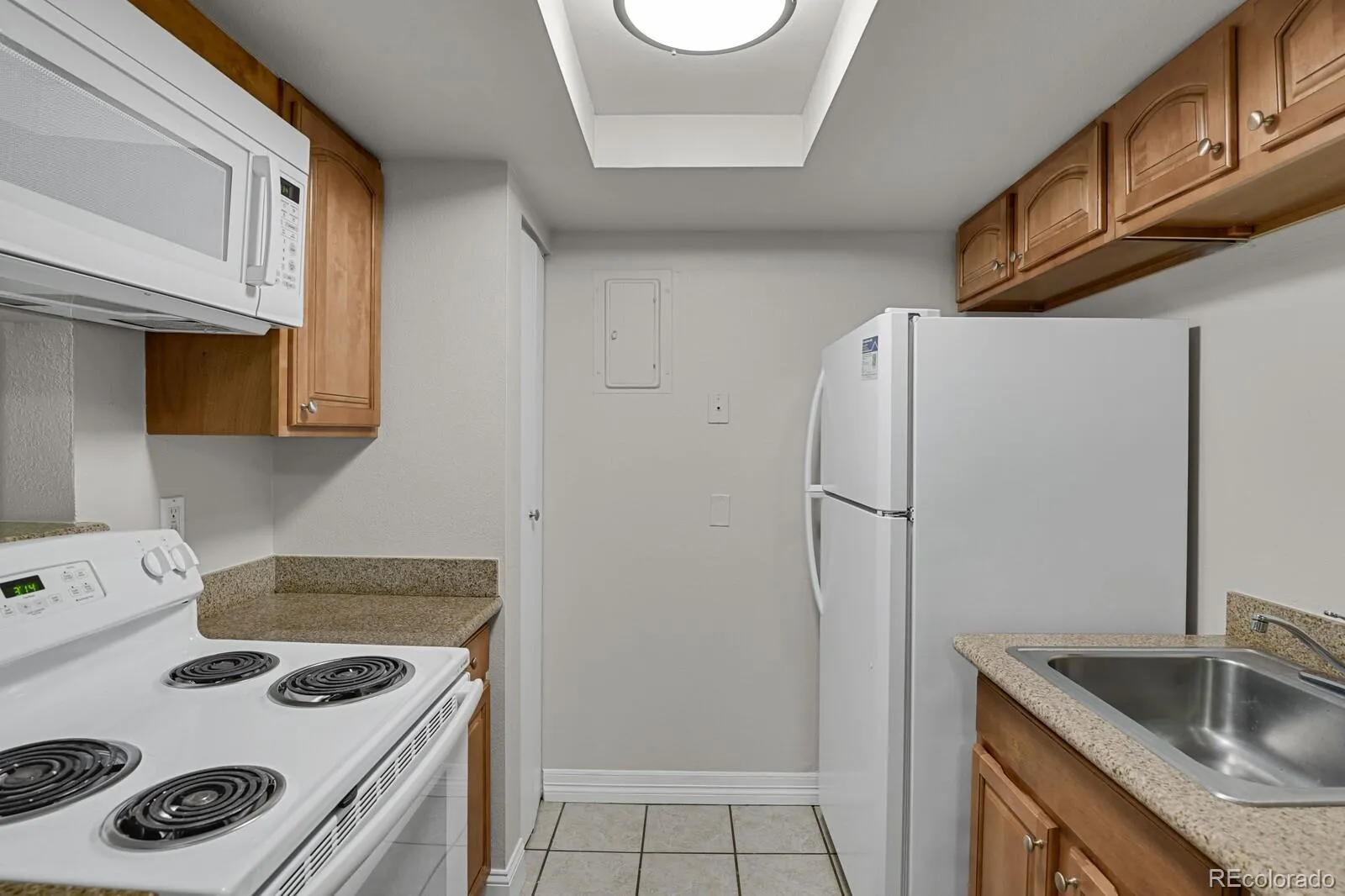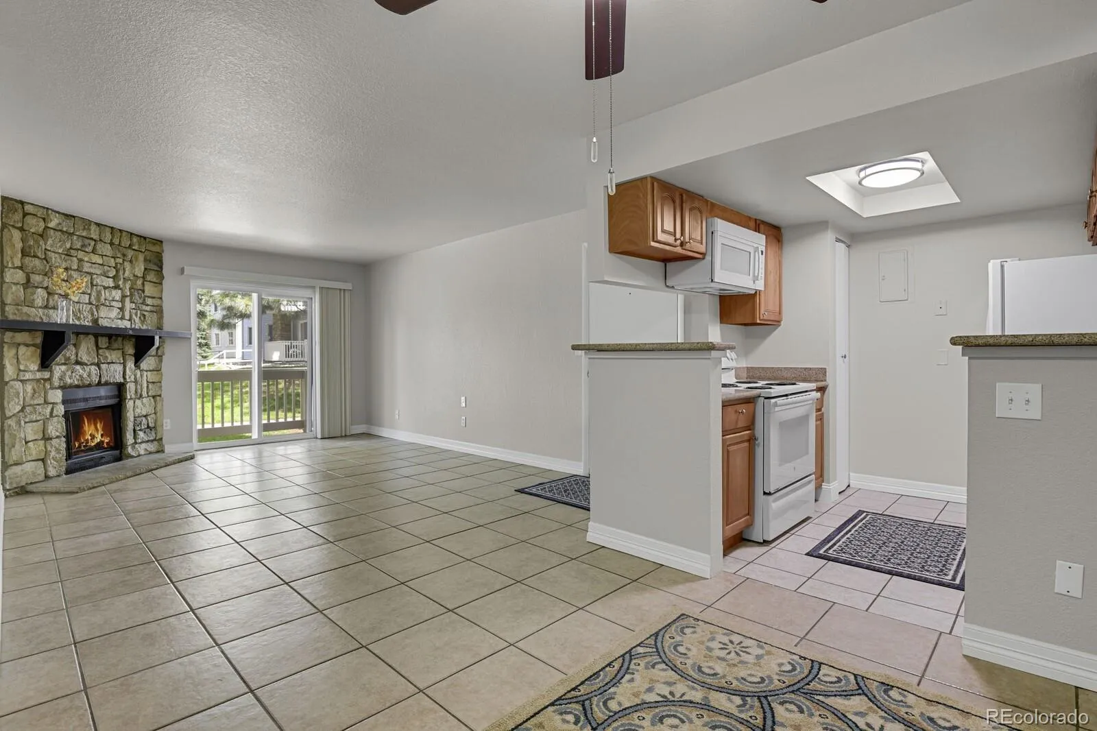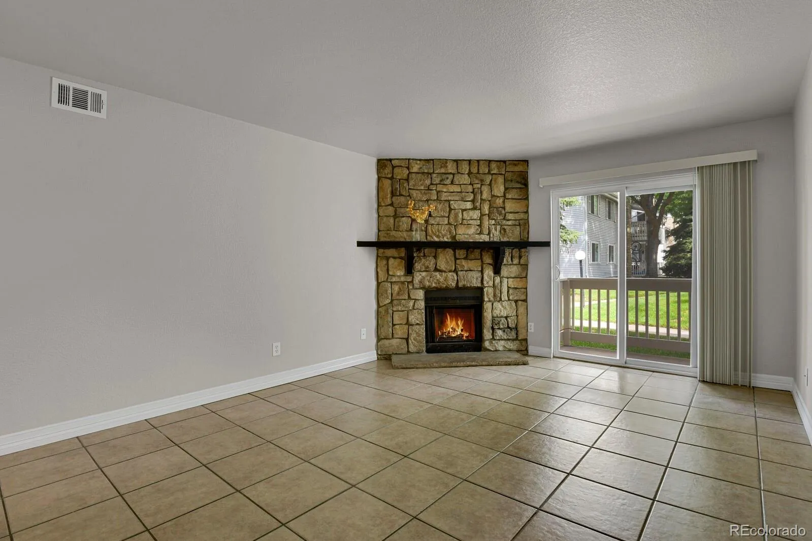 Fantastic 1-bedroom, 1-bathroom ground-level corner unit condo. Kitchen and dining space are open to the living room. In the living room, you will find a cozy wood-burning fireplace and an access door to a small outdoor area/balcony. The bedroom is generously sized with a walk-in closet! The laundry area is large enough for a side-by-side washer and dryer. The bathroom features a granite countertop. This unit includes air conditioning and one reserved parking spot. This is a great complex with a community pool and is within walking distance to Cherry Creek District Middle and High schools. Conveniently located near I-225 and the Iliff light rail station, with great trails and parks nearby. This is the perfect home for a first-time homebuyer or a great rental/investment property. You will love it here!