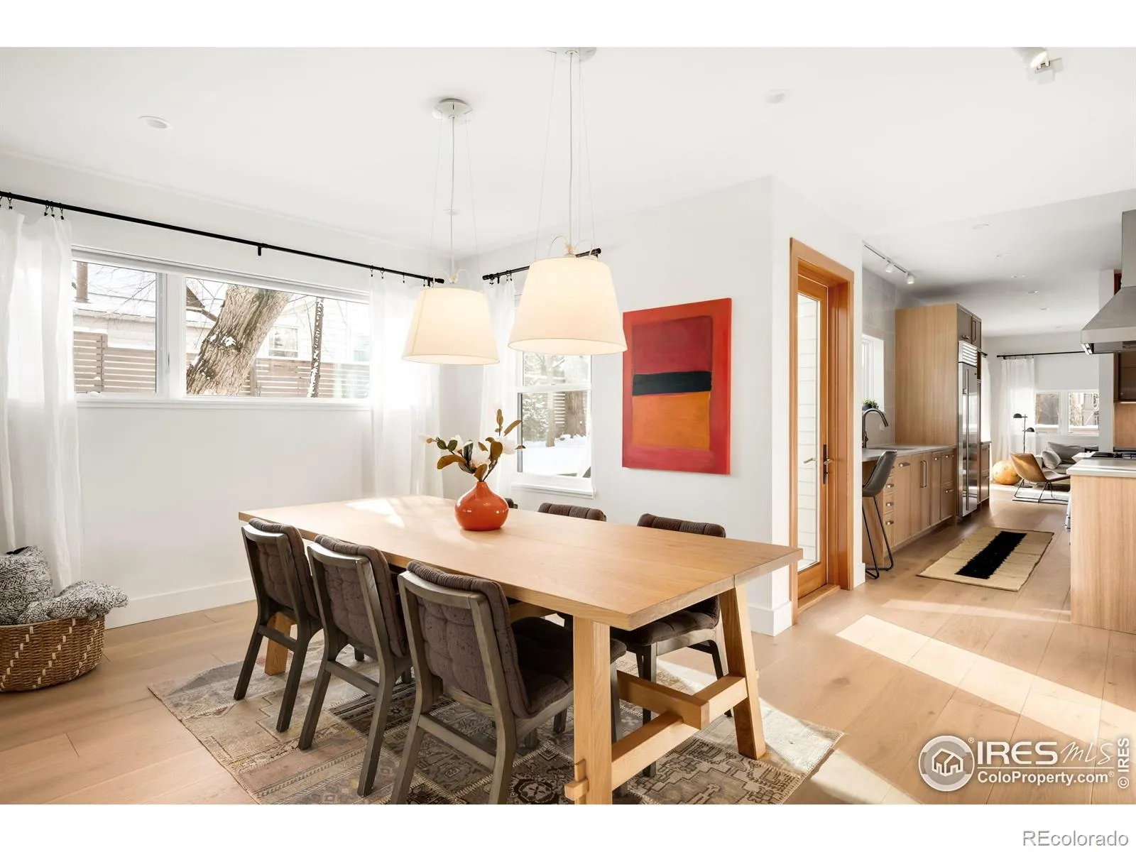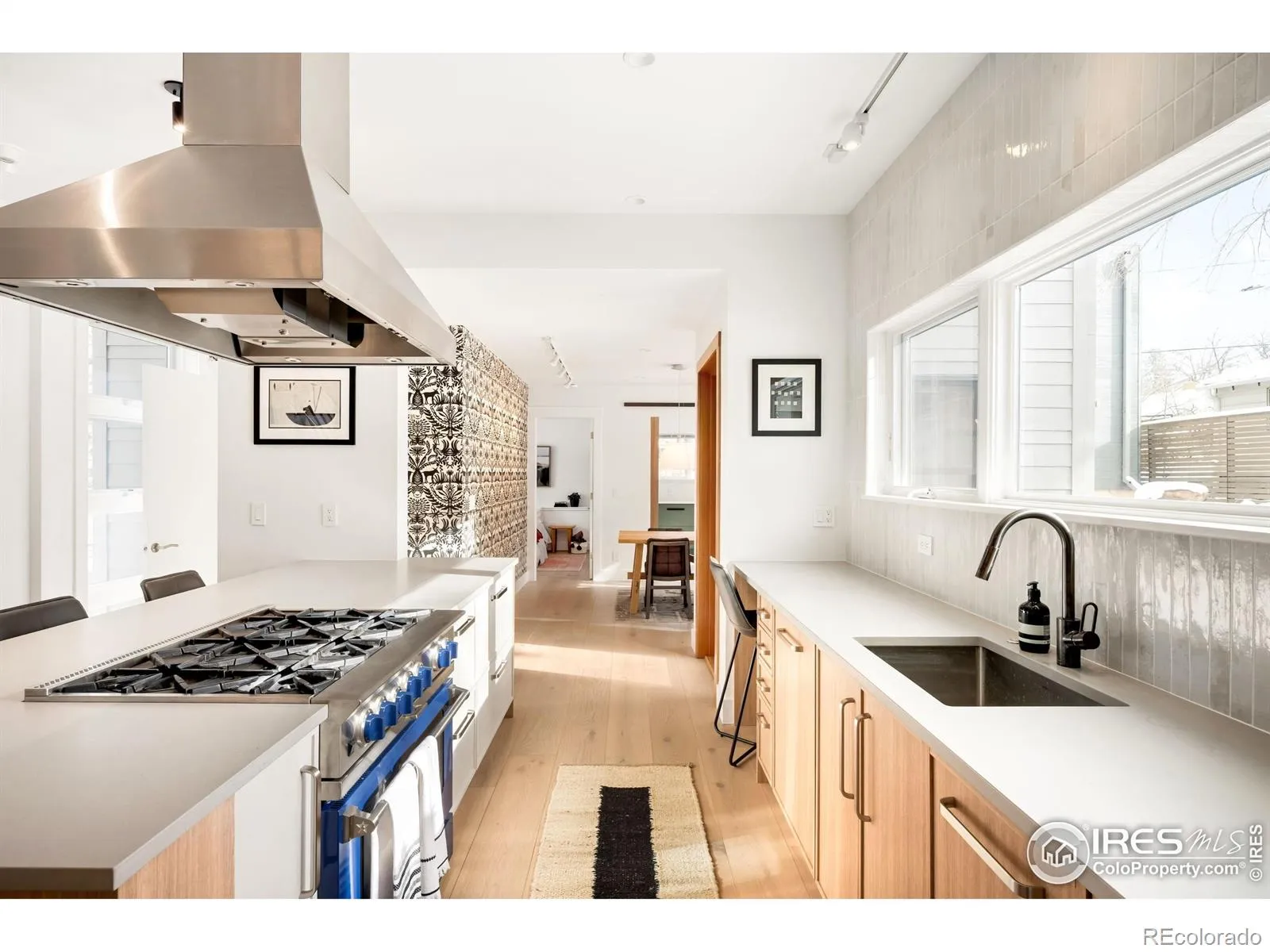 A compelling blend of modern architecture and walkable Boulder living, this Rose Hill residence occupies an oversized corner lot with mountain views in one of the city’s most desirable locations near Chautauqua Park. Built in 2013 and recently remodeled, the home is rooted in Scandinavian-inspired design, defined by clean lines, natural materials, and a thoughtful emphasis on light, proportion, and function. The main level features wide-plank wood flooring, w/in-floor radiant heat and a refreshed kitchen with new cabinetry, updated countertops, and a walk-in butler’s pantry designed for both daily living and entertaining. A newly added mudroom enhances everyday functionality, while an upper-level living room provides flexible space for work, media, or retreat. The generously sized primary suite offers a calm and private sanctuary. Outdoor living is seamlessly integrated through a wraparound porch and expansive deck that extend the interior spaces and frame the surrounding landscape. Additionally, a detached two-car garage includes a finished studio apartment above – ideal for guests, a home office, or income potential. High-efficiency systems, including an air-source heat pump with in-floor radiant and hydronic heating, ensure year-round comfort. Ideally located near Alpine Modern, close to Chautauqua Hall and trail access, and just a 10-minute walk to downtown Boulder, this home offers a refined balance of architecture, lifestyle, and location.