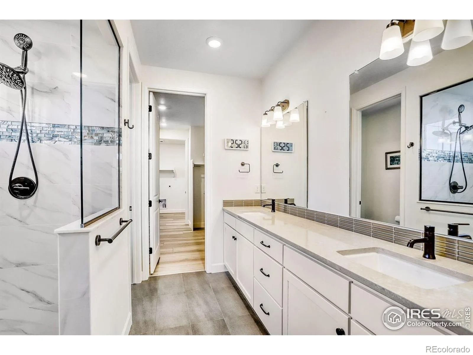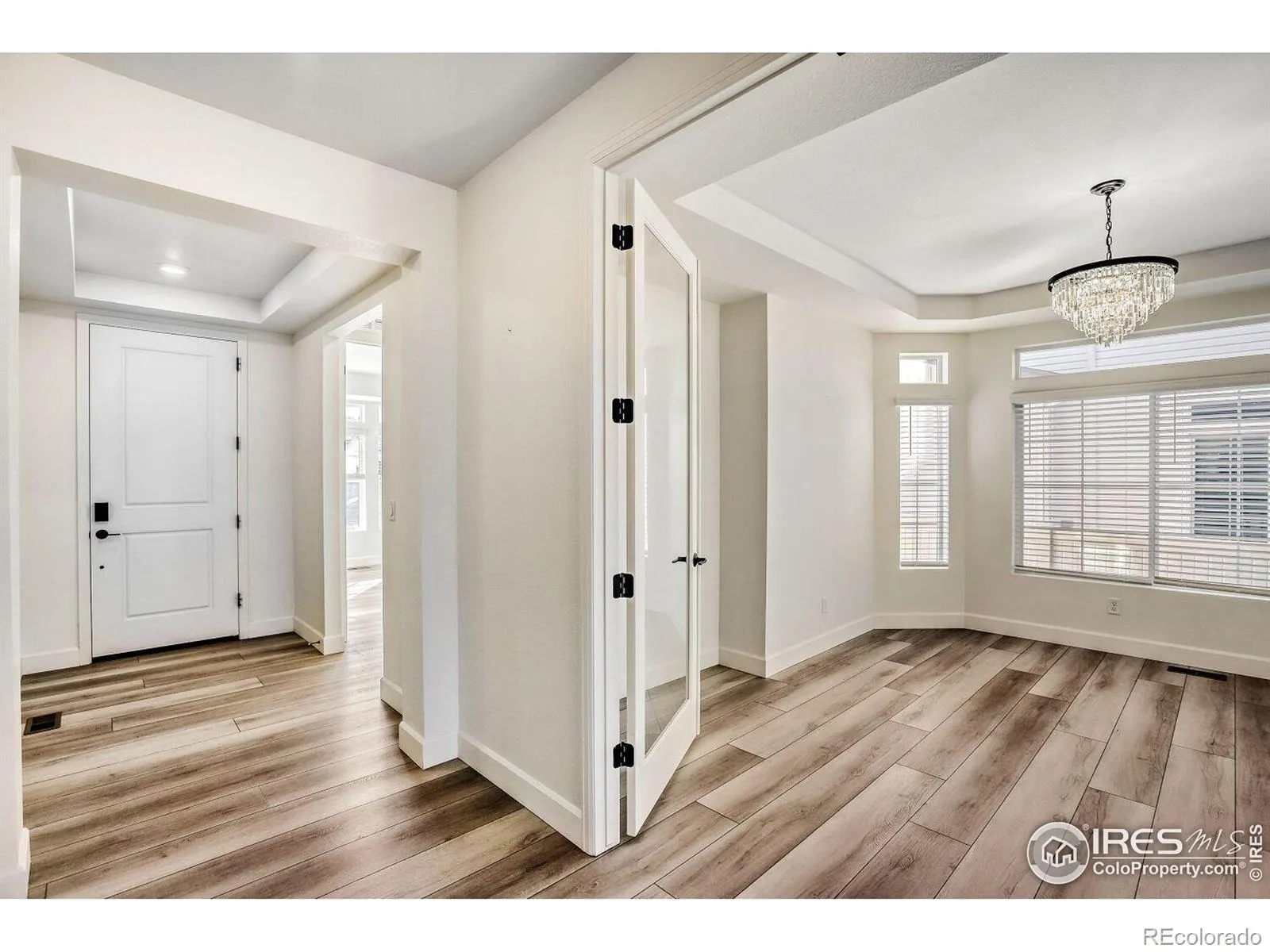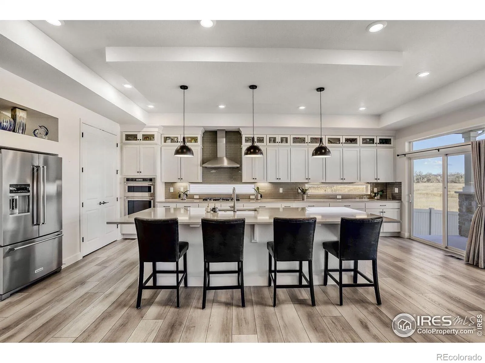 Welcome to this pristine, meticulously maintained 4-bed, 3.5-bath ranch in the heart of Thompson River Ranch – one of Colorado’s most desirable communities. Built in 2023, this home offers modern design, open living, and a layout perfectly suited for both everyday comfort and entertaining. The heart of the home is the gourmet kitchen, featuring a stunning quartz eat-in island, five-burner gas cooktop, SS appliances, walk-in pantry, abundant cabinetry, and full tile backsplash. The kitchen flows effortlessly into the great room with fireplace and dining area, creating an inviting space for gatherings or quiet evenings at home. The main-level primary suite is a private retreat with a spa-style shower, dual vanities, walk-in closet, and direct access to the laundry room. A main-floor study with French doors provides flexible space for a home office or formal dining. The finished basement expands your living options with a spacious family room, two bedrooms, a full bath, activity center, and generous storage. Throughout the home, careful post-build attention to detail ensured minor fit-and-finish items were professionally addressed, resulting in a truly polished, move-in-ready residence. Added comforts include a whole-house humidifier for year-round comfort. Step outside to a fully landscaped and fully irrigated backyard with drip lines, backing to open space with sweeping views down to the river corridor, massive mature trees, and frequent wildlife sightings – a peaceful setting that truly sets this home apart. An oversized 2-car garage offers excellent space for vehicles, gear, and storage. Thompson River Ranch residents enjoy pools, clubhouse, disc golf, parks, trails, and year-round community events, along with easy access to I-25, shopping, and top-rated schools. Just minutes from Loveland’s thriving arts scene, Boyd Lake, and mountain recreation. Ready for your private showing – a rare opportunity to own a truly turn-key home in an exceptional setting.