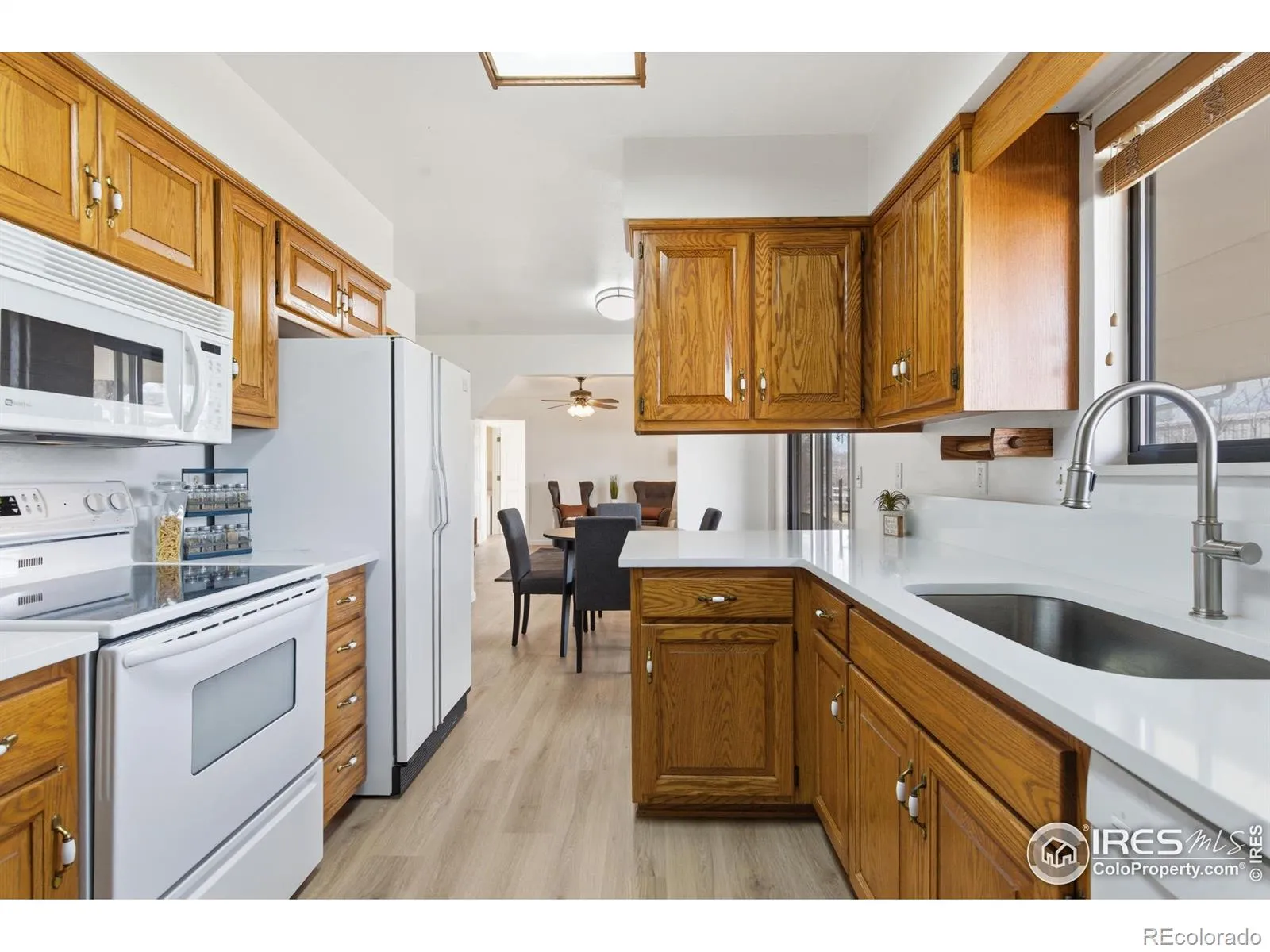 Welcome to your charming and versatile home nestled on a spacious .24-acre lot. This beautifully maintained property is in spectacular condition and offers 3 bedrooms and 3 bathrooms along with thoughtful updates and flexible living spaces. This home features fresh LVP flooring and updated paint throughout much of the home, creating a light and inviting feel. The kitchen shines with quartz countertops, a new sink, faucet, and disposal, while the updated primary bathroom adds a touch of modern comfort. A standout feature is the bonus room on the side of the home with its own exterior entrance. It is connected to the interior of the house but can be closed off with a door for added privacy, making it an excellent option for an in-home business, studio, office, or hobby space. Enjoy Colorado living on the covered back patio, overlooking the spacious yard and included storage shed. The oversized garage is a dream for hobbyists, offering brand-new garage doors, built-in shelving, and a dedicated workspace. Additional updates include many new light fixtures, giving the home a fresh, move-in-ready feel. All of this comes with no HOA, offering flexibility and freedom for how you use your property. With room to spread out inside and out, and so many recent upgrades, 617 Clifford Ct. is ready to welcome you home.