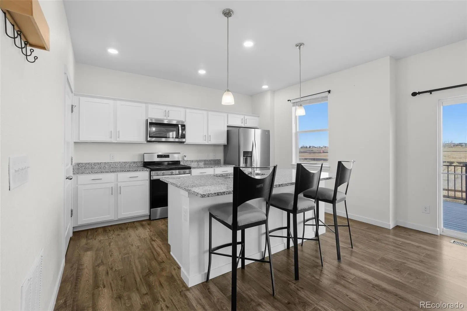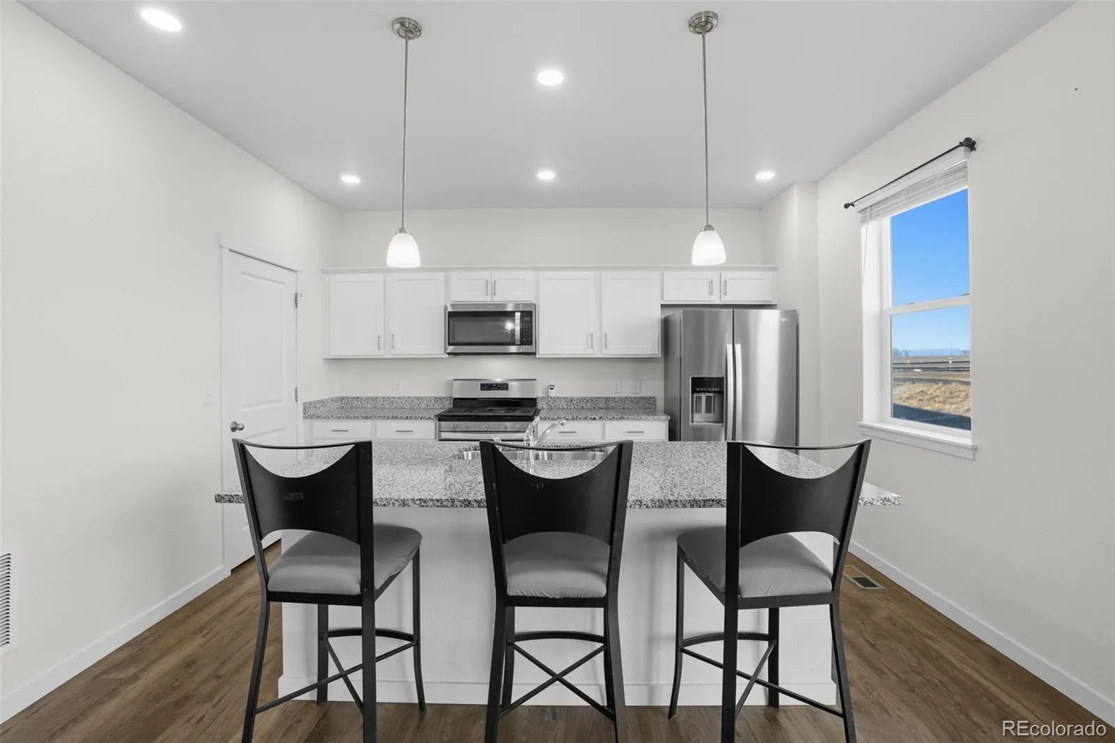 Welcome to this stunning, move-in-ready residence located in the vibrant Mountain Sky community of Fort Lupton. Built in 2021 and maintained in excellent condition, this home perfectly balances modern sophistication with everyday functionality. The journey begins with a versatile front bonus room, ideal for a dedicated home office, which leads seamlessly into the heart of the home: an expansive, light-filled open-concept living space. The gourmet kitchen serves as a central hub, featuring a large island, sleek cabinetry, and a full suite of stainless steel appliances. Upstairs, a generous loft offers a secondary living area, providing the perfect flexibility for a media room or play space. The primary suite acts as a private sanctuary with its own four-piece bath, complemented by two additional spacious bedrooms and a convenient upper-level laundry room. What truly sets this property apart is its premium location; the home is situated along a protected drainage corridor behind the property, creating separation from future development and ensuring no homes will be built directly behind the house. This thoughtful buffer provides added privacy and breathing room compared to many homes in the area. The outdoor experience is enhanced by a fully fenced yard featuring a lovely deck, perfect for peaceful mornings or summer gatherings. Situated just minutes from local schools and shopping, this home offers the ultimate convenience for busy lifestyles. For those ready to move, the property is available for a quick close in as little as 10 days. With easy access to I-76 and Highways 52 and 85, you are perfectly positioned for a seamless commute to Denver, Brighton, or Greeley while enjoying a quiet, turn-key retreat.