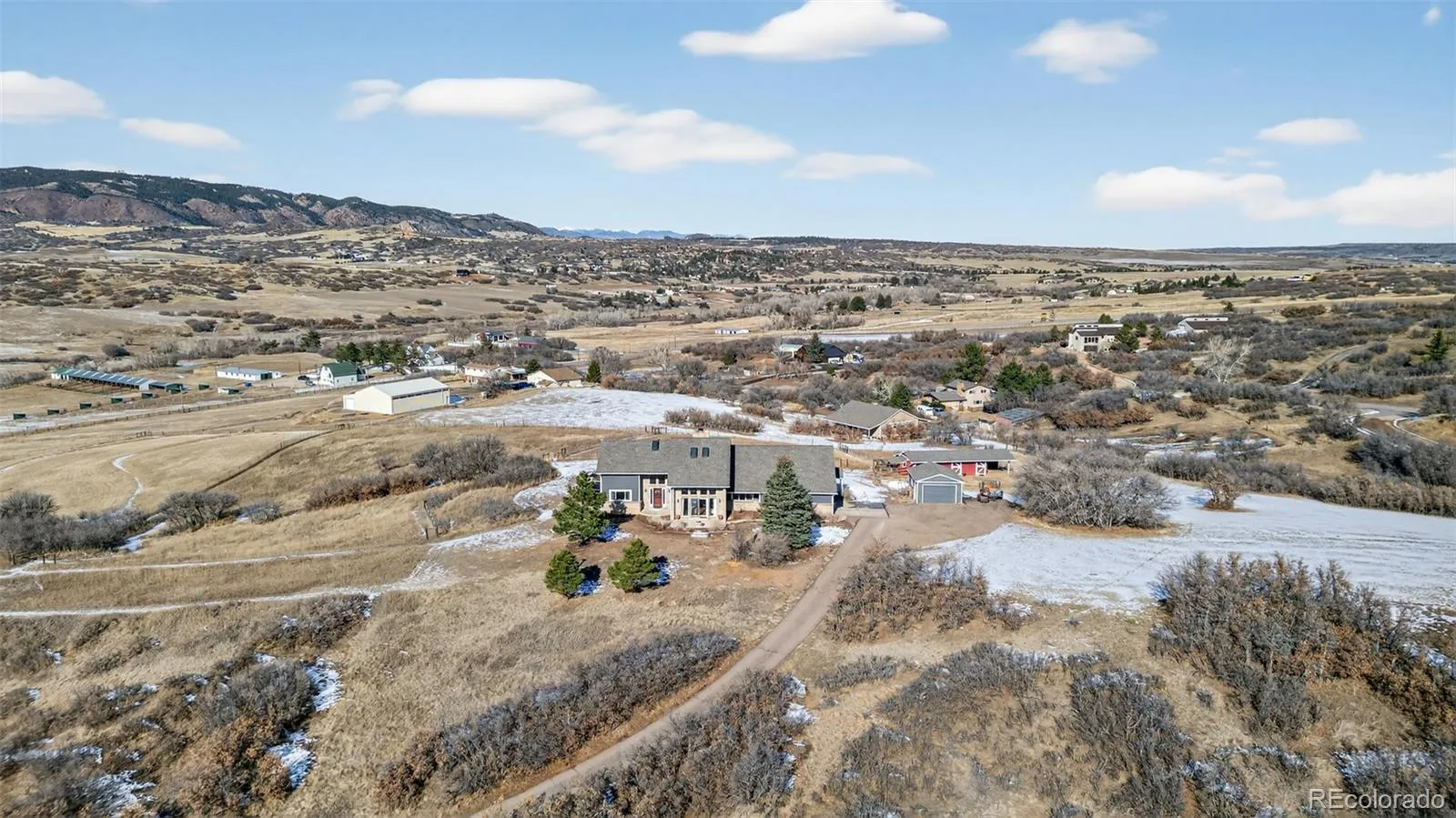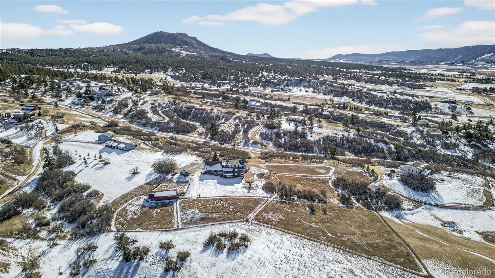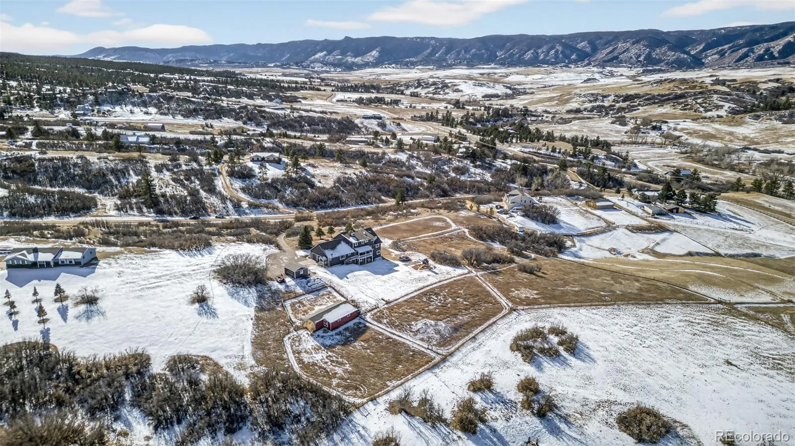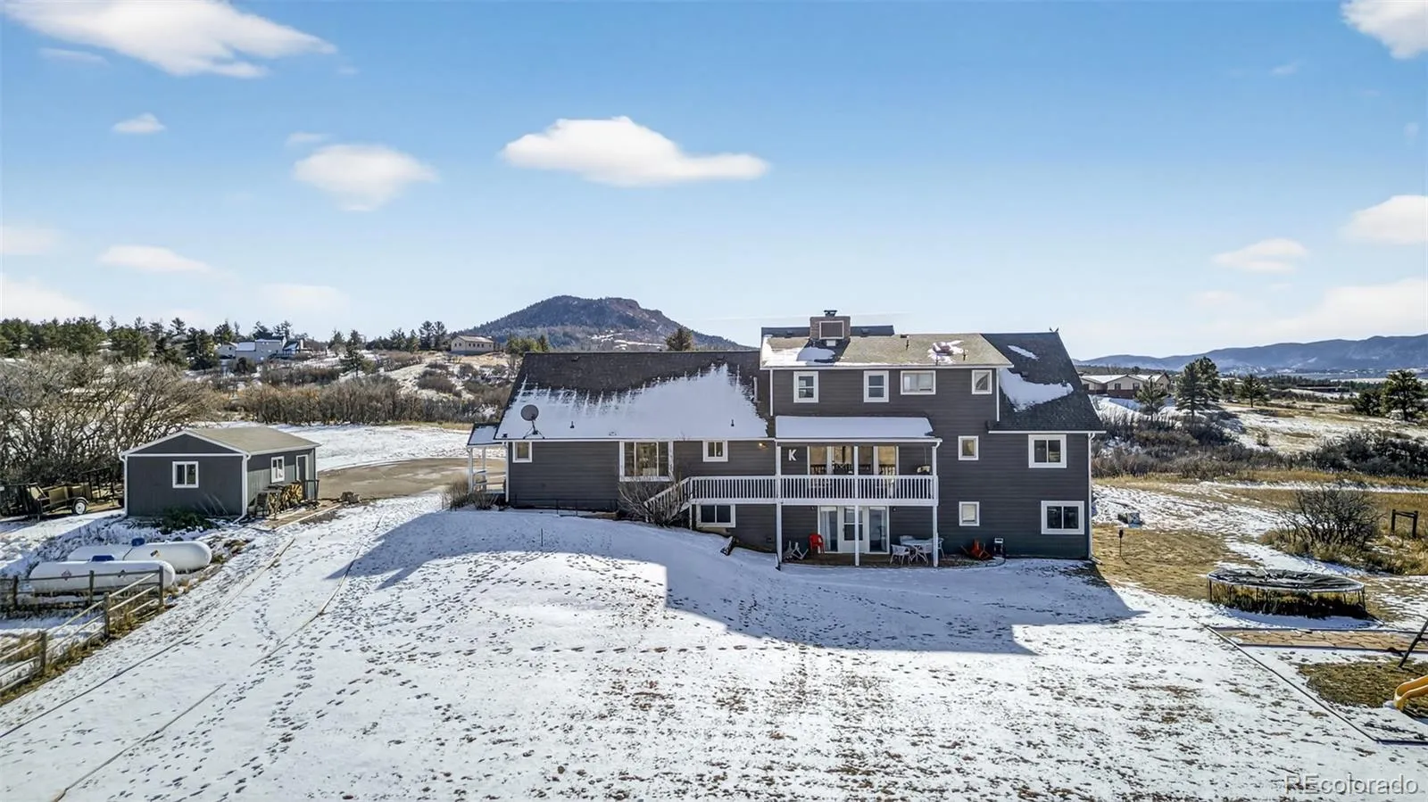 Welcome to your own little slice of Heaven!! Properties like this don’t come around often. This property offers 5 acres of uninterrupted 360 degree views. The view out of every window of the home is truly breathtaking and special. There is a 3 stall barn with electrical and water installed. The well rights include water for horses/livestock. Included is a detached one car garage which can be used as a workspace, garage or storage. Inside the home you’ll be greeted with vaulted ceilings, stunning wood beams, large picture windows allowing views from every turn and a double sided fireplace perfect for those cold snowy Colorado nights. The home offers a main floor Primary Suite with attached en-suite, 2 bedrooms upstairs and 2 additional bedrooms in the walk-out basement. In the basement you’ll also find a large unfinished storage space, work out room, family room as well as a spacious full bathroom. The roof, gutters, windows and carpet are all newer in the last 5 years and the hardwood floors throughout the main floor of the home were just refinished and are stunning! The home is on a well and septic and has 2, 1,000 gallon propane tanks for ample gas to the home. This place offers so much peace, tranquility, quiet and space. Don’t let this one pass you up! Begin your true Colorado living today!!
