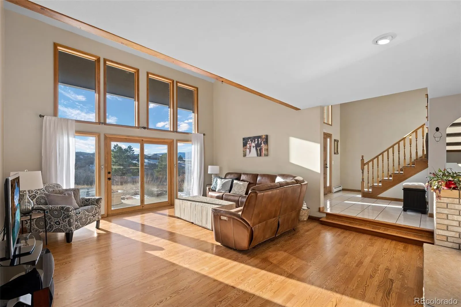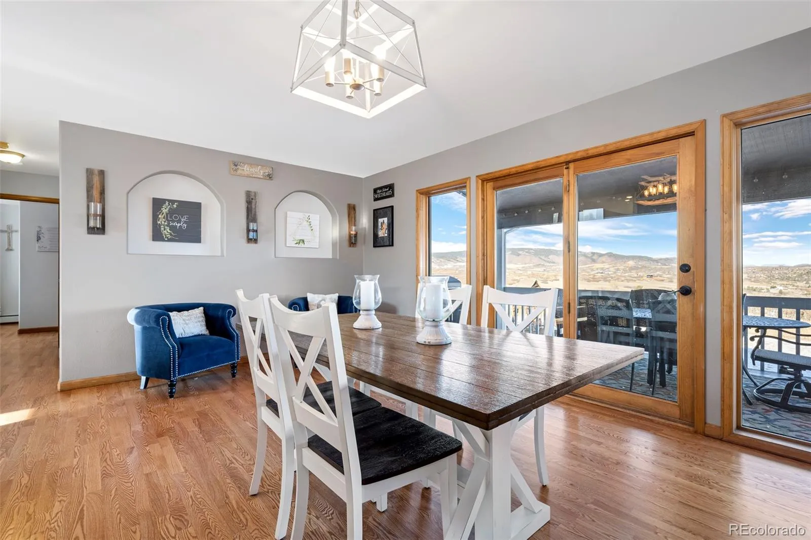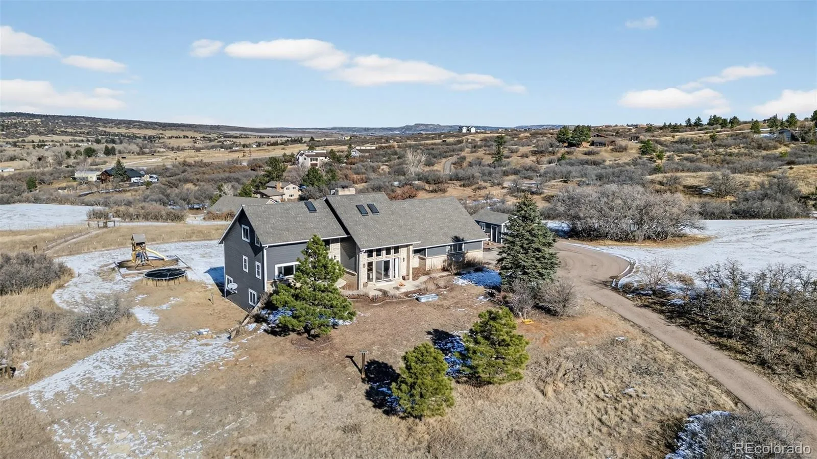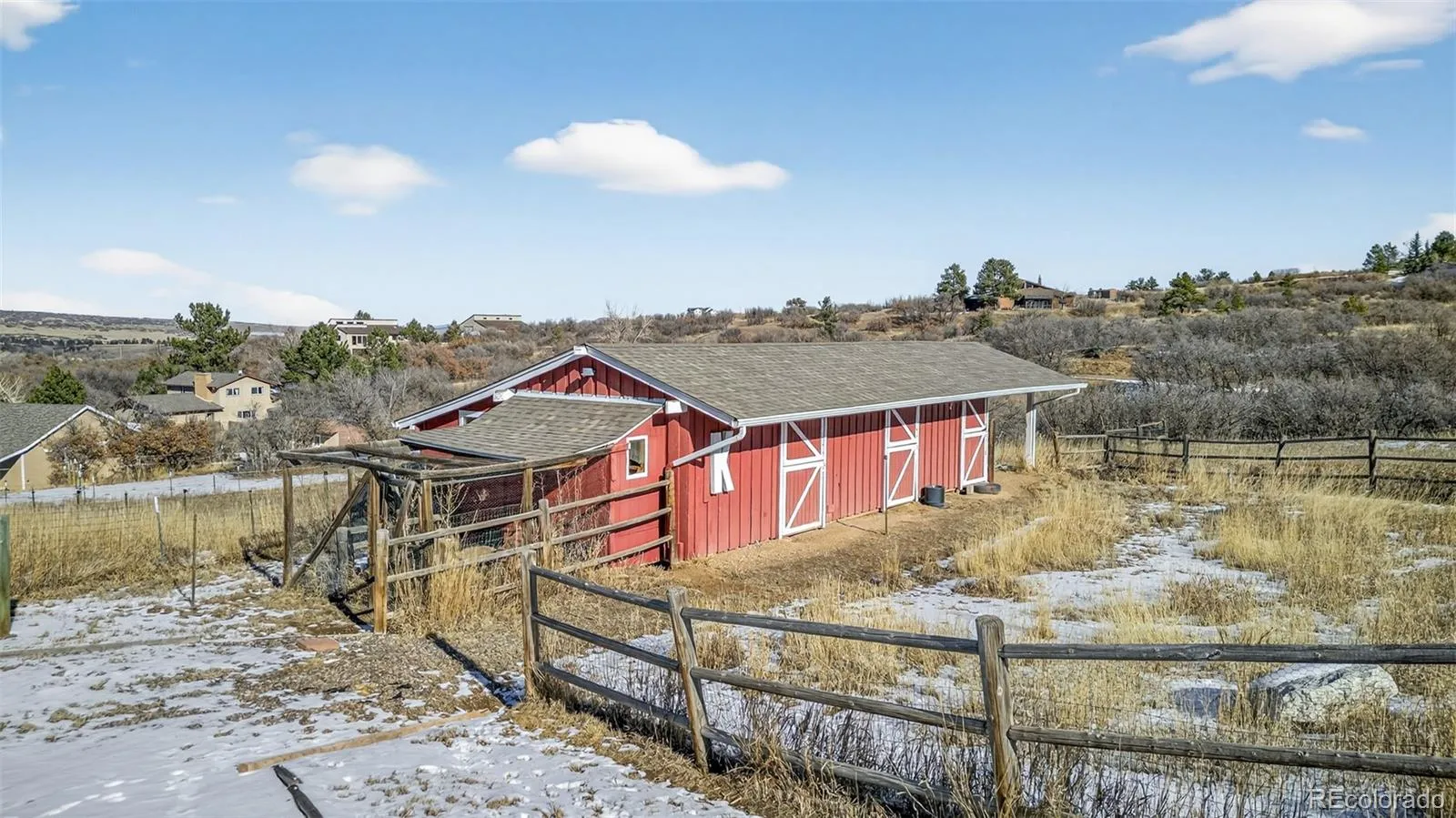 Welcome to your own little slice of Heaven!! Properties like this don’t come around often. This property offers 5 acres of uninterrupted 360 degree views. The view out of every window of the home is truly breathtaking and special. There is a 3 stall barn with electrical and water installed. The well rights include water for horses/livestock. Included is a detached one car garage which can be used as a workspace, garage or storage. Inside the home you’ll be greeted with vaulted ceilings, stunning wood beams, large picture windows allowing views from every turn and a double sided fireplace perfect for those cold snowy Colorado nights. The home offers a main floor Primary Suite with attached en-suite, 2 bedrooms upstairs and 2 additional bedrooms in the walk-out basement. In the basement you’ll also find a large unfinished storage space, work out room, family room as well as a spacious full bathroom. The roof, gutters, windows and carpet are all newer in the last 5 years and the hardwood floors throughout the main floor of the home were just refinished and are stunning! The home is on a well and septic and has 2, 1,000 gallon propane tanks for ample gas to the home. This place offers so much peace, tranquility, quiet and space. Don’t let this one pass you up! Begin your true Colorado living today!!
