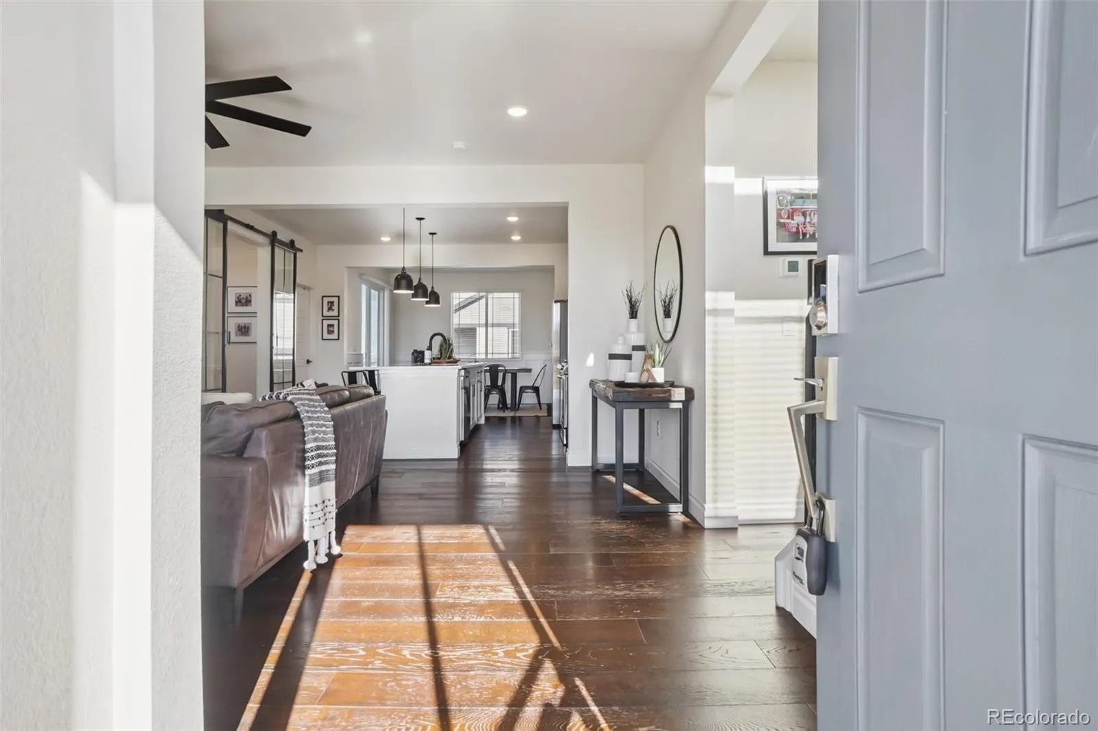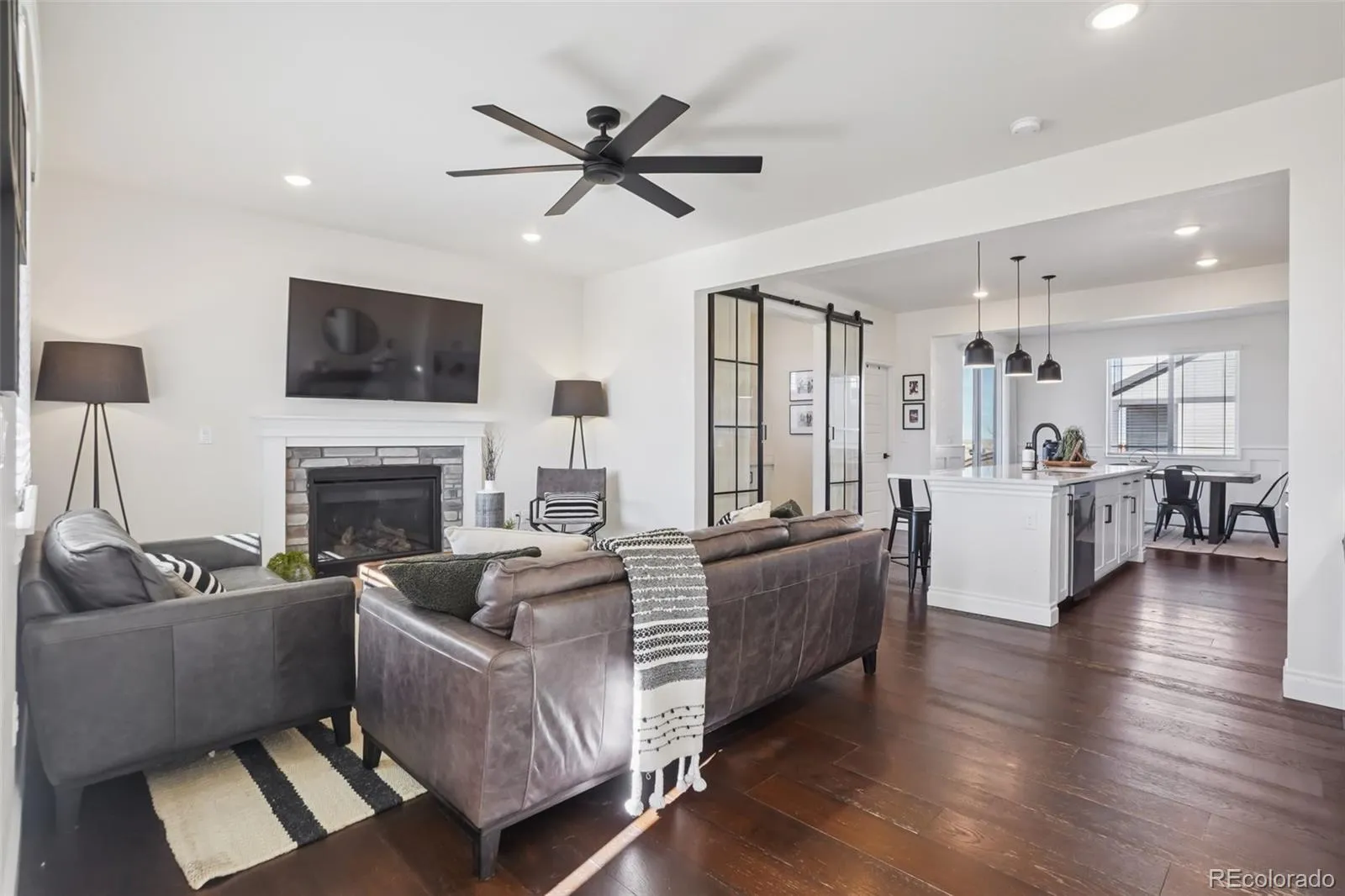 Step inside to beautiful real wood floors and an abundance of natural light that welcomes you into the living room, complete with a cozy fireplace. The space flows seamlessly into a show-stopping kitchen designed for entertaining. Featuring quartz countertops, sleek black iron finishes, a gas stovetop, and a Samsung refrigerator with a knock-door feature, this kitchen is truly magazine-worthy. The dining area comfortably accommodates a large dining table, making it ideal for gatherings.