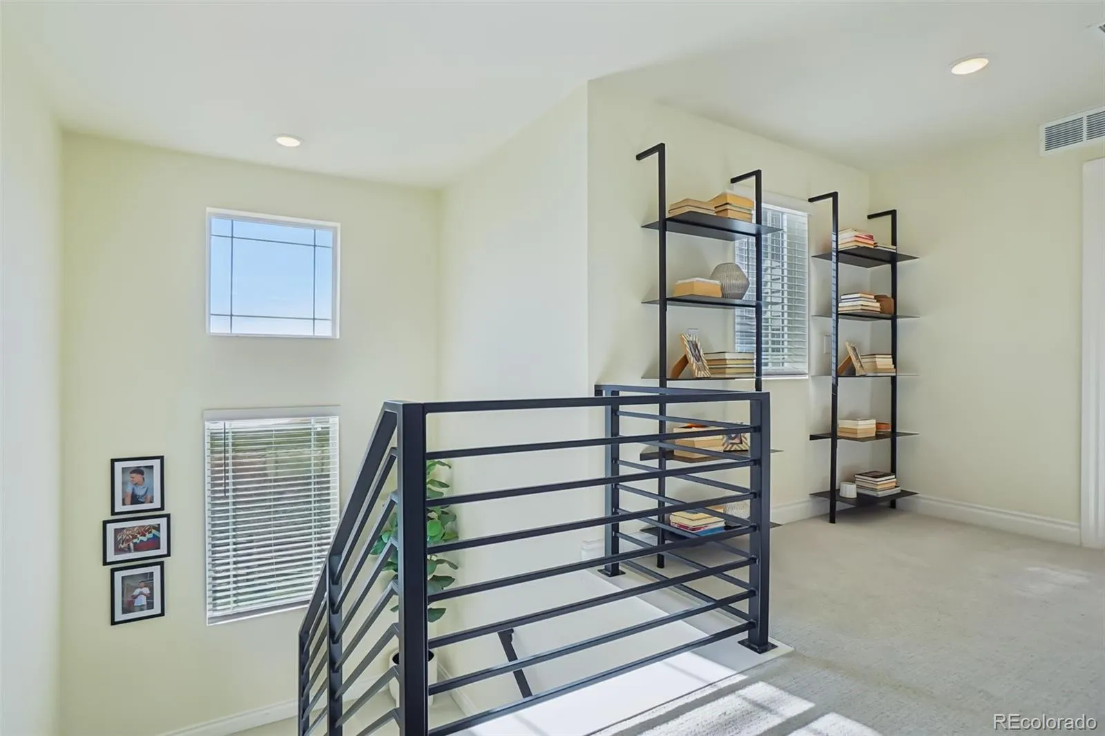 Upstairs, you’ll find a cozy bonus space that makes an ideal reading nook or relaxation area. The primary suite feels like an upscale hotel spa retreat, complete with a luxurious bathroom and walk-in closets professionally designed by California Closets. These custom closet systems extend to all three additional bedrooms on this level. Upstairs laundry makes for easy chores. This home doesn’t lack in storage space in the closets or in the garage.