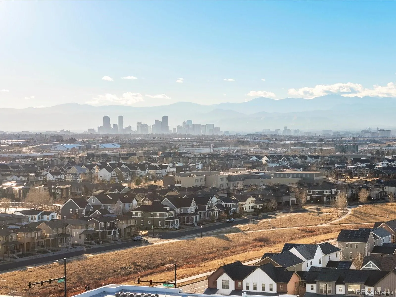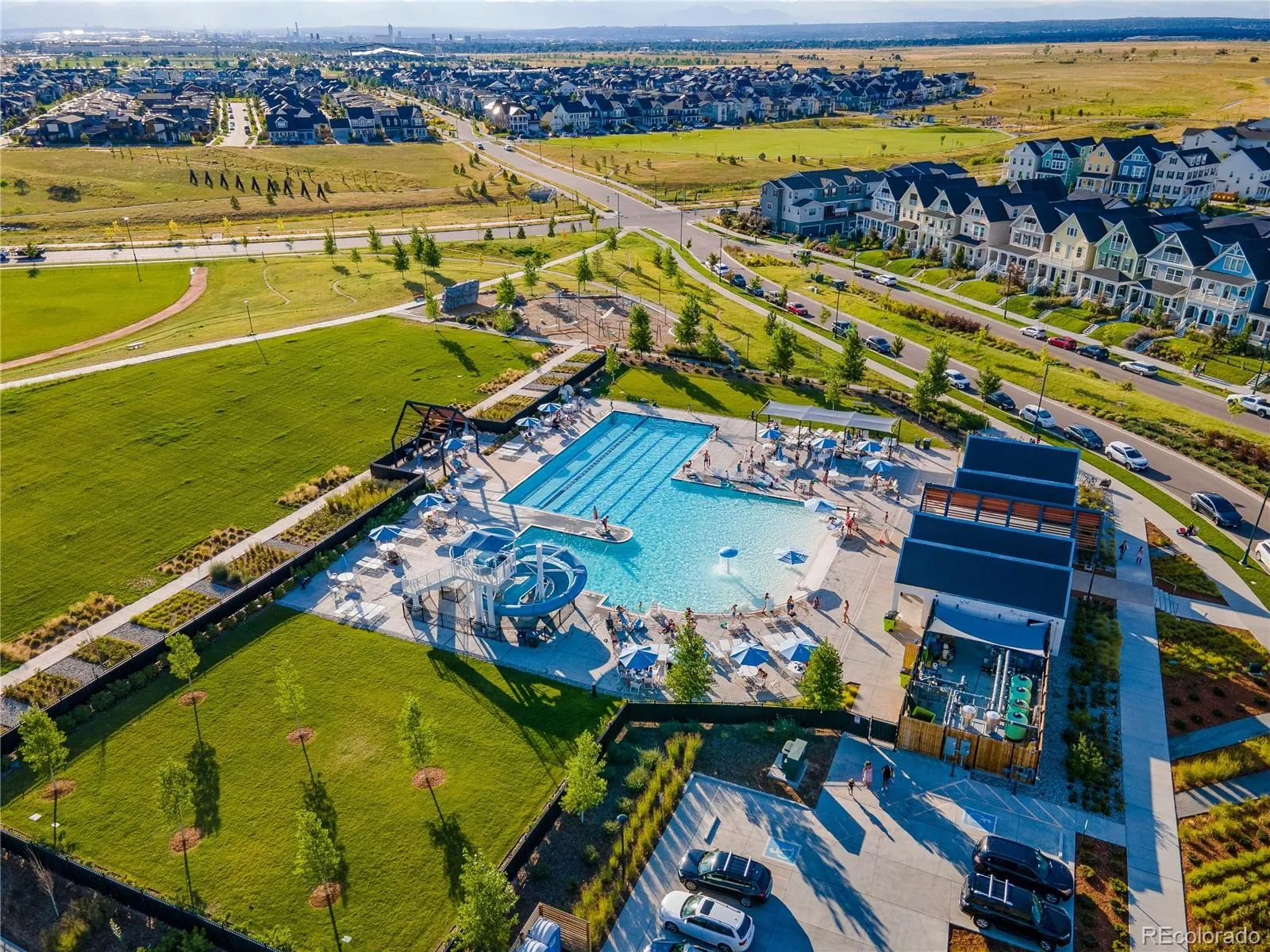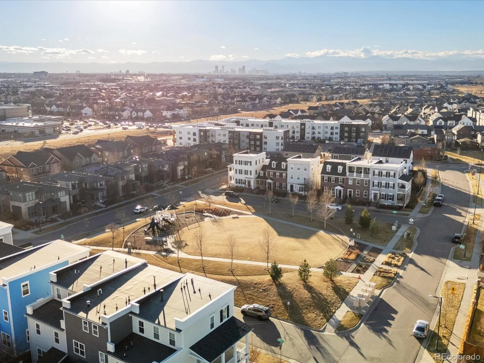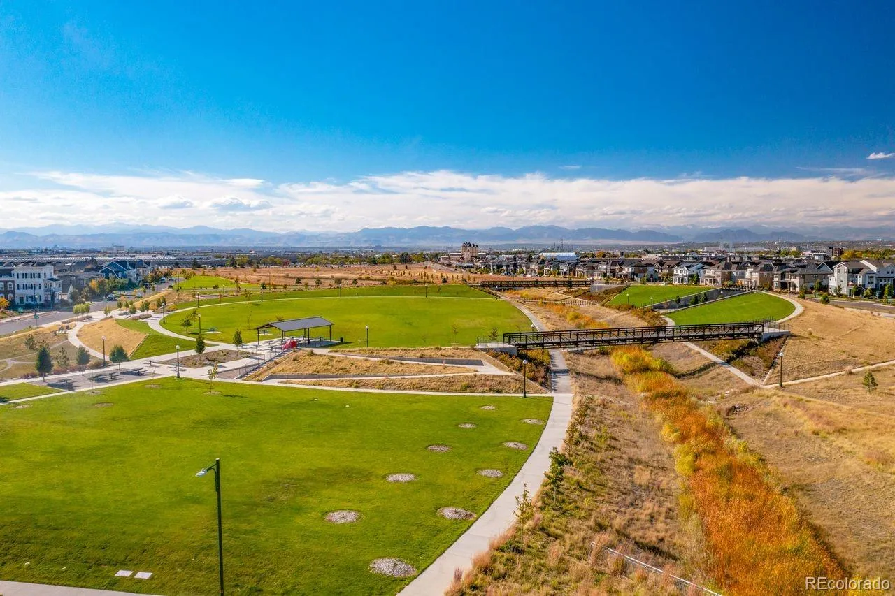 Welcome to this Central Park stunner that checks every box and then adds a few more just to show off. Bathed in sunshine thanks to its coveted southern exposure, this beautifully designed 2-bedroom + spacious loft, 3-bath townhome is thoughtfully upgraded, impeccably maintained, and truly move-in ready. From the moment you enter, you’ll feel how effortlessly this home lives. A convenient mudroom/drop zone welcomes you inside and flows seamlessly into an open-concept layout made for both everyday comfort and entertaining. At the heart of the home is a chef-worthy kitchen that absolutely delivers—featuring a gas range, upgraded stainless steel appliances, elegant crown molding, and a large center island that anchors the space and begs for gatherings. The living room is warm and inviting, centered around a cozy fireplace—perfect for Colorado winters and relaxed evenings at home. Luxury vinyl plank flooring on the main level and loft space keeps life easy, while plush carpeted bedrooms upstairs offer quiet comfort. The upper level unfolds into a spacious loft, ideal for a home office, second living area, or flex space, along with a guest bedroom and full bath, a convenient laundry closet, and an inviting light filled primary suite complete with a large WIC and spa-like bath featuring a soaking tub and separate shower w/ bench seat. Step outside to a smartly designed side-yard with a TREX deck, perfectly suited for Colorado’s four-season lifestyle—low maintenance, high enjoyment, and ready for summer BBQs or crisp fall evenings with friends. The finished garage offers abundant built-in shelving, keeping everything organized. The NEW roof brings peace of mind w/ hail resistant shingles. Location? Simply unbeatable. You’re steps from award-winning schools, neighborhood parks, scenic trails, and 3 of Central Park’s 7 community swimming pools.