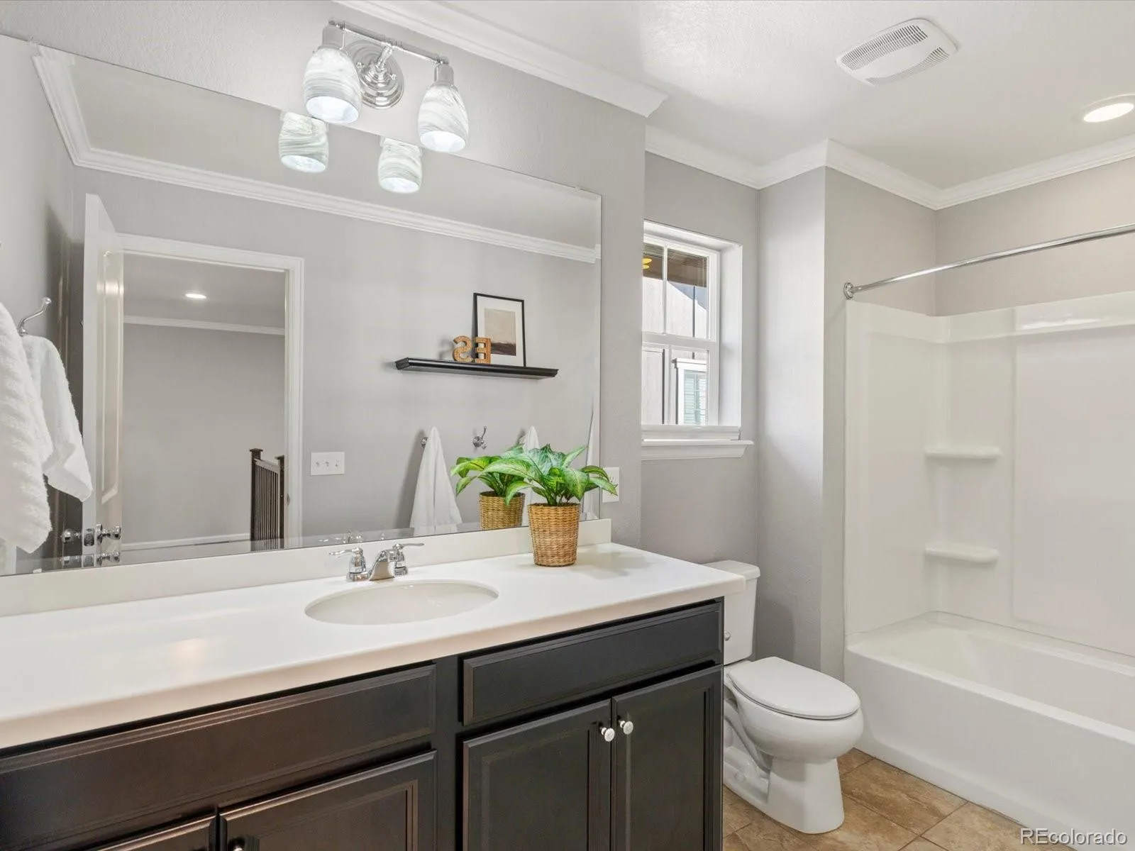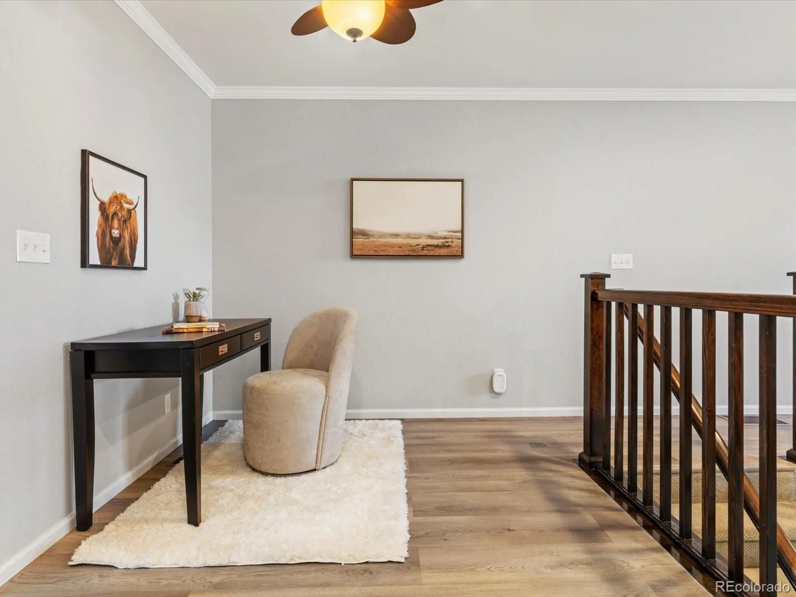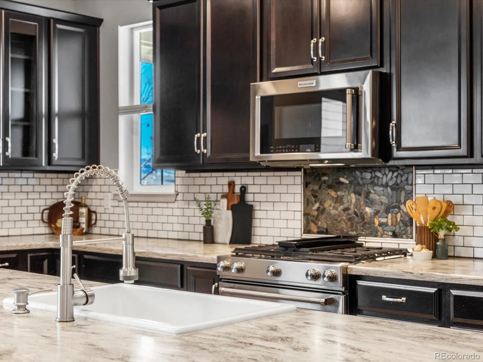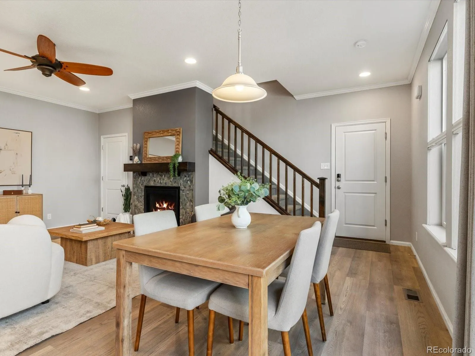 Welcome to this Central Park stunner that checks every box and then adds a few more just to show off. Bathed in sunshine thanks to its coveted southern exposure, this beautifully designed 2-bedroom + spacious loft, 3-bath townhome is thoughtfully upgraded, impeccably maintained, and truly move-in ready. From the moment you enter, you’ll feel how effortlessly this home lives. A convenient mudroom/drop zone welcomes you inside and flows seamlessly into an open-concept layout made for both everyday comfort and entertaining. At the heart of the home is a chef-worthy kitchen that absolutely delivers—featuring a gas range, upgraded stainless steel appliances, elegant crown molding, and a large center island that anchors the space and begs for gatherings. The living room is warm and inviting, centered around a cozy fireplace—perfect for Colorado winters and relaxed evenings at home. Luxury vinyl plank flooring on the main level and loft space keeps life easy, while plush carpeted bedrooms upstairs offer quiet comfort. The upper level unfolds into a spacious loft, ideal for a home office, second living area, or flex space, along with a guest bedroom and full bath, a convenient laundry closet, and an inviting light filled primary suite complete with a large WIC and spa-like bath featuring a soaking tub and separate shower w/ bench seat. Step outside to a smartly designed side-yard with a TREX deck, perfectly suited for Colorado’s four-season lifestyle—low maintenance, high enjoyment, and ready for summer BBQs or crisp fall evenings with friends. The finished garage offers abundant built-in shelving, keeping everything organized. The NEW roof brings peace of mind w/ hail resistant shingles. Location? Simply unbeatable. You’re steps from award-winning schools, neighborhood parks, scenic trails, and 3 of Central Park’s 7 community swimming pools.