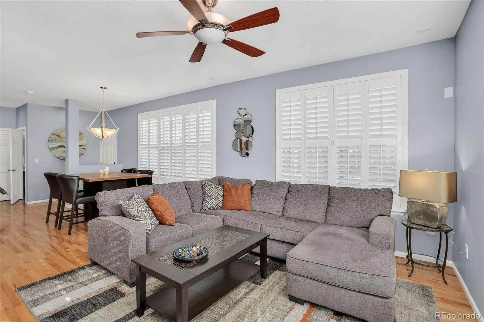 From the moment you step into this sought-after A-model, end unit townhome in the charming and award-winning Village of Five Parks, you’ll feel right at home. Meticulously maintained, this residence showcases true pride of ownership. The property backs to rolling green space that offers privacy and mountain views.
