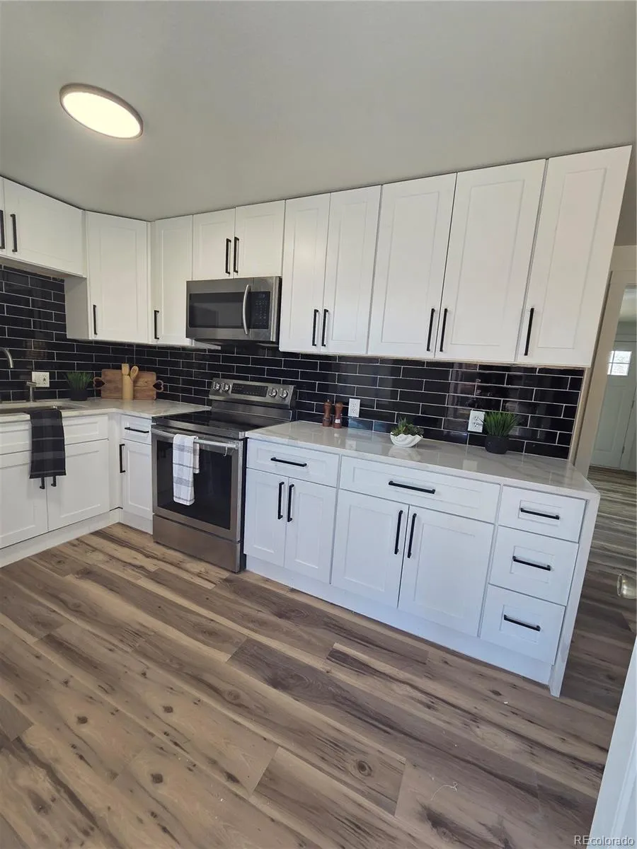 The main level features luxury vinyl plank and new carpet flooring, fresh interior paint, and a fully updated kitchen with new cabinets, quartz countertops, and stainless-steel appliances, creating a clean, modern feel ideal for everyday living and entertaining.