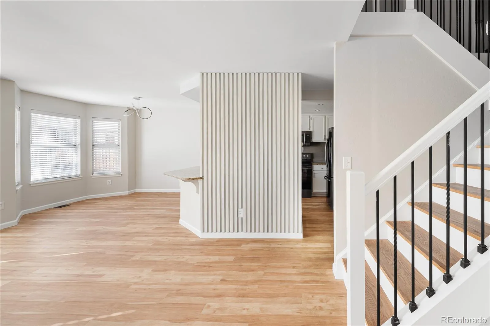 The main level is filled with natural light and showcases an open flow between the living area, dining space, and kitchen. Upstairs, the spacious primary suite provides a private retreat with an en-suite bath featuring a dual vanity, spa tub, dual shower heads, and beautifully tiled finishes accented by oil-rubbed bronze fixtures. Two additional bedrooms and a full bath complete the upper level. Durable wood laminate flooring throughout the home offers both style and easy maintenance.