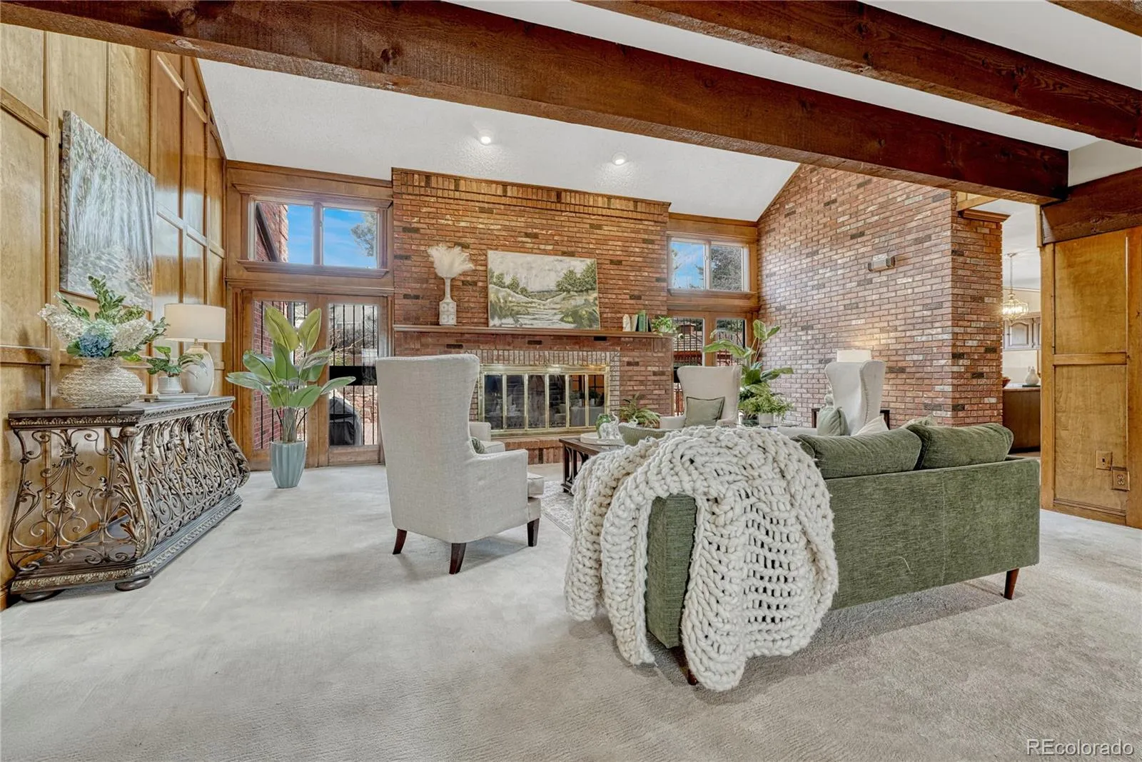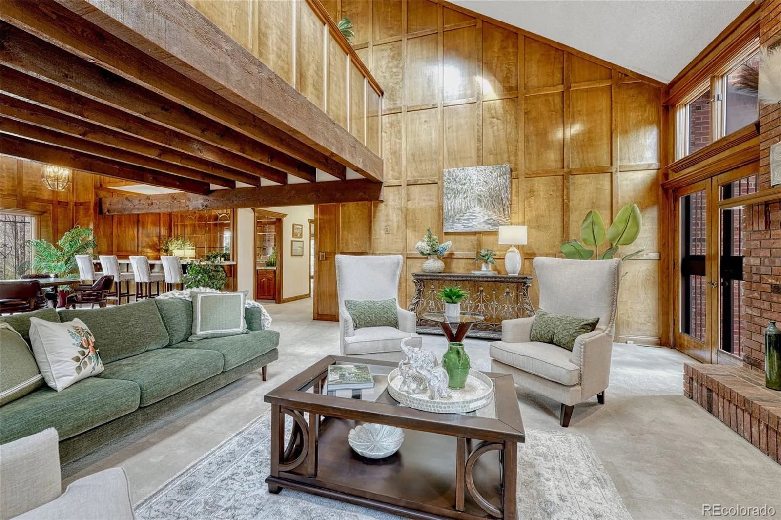 TIMELESS TUDOR tucked at the end of a quiet cul-de-sac on just under an acre in highly desirable Greenwood Village. Enjoy mountain views on nearly 9,500 square feet of classic architecture offering scale and exceptional entertaining potential. Six generously sized bedrooms, all with ensuite baths and a split floor plan providing separation throughout. Primary suite options on both the main and upper levels offer flexibility ideal for multigenerational living. Rich wood beam ceilings, traditional wood detailing, and a striking copper turret highlight the enduring craftsmanship rarely found today. ENTERTAINING SPACES: Designed for gathering indoors and out with multiple living areas, front courtyard, and an oversized back paver patio ready for hosting and events. All surrounded by mature landscaping, gardens and water features. KITCHEN: Custom brick hood over the cooktop, center island, and eat-in area with direct access to the formal dining room. MAIN FLOOR: Spacious family room with wet bar, two half baths, primary and secondary bedroom suites and seamless flow to outdoor spaces. UPSTAIRS: Light filled loft retreat ideal for relaxing or unwinding. Private primary suite with French doors, fireplace, walk-in closets, and ensuite bath with an additional fireplace. Also, a secondary ensuite flexible as a bedroom or office with adjacent conference style space or closet, steam shower, and sauna. FINISHED BASEMENT: Two additional bedroom ensuites, large family room with wet bar, wine cellar, and a bonus room ideal for fitness, media, or hobby use. HOME EXTRAS: Recent $200k exterior improvements including a 50-year stone coated steel roof, new gutters, stucco replacement, and exterior paint. New dishwasher. 3 car garage with 220 outlet. Dual zoned HVAC. Seven fireplaces. Extensive storage. No HOA. West facing front yard allows for easy snowmelt. Architectural presence and scale invite thoughtful updates for a discerning buyer who values space, privacy, and timeless design.