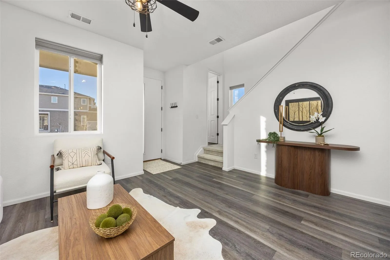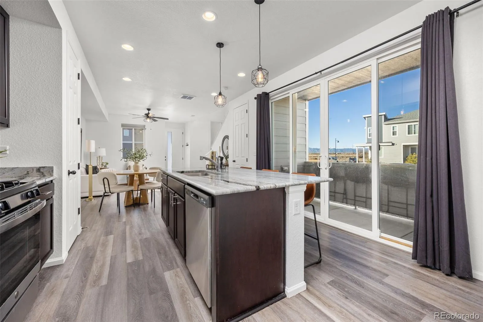 Welcome to this beautiful, corner lot duplex situated across from the community’s park and playground with their mountain views! Open the front door to find a spacious living room with high ceilings and an open floor plan that connects the living to the dining and kitchen spaces. A large island with barstool seating, custom granite counter tops, newer appliances, as well as a large pantry and direct access to the patio make every inch of this kitchen useful space, no matter your favorite form of entertaining (or keeping it low-key!). A half-bath just off the main space makes for easy hosting, and the other two bathrooms are situated conveniently upstairs with the three, natural light-filled bedrooms. With thoughtful updates in the bathrooms, laundry upstairs by all the bedrooms, and a large primary suite, this home is move-in ready for its next owners. Come see it for yourself today!