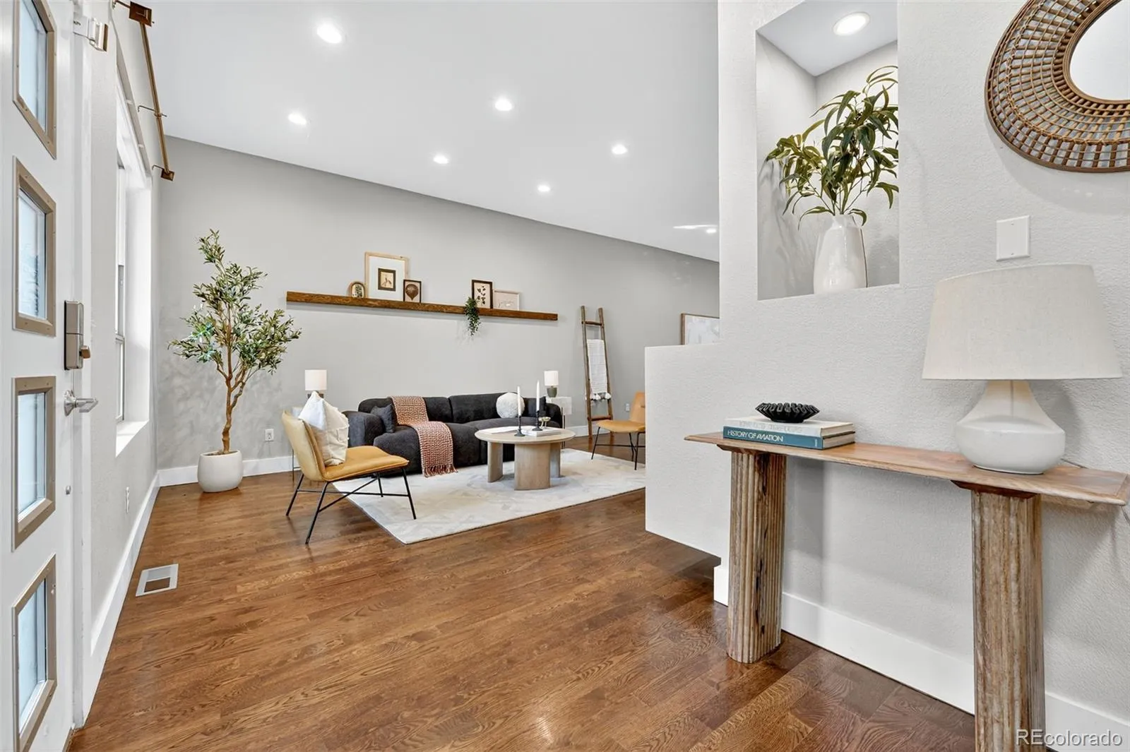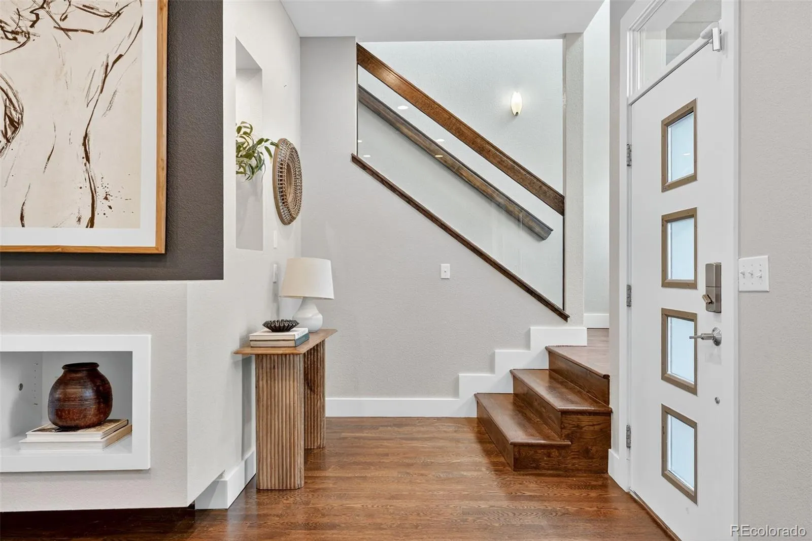 The seller’s preferred lender is offering a one-year interest rate buy-down when used for financing, an added bonus to an already exceptional home. Experience the ideal mix of style, space, and comfort in this thoughtfully designed Denver townhouse. Inside, hardwood floors, soaring ceilings, and warm recessed lighting welcome you into the open-concept main level, where custom built-in shelving creates the perfect place to display your favorite pieces. The expansive kitchen is designed for both everyday living and entertaining, featuring granite countertops, a pantry, stainless steel appliances, including a gas range, and a convenient breakfast bar. An inviting eat-in dining area sits just off the kitchen, where sliding glass doors let in fresh air or lead you outside to enjoy meals in the private backyard. Upstairs, a light-filled staircase guides you to the primary suite, your own private escape, complete with a soaking tub, separate shower, dual granite vanities, and a spacious walk-in closet. Sip your morning coffee on the private balcony or host friends on the 4th of July and enjoy unobstructed views of the fireworks over Dick’s Sporting Goods Park. The fully finished basement adds even more flexibility, offering a wet bar and expansive built-ins, perfect for a family room, home office, or gym. Designed for low-maintenance living, this home places you right in the center of it all, with parks, restaurants, and miles of trails just steps away. You’re minutes from Stanley Marketplace, FlyteCo Tower, and directly across from Central Park, 80 acres of open space featuring trails, playgrounds, picnic areas, multi-sport fields, and breathtaking Rocky Mountain views. This isn’t just a place to live, it’s an elevated Denver lifestyle.