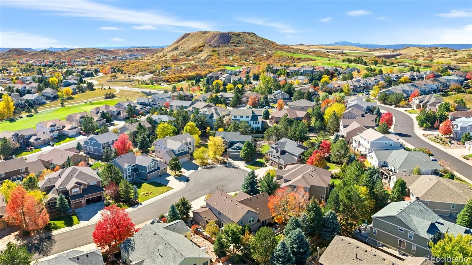 Wake each morning to sweeping mountain, butte, and valley views as the sun rises over Red Hawk and sets the sky ablaze each evening—this is modern living reimagined, right in the heart of Castle Rock. Tucked quietly at the end of a private cul-de-sac and surrounded by the locally acclaimed Red Hawk Golf Course, this home is a true retreat: close to shopping and dining, yet blissfully removed from the bustle of everyday life.