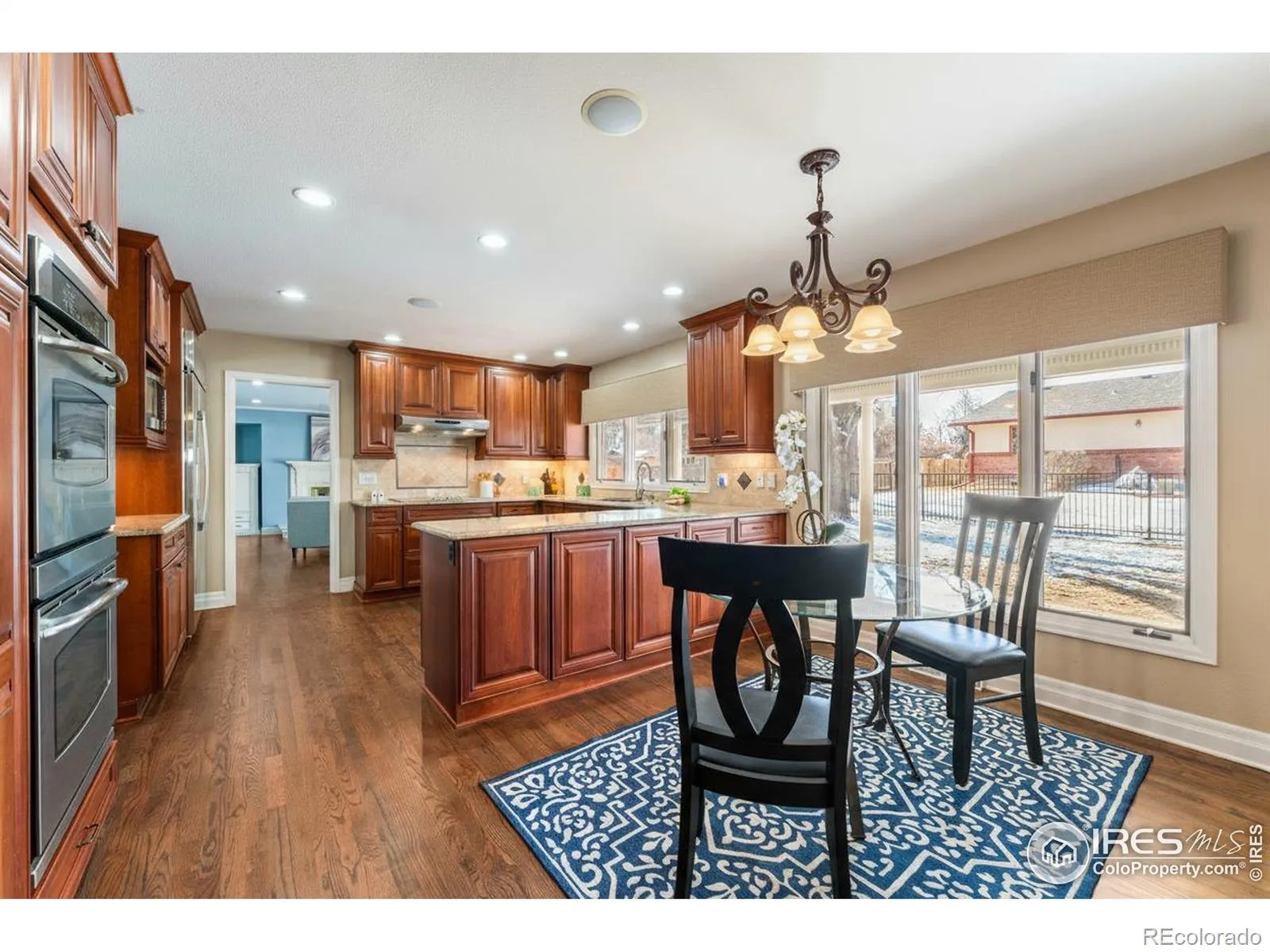 Welcome to this beautifully maintained, sprawling ranch in the highly desirable Fox Hill community of Longmont. Thoughtfully updated and designed for comfort, flexibility, and long-term living. From the moment you arrive, the curb appeal stands out with updated landscaping, new flatwork, and a welcoming exterior. Inside, the entry opens to a sitting room or den and a formal dining room filled with natural light and warm hardwood floors, creating an inviting first impression.The living room features rich hardwood flooring, a large fireplace, and French doors that lead directly to the covered patio, connecting indoor and outdoor living. The kitchen is both functional and beautiful with SS appliances, granite countertops, a tile accent backsplash, and hardwood floors. A large window over the sink fills the space with natural light, while the breakfast bar opens to a sunny breakfast nook overlooking the manicured lawn. A mudroom with its own exterior and garage access adds everyday convenience. The heated garage is an added bonus for Colorado seasons. The primary suite offers a peaceful retreat with large windows, ample natural light, and an ensuite bathroom featuring slate tile, a double vanity, plentiful storage, and a walk-in shower. Additional main-level bedrooms are well-sized and thoughtfully laid out.The finished basement expands the home’s flexibility with space ideal for multi-generational living, a recreation room, a home office, or creative use. An additional non-conforming bedroom and bathroom complete the lower level, offering privacy and versatility. Recent updates include a new roof, new windows, new refrigerator, fresh paint in select areas, updated flatwork, and refreshed landscaping. Every improvement reflects pride of ownership and careful maintenance. Centrally located within Longmont’s sought-after Fox Hill neighborhood, this home offers a balance of quiet residential living with easy access to daily conveniences, parks, and commuting routes.