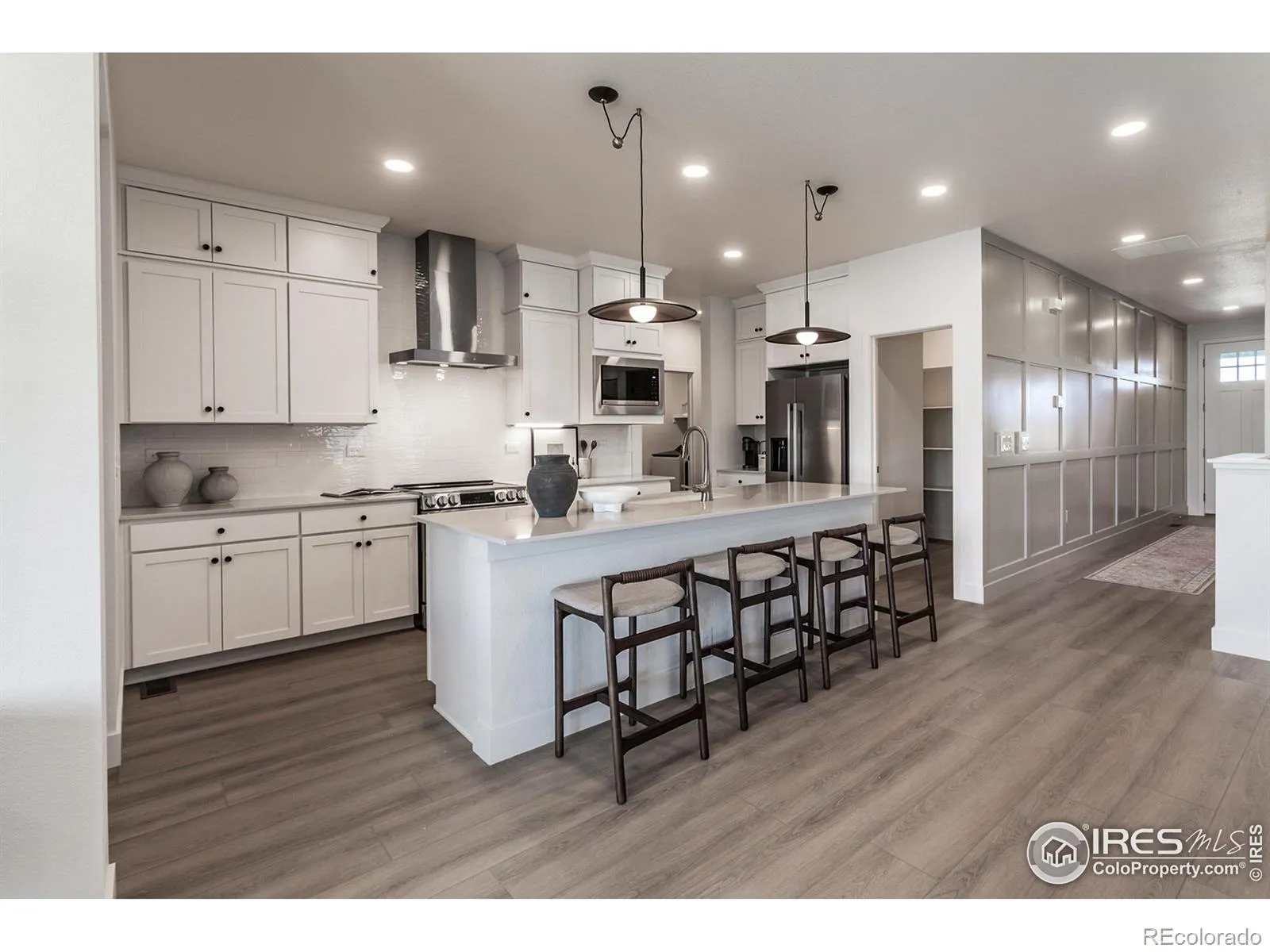 Model home for sale as a lease-back to the builder while needed. Ask about lease terms. The Christie is a thoughtfully designed ranch-style home. It combines open-concept living with everyday convenience w/ a finished basement included. Step inside through the welcoming foyer and into a bright, spacious layout. At the heart of the home, the kitchen, dining, and living areas flow seamlessly together. Kitchen has s.s. induction electric range, hood, microwave, fridge, and white painted maple cabinetry & quartz countertops. Vinyl plank flooring in kitchen, dining, baths, laundry, master bedroom/closet and living room. Main level laundry w/ washer & dryer included. A sliding door leads to the covered patio. The private primary suite w/ vaulted ceiling that sits at the back of the home and features a large walk-in closet. At the front of the home, a secondary bedroom with an adjacent bath. Laundry room just off the 2-car garage, along with extra pantry and storage space throughout. Finished basement with wet bar (mini fridge included), two additional bedrooms, a bath, and a spacious recreation room. Central a/c. Passive radon system. $125 monthly metro district o & m fee. $415 annual non potable fee to be paid to metro district. Future community plans for a pool, parks and trails. (Furniture not included)