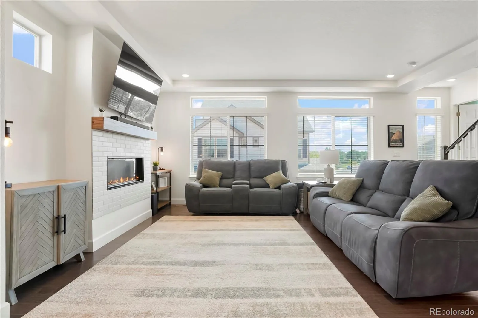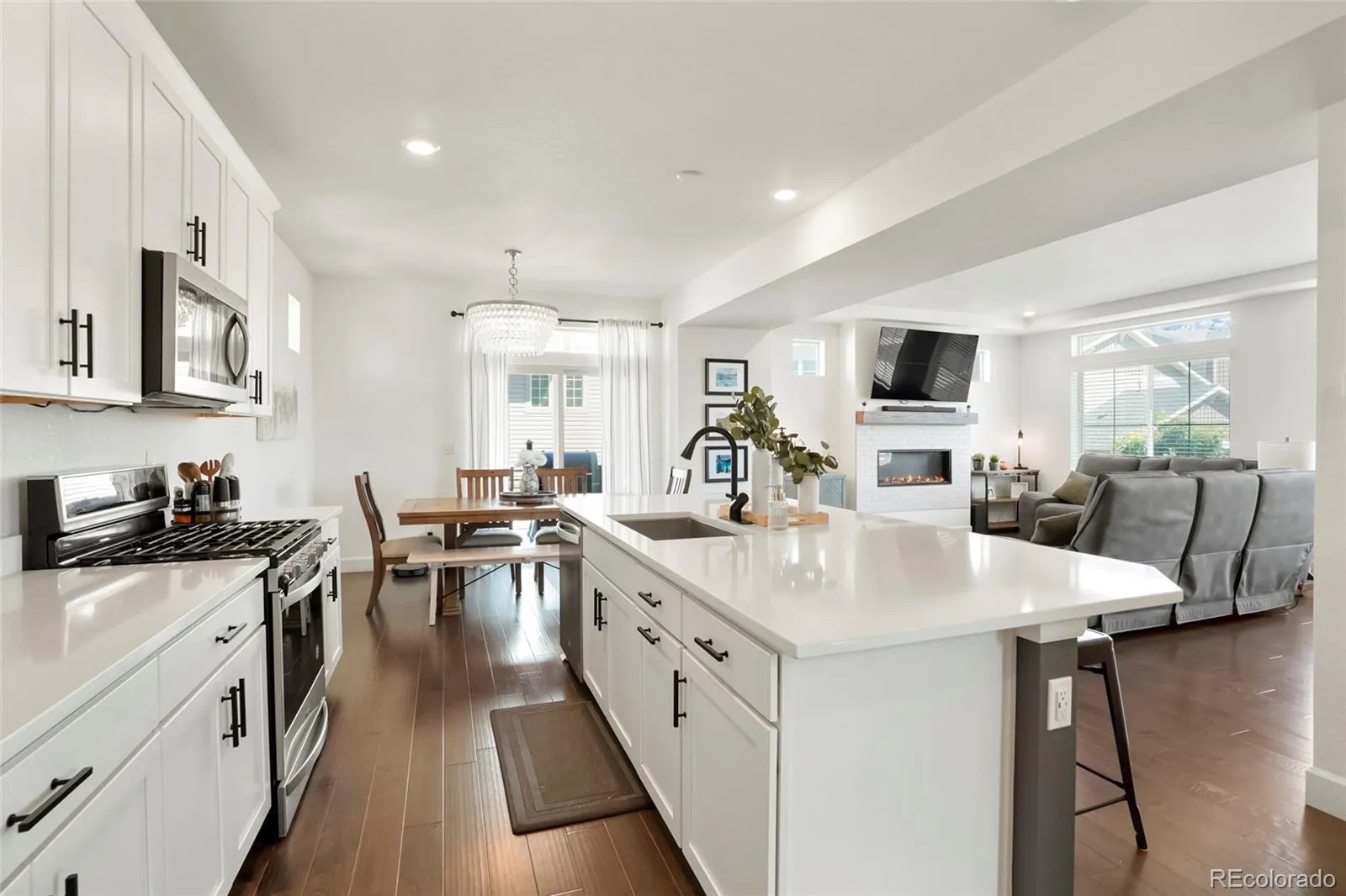 This is the one you have been searching for! Located in the beautiful Reunion neighborhood, this three bedroom/three bathroom home has everything you need. Enter from the porch on the lower level to bonus living space with direct access to the attached three car tandem garage. The main level features an open floor plan with a large kitchen island, balcony off of the eat-in kitchen, and a cozy gas fireplace. With 9-foot ceilings throughout, large windows and a corner lot, there is plenty of natural light. Upstairs you will find the primary suite with a spa shower, double vanities and a large walk-in closet. There are two additional bedrooms, a full bathroom and the laundry room upstairs as well! Soak up all of the amenities this neighborhood has to offer, including parks, trails, a full recreation center with an outdoor pool perfect for those hot summer days, and a coffee house just around the corner.