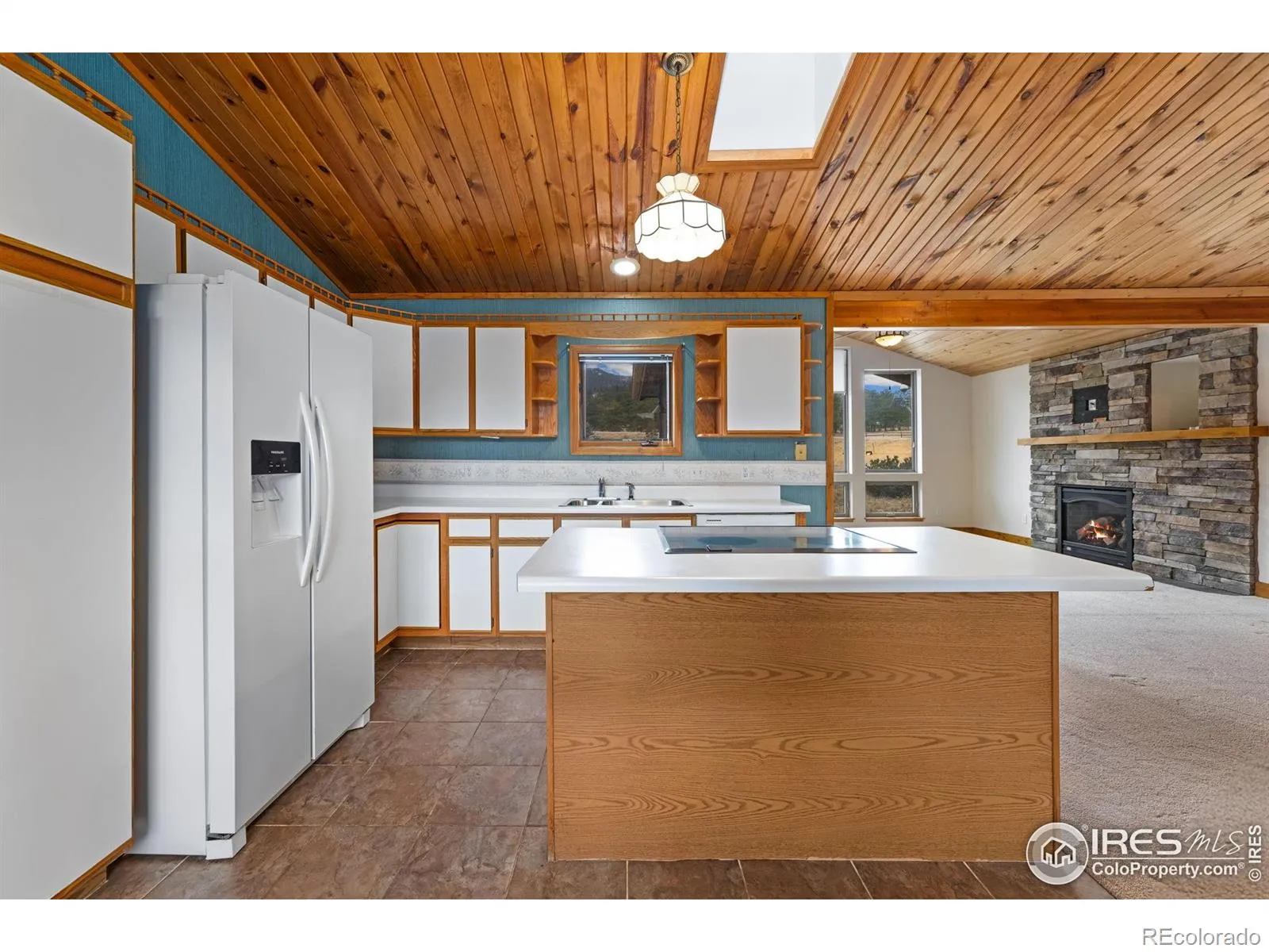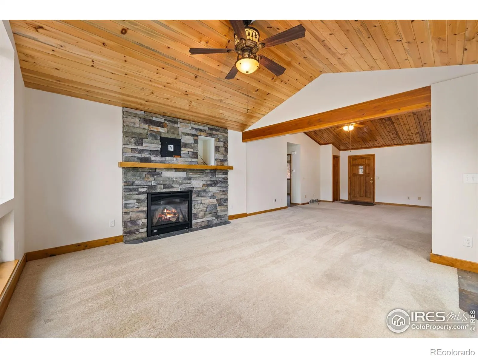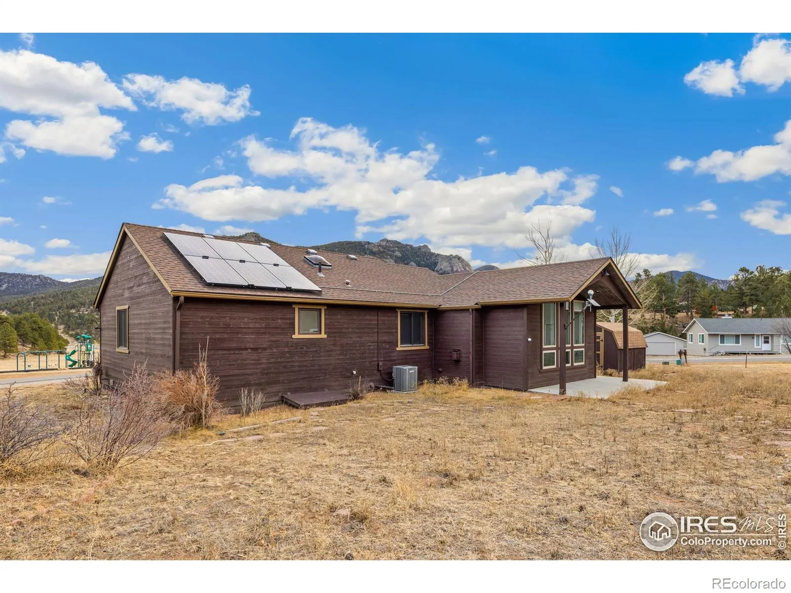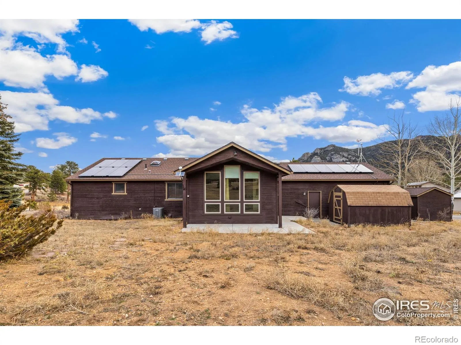 Wake up to mountain air, wide open views, and the feeling that life slows down just enough to enjoy it. Located directly across from a neighborhood playground and walking trails that connect to Scott Pond and extend all the way into town, this setting blends outdoor access with everyday convenience. Morning walks, sunset strolls, and easy trips into town become part of daily life here. Inside, vaulted wood-plank ceilings, large windows, and a cozy stone gas fireplace create a welcoming mountain atmosphere. The kitchen offers generous counter space with an island that comfortably connects the kitchen and dining areas, making daily living and entertaining feel effortless. Step outside onto the front deck and take in the quiet surroundings. A circular driveway and two-car garage add ease and functionality, while three storage sheds provide uncommon versatility. One shed is fully finished and has been used as an office, but it could just as easily serve as a workout room, art studio, or maker space-ideal for remote work or creative pursuits without sacrificing interior living space. Solar panels are included, offering energy efficiency and long-term utility savings. Built in 1993, the home reflects solid construction with enduring mountain character. Across the street, the open space and trail system feel like a natural extension of the property, with peaceful paths winding around Scott Pond and beyond. For buyers seeking a home that offers space, outdoor connection, and everyday livability while remaining close to town, this Carriage Hills property delivers a thoughtful balance that is increasingly rare in Estes Park.