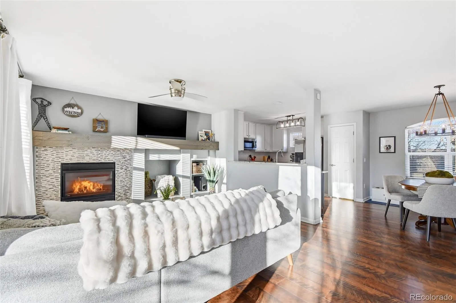 The main level welcomes you with an open-concept great room that’s perfect for entertaining or relaxing. The spacious kitchen features sleek granite countertops, ample storage, and a brand-new dishwasher, while the living area is anchored by a cozy fireplace that invites you to unwind. Step outside, and you’ll find the largest fenced yard in the community—your private outdoor oasis, ideal for gatherings, gardening, or simply soaking up the sunshine.