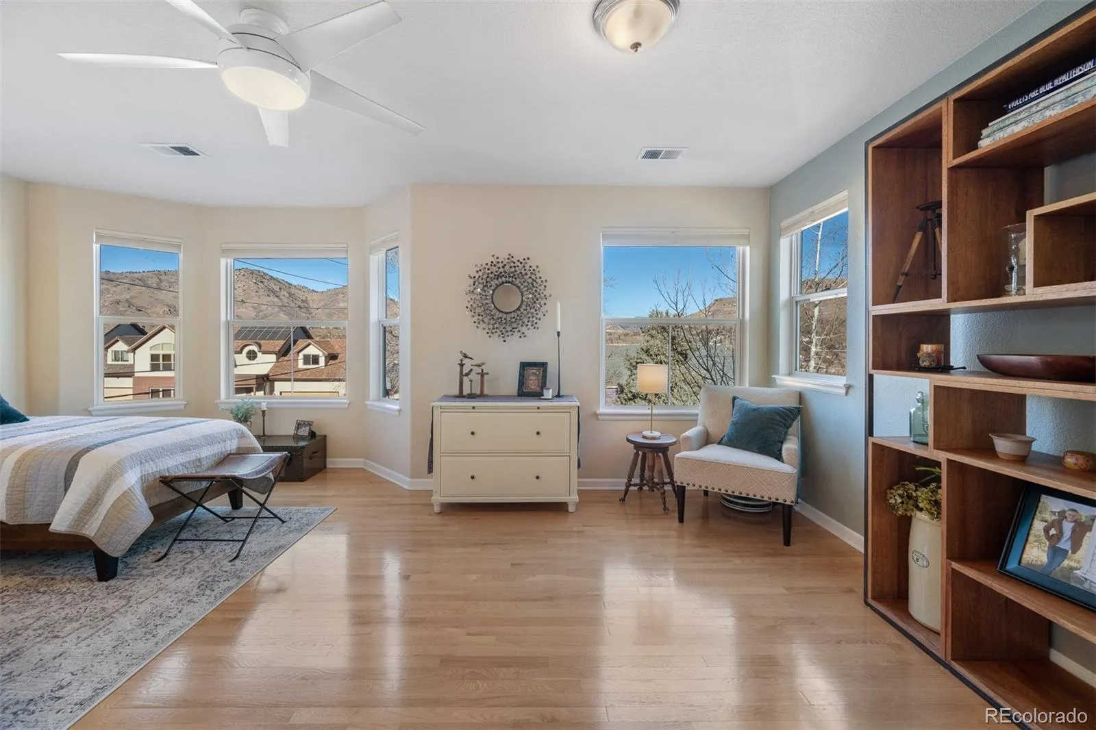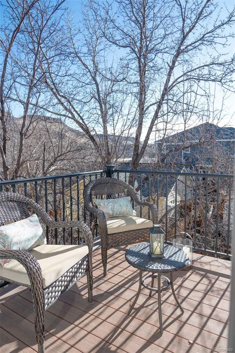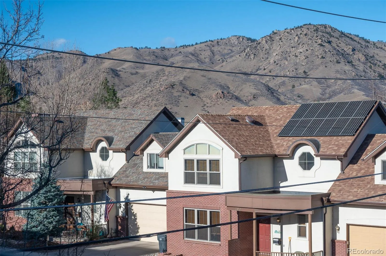 Tucked into a quiet cul-de-sac in the heart of Golden, this meticulously maintained 3 bed, 4 bath half-duplex offers an exceptional blend of architectural intention, mountain views, and effortless livability. North-facing views of Table Mountain greet you upon arrival, setting the tone for a home designed to elevate daily living. The main level unfolds with a formal living space and an open-concept kitchen, dining, and family room anchored by a gas fireplace. A powder bath and pantry complete the main level. Upstairs, a generous loft provides flexible living or work space, accompanied by a spacious secondary bedroom, full bath, and a serene primary suite.. The primary retreat features a five-piece bath, a walk-in closet, and an expanded Trex deck ideal for morning coffee or dynamic evening views of South Table Mountain. The lower level offers remarkable versatility with a private exterior entrance, kitchenette, laundry, full bath, Murphy bed, workshop area, and work-out space—creating a setting that lives like a private suite while maintaining seamless connection to the home. Outdoor spaces are thoughtfully landscaped with a deck, fire pit that is attached to the gas line, and grill area, also attached to the gas line. Additional highlights include a private two-car garage with 220-amp service, irrigation, landscaped with perennials abound, green lawn that is artificial turf, and 2 City of Golden parking passes convey with the property. A rare opportunity for refined, lock-and-leave living in the heart of Golden. Small HOA covers trash and driveway snow removal. Strong proximity to downtown Golden, trails, and Colorado School of Mines. Buyer to verify square footage, occupancy use, zoning, and HOA rules. Easy to show.
