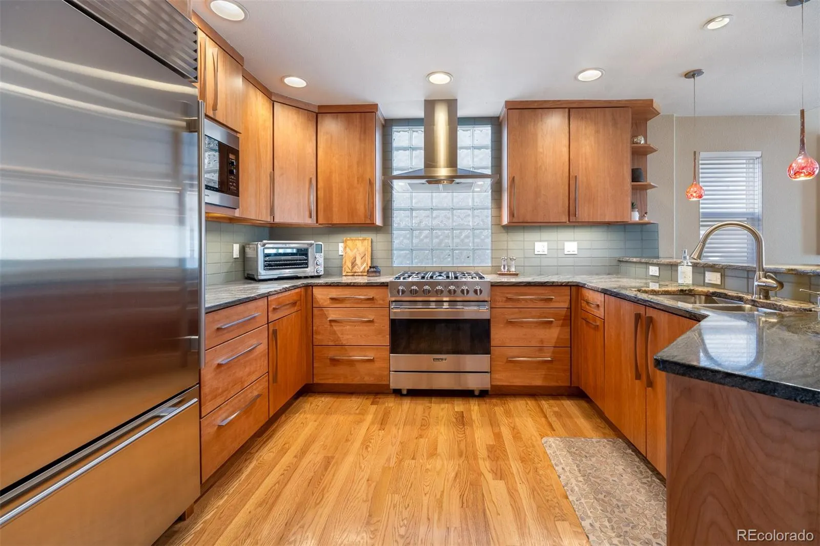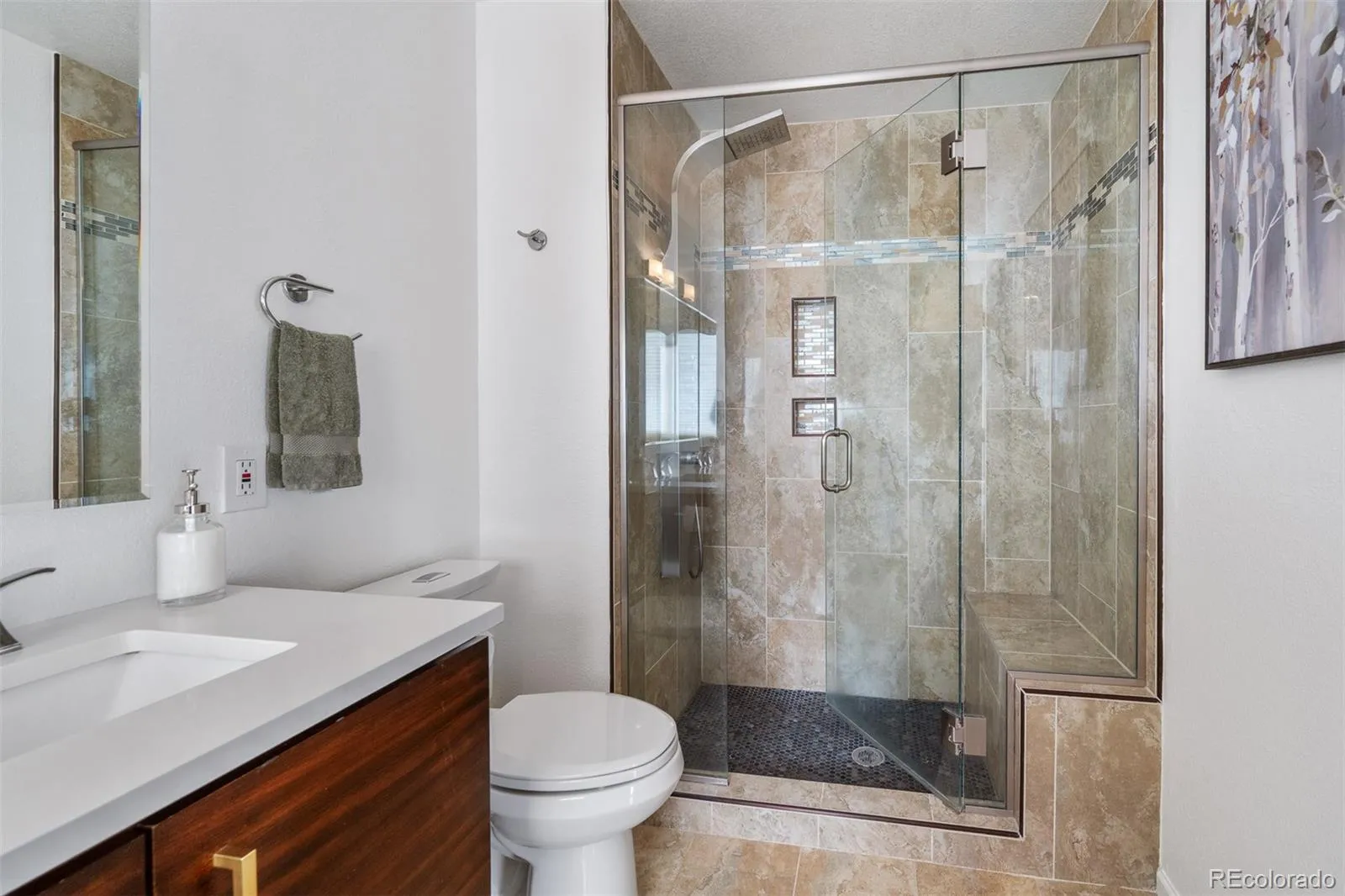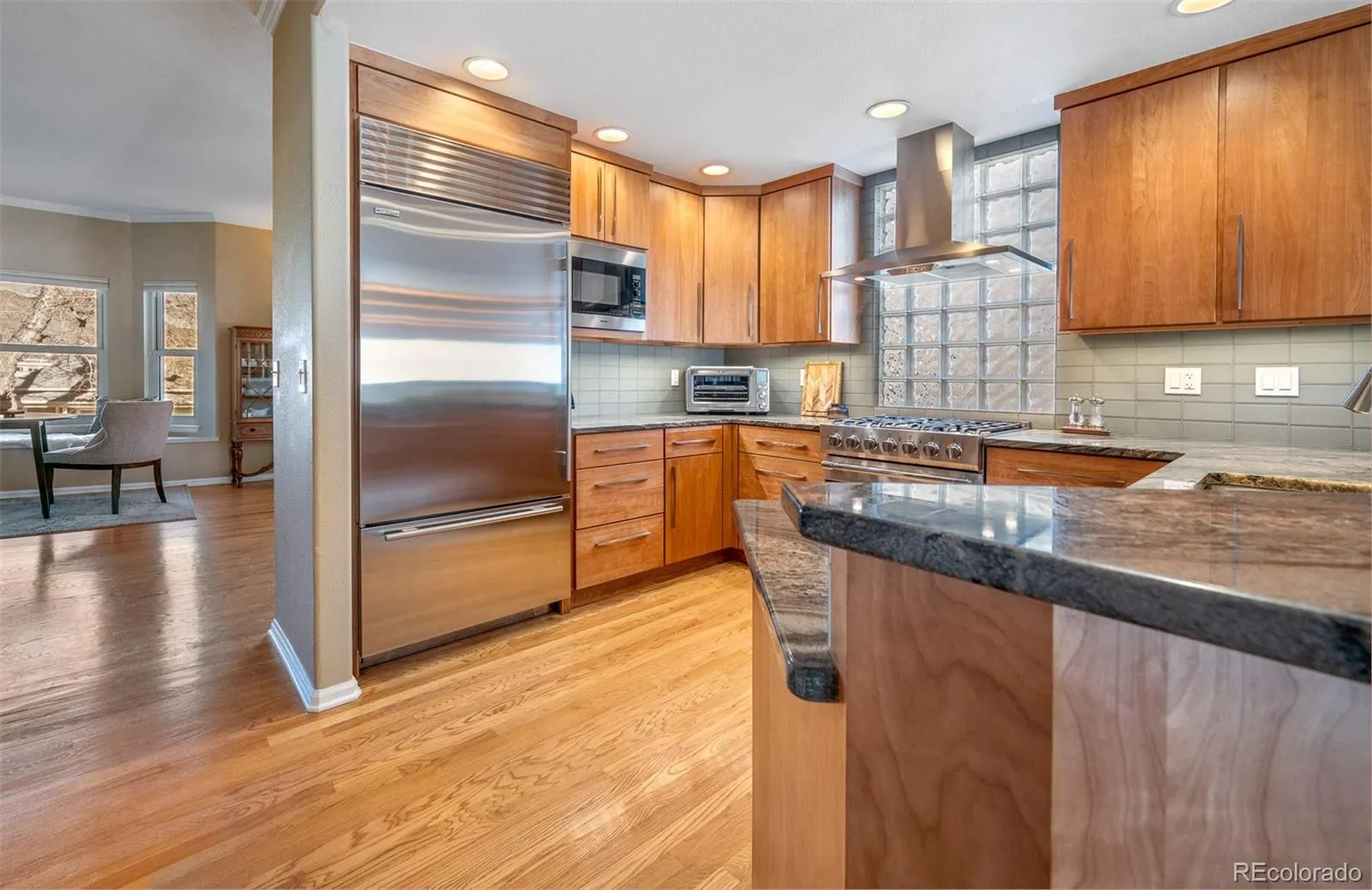 Tucked into a quiet cul-de-sac in the heart of Golden, this meticulously maintained 3 bed, 4 bath half-duplex offers an exceptional blend of architectural intention, mountain views, and effortless livability. North-facing views of Table Mountain greet you upon arrival, setting the tone for a home designed to elevate daily living. The main level unfolds with a formal living space and an open-concept kitchen, dining, and family room anchored by a gas fireplace. A powder bath and pantry complete the main level. Upstairs, a generous loft provides flexible living or work space, accompanied by a spacious secondary bedroom, full bath, and a serene primary suite.. The primary retreat features a five-piece bath, a walk-in closet, and an expanded Trex deck ideal for morning coffee or dynamic evening views of South Table Mountain. The lower level offers remarkable versatility with a private exterior entrance, kitchenette, laundry, full bath, Murphy bed, workshop area, and work-out space—creating a setting that lives like a private suite while maintaining seamless connection to the home. Outdoor spaces are thoughtfully landscaped with a deck, fire pit that is attached to the gas line, and grill area, also attached to the gas line. Additional highlights include a private two-car garage with 220-amp service, irrigation, landscaped with perennials abound, green lawn that is artificial turf, and 2 City of Golden parking passes convey with the property. A rare opportunity for refined, lock-and-leave living in the heart of Golden. Small HOA covers trash and driveway snow removal. Strong proximity to downtown Golden, trails, and Colorado School of Mines. Buyer to verify square footage, occupancy use, zoning, and HOA rules. Easy to show.