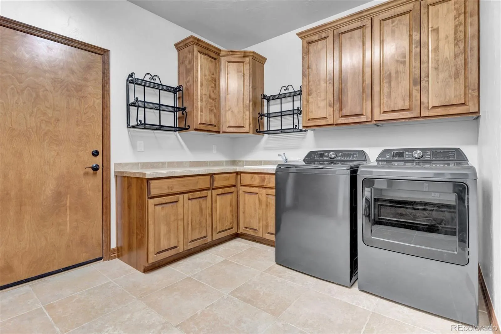 The main-level primary suite offers a private retreat with coffered ceilings, a luxurious five-piece bath, jetted tub, oversized walk-in closet, and large windows overlooking the fully landscaped backyard. Two additional generously sized bedrooms on the main level feature large closets and share a Jack-and-Jill three-quarter bath. A convenient powder room, large mudroom with built-in benches, and dedicated laundry/utility