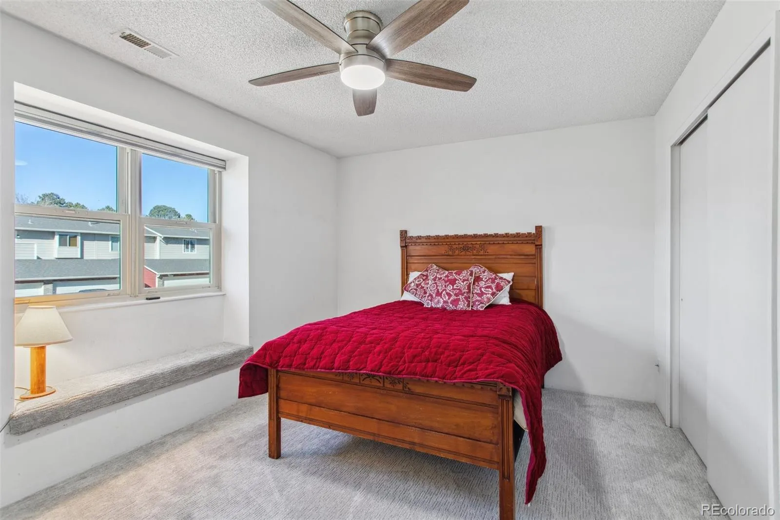 ***See the Amazing Video at the Virtual Tour Link on the listing*** Beautiful end-unit townhome in the heart of the Rockrimmon neighborhood! Nestled in a peaceful, park-like setting with mature trees and mountain views, this home offers both comfort and convenience in the award-winning Academy D20 School District. Step inside to soaring two-story ceilings in the entryway, filling the home with natural light from the huge windows. The upper level layout maximizes both space and functionality with ample storage throughout. Vaulted ceilings, fresh new carpet, and bottom-up/top-down blinds for privacy and ambiance. Well-equipped kitchen includes all major appliances and opens to a private balcony, ideal for enjoying your morning coffee in the quiet community. The dining room has a bay window allowing views of Pikes Peak! The primary suite includes a skylight in the bathroom, flooding the space with natural light. Both bedroom suites feature charming window seats and generous closet space. Enjoy in unit laundry with Washer & Dryer included. This unit includes a 2 car garage, offering secure storage for your vehicle and additional belongings. The attached garage offers even more convenience with an extra freezer and refrigerator, plus direct access to the iron-fenced patio, which extends to both the front entrance and garage. Residents enjoy fantastic community amenities, including a clubhouse, indoor pool, exercise room, sports courts, and walking paths. With a serene forest-like setting and easy access to parks, shopping, and dining, this home is a rare find! Don’t miss out—schedule your showing today!