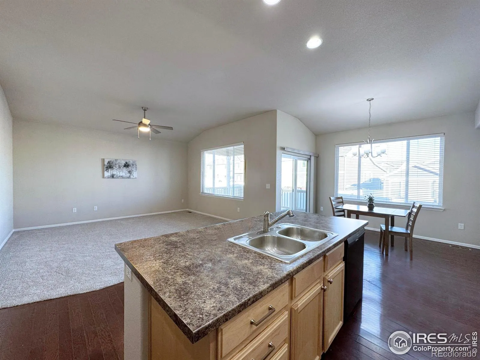 Welcome home to this nearly new ranch-style home in Severance Reserve, offering 3 bedrooms, 2 bathrooms, and 1,540 finished square feet on the main level. The open floor plan features 10-foot ceilings and a split-bedroom layout designed for comfortable everyday living. The kitchen includes maple cabinetry in a Terra Bronze finish, a large breakfast bar, walk-in pantry, and engineered hardwood flooring throughout the entry, kitchen, and dining areas, complemented by new carpet in the living room and bedrooms. The primary suite is privately located and features a walk-in closet, double vanity, and walk-in shower. The unfinished basement adds an additional 1,540 square feet and already includes a finished bathroom, reducing future build-out costs and creating the opportunity to add two additional bedrooms plus a rec room, home gym, or flex space. Exterior features include a covered patio, fully fenced backyard, and a .13-acre lot. No HOA and located in a metro district, this home offers small-town charm with room to breathe and an easy commute to Fort Collins, Windsor, and Greeley.