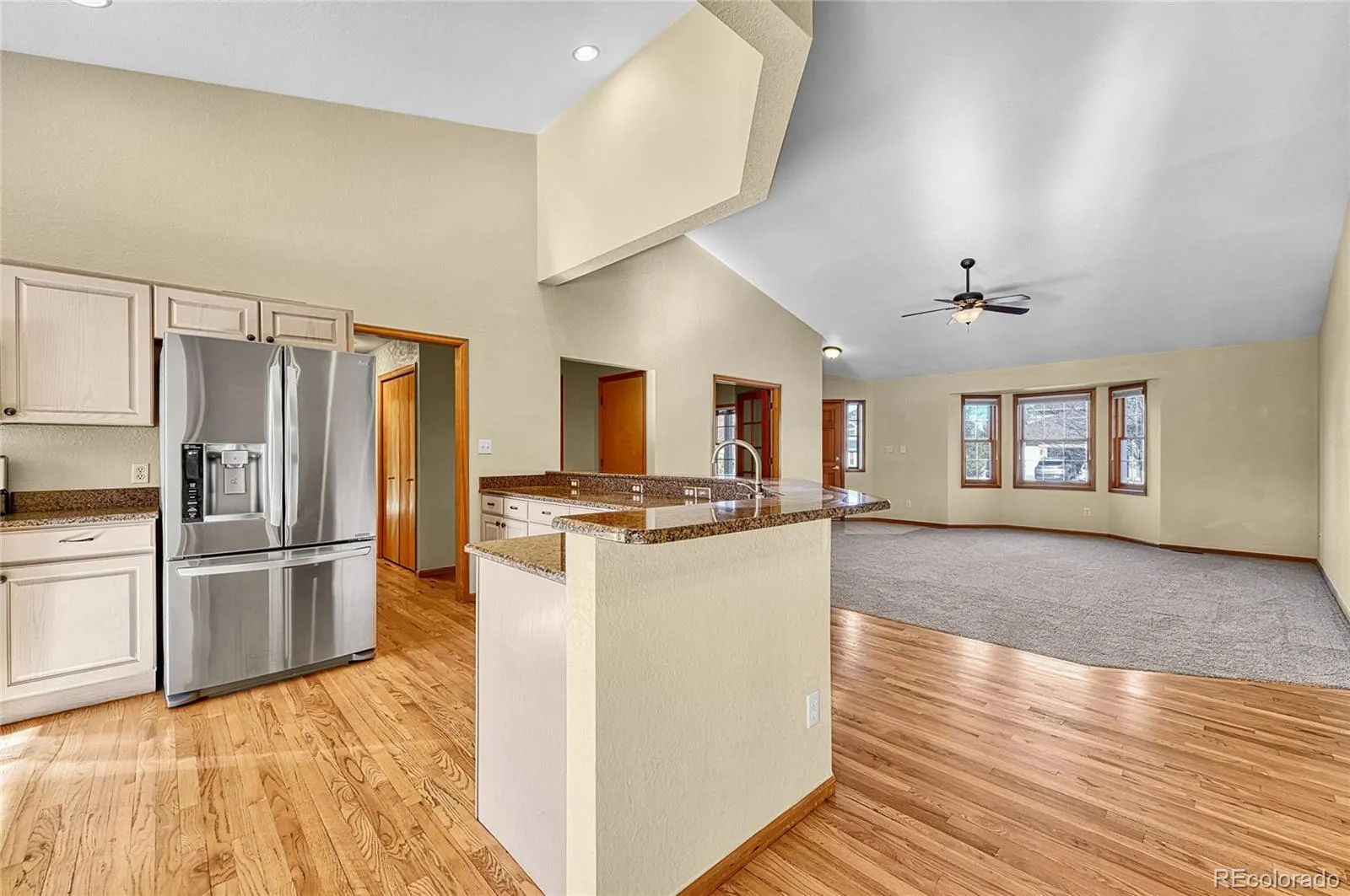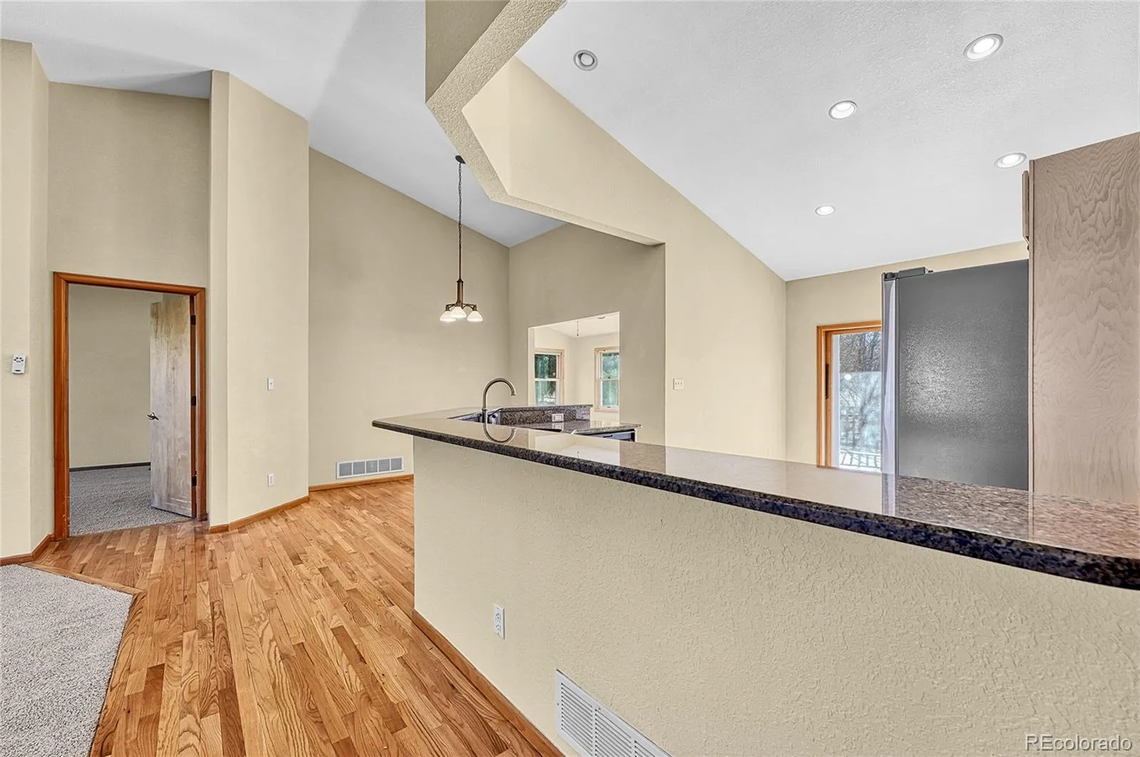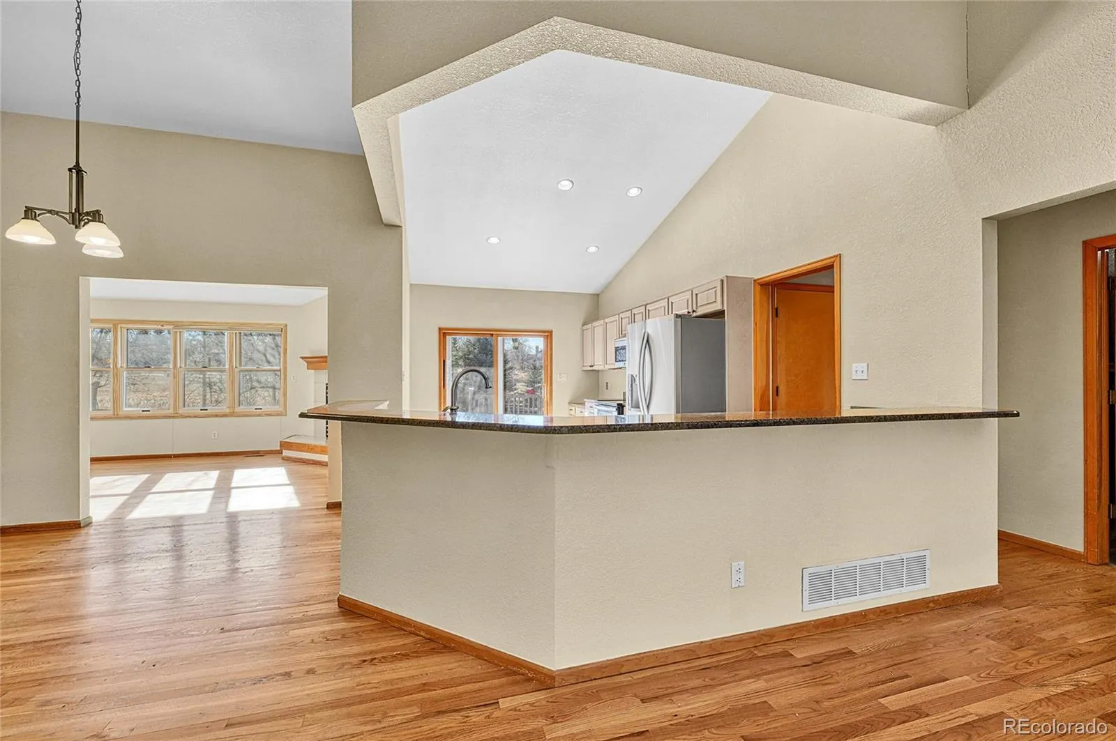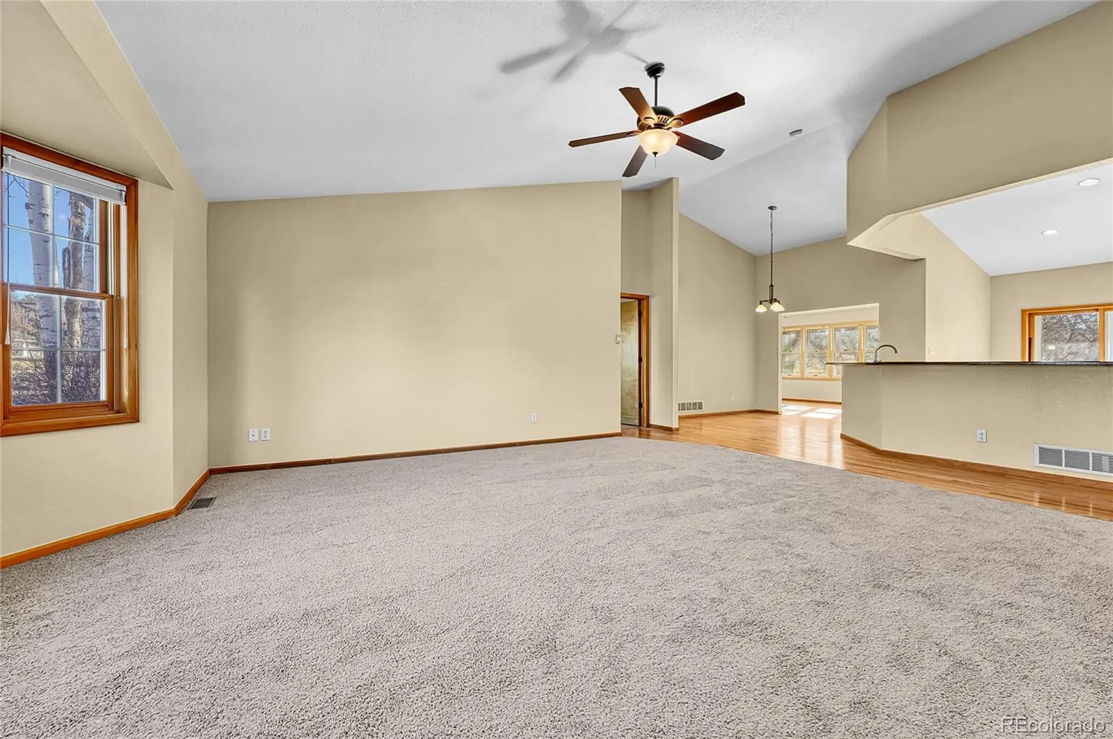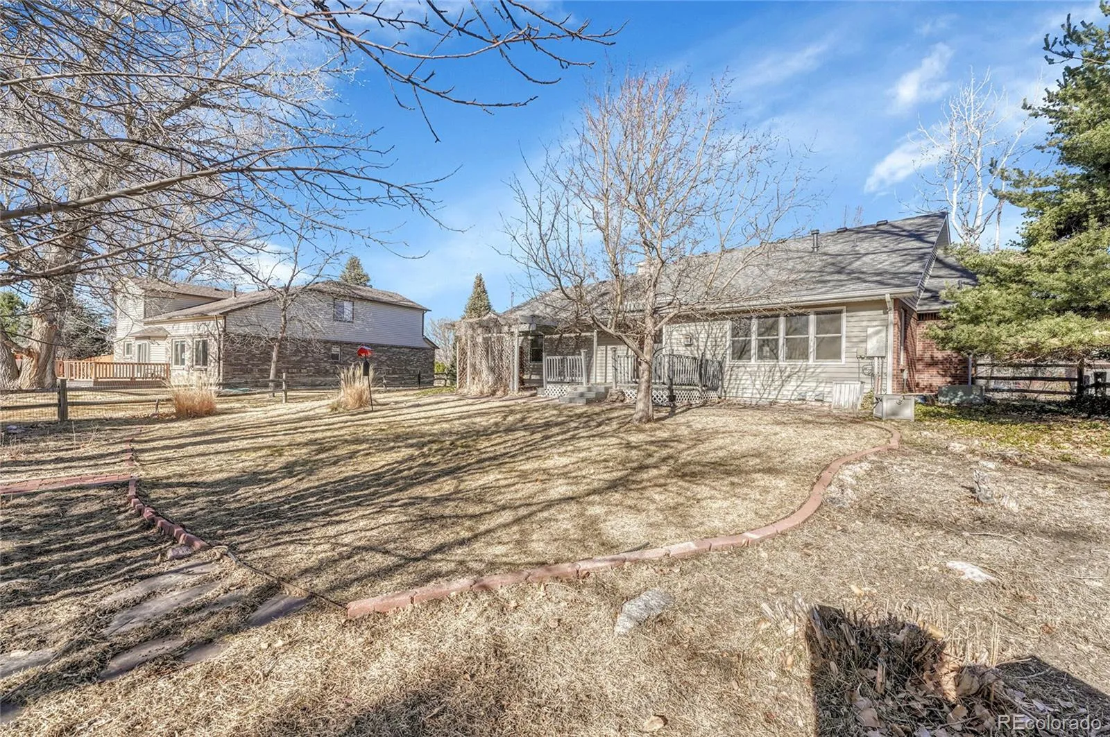 Contemporary large ranch style home located in the desirable Rowley Downs neighborhood, just minutes from downtown Parker and easy walking distance to shops, dining and community events. Nearby walking and biking trails right outside your door. Well-maintained home offers 3+1 bedrooms, 3 baths, 3 car attached garage and over 2100 sq.ft. on the main level. The open floor plan features vaulted ceilings and lots of natural light. Gas fireplace in the family room. New carpeting throughout the main floor accents the hardwood floors. Several windows on the main floor have been upgraded. The mostly finished basement adds approx., 1,300 more livable space with a bedroom, 3/4 bath and a large living area with a kitchen style sink for a potential mother-in-law apartment. Beautiful backyard with mature trees for shade and backing to an open easement