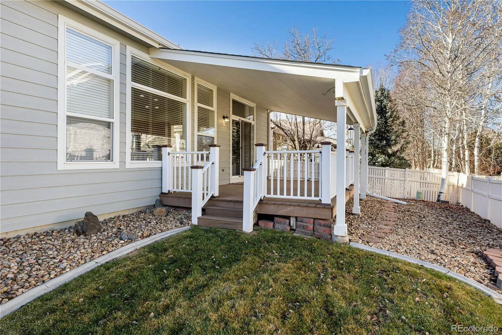 The backyard is professionally landscaped and easy to maintain. Enjoy a covered Trex deck with plenty of room for outdoor dining, seating, and grilling, plus manageable lawn space without the upkeep of a large yard.