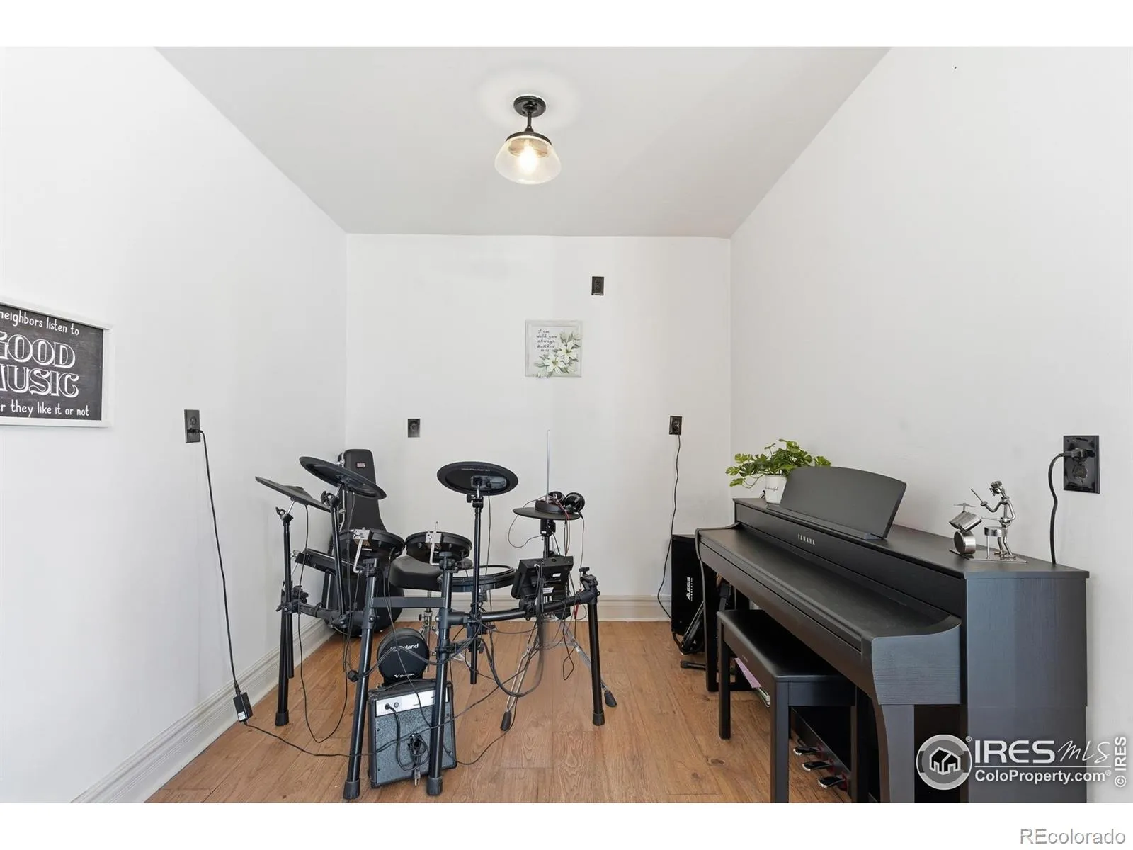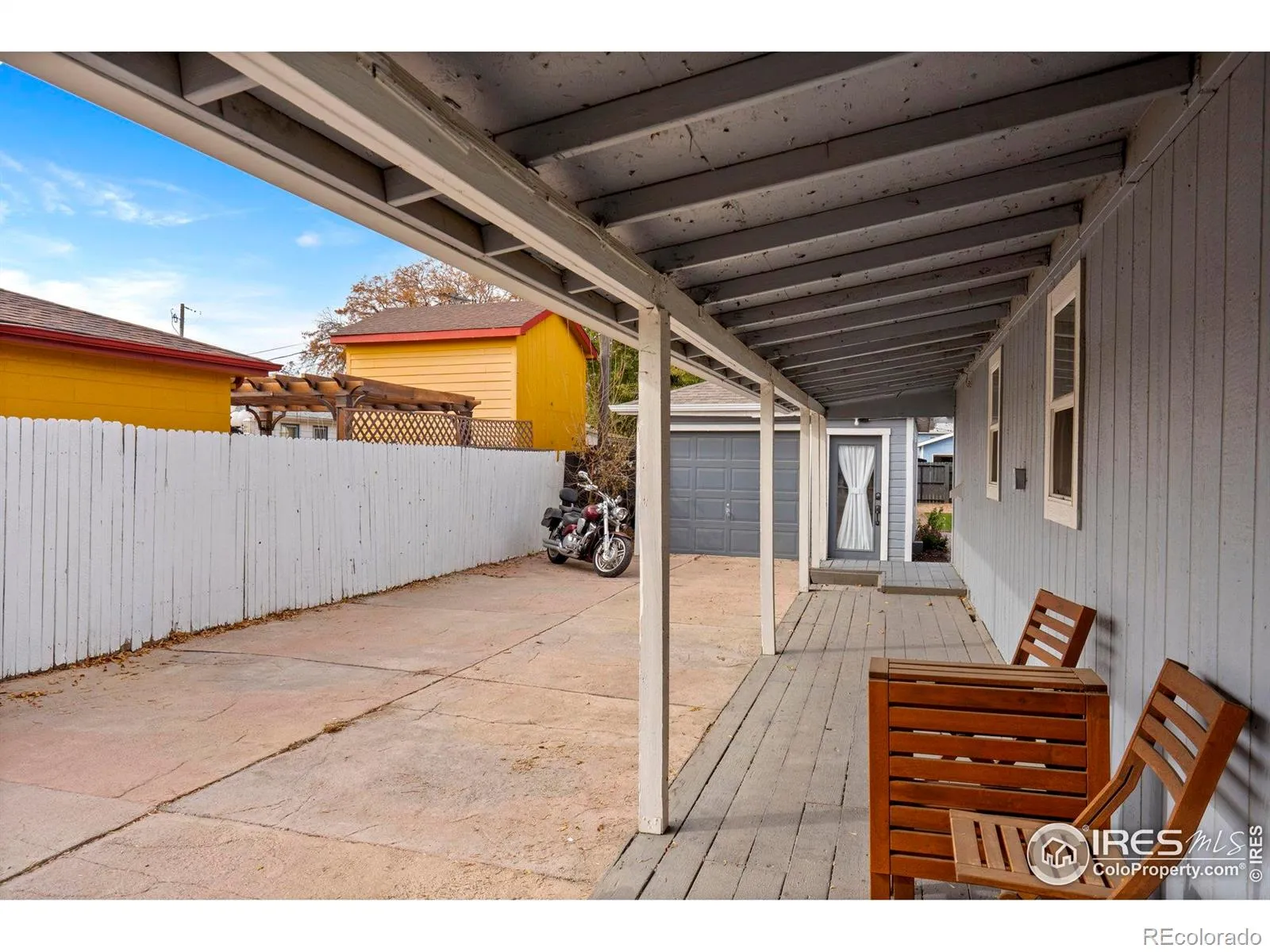 The kitchen is the heart of this charming light filled bungalow with original hardwood floors, generous counter space, ample cabinetry, and room for a dining table. Designed for everyday living and easy entertaining. The living space is bright and welcoming. Two well sized bedrooms and a full bathroom are complemented by thoughtful details such as crown molding and accent lighting. With 921 square feet in the main home, the layout feels intentional and efficient. A standout feature is the approximately 282 square foot converted garage, now a private, quiet studio-style flex space with a separate entrance and bathroom (no kitchen). Finished similar to a family room or extended bedroom, this space is ideal for a remote worker, small business owner, creative studio, or private guest retreat. Set on a quiet, tree-lined street in an established neighborhood, the home is walkable to the Heritage Library and Cultural Center. The fully fenced front and back yard sits on a level lot and is designed for outdoor living, featuring a large extended deck and permanent fire pit. Additional highlights include alley access, an oversized detached two-car garage, and a plethora of space for parking work vehicles, campers, or recreational toys. No HOA and no metro district, offering rare flexibility and freedom. Refined, flexible, and full of character-this is bungalow living, elevated.