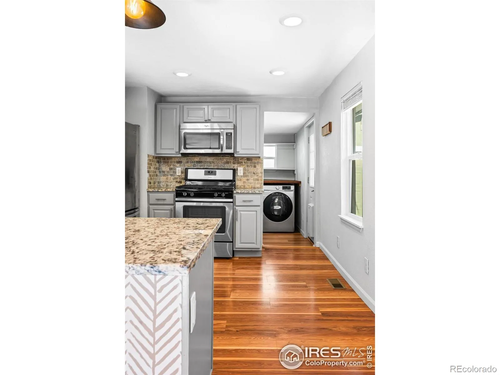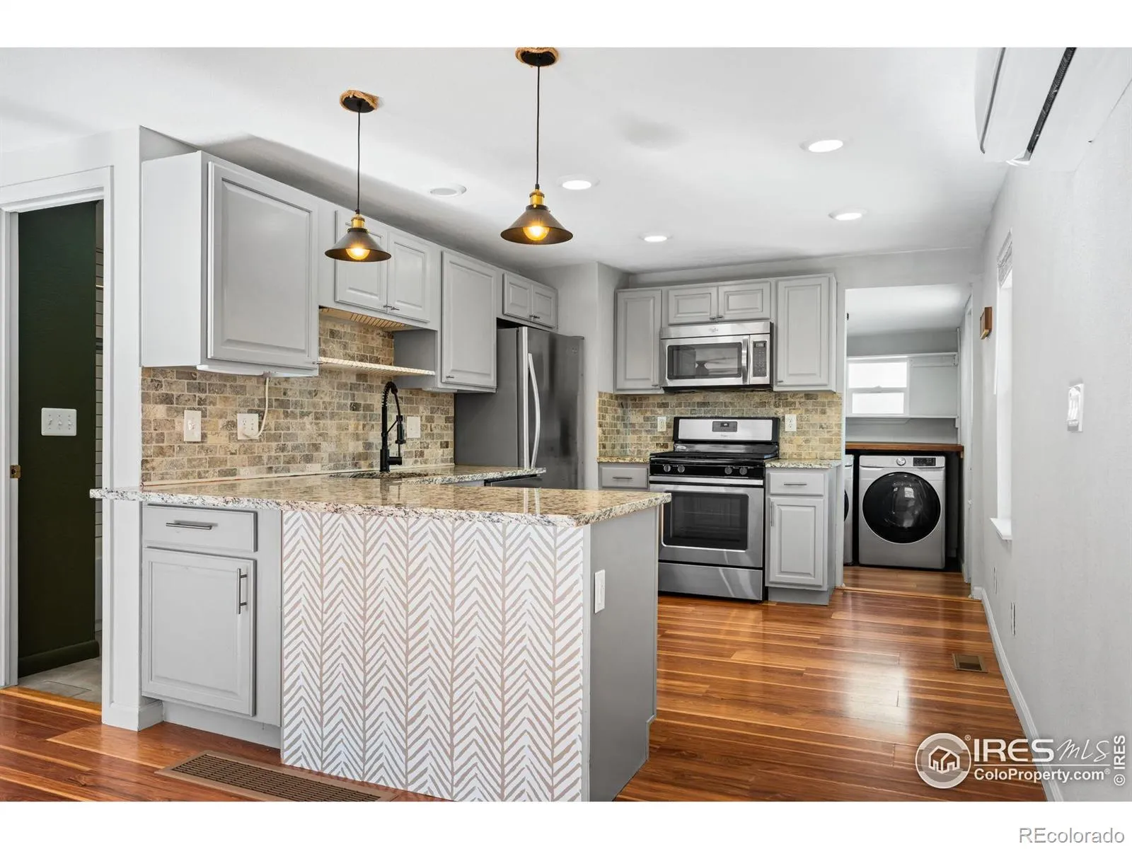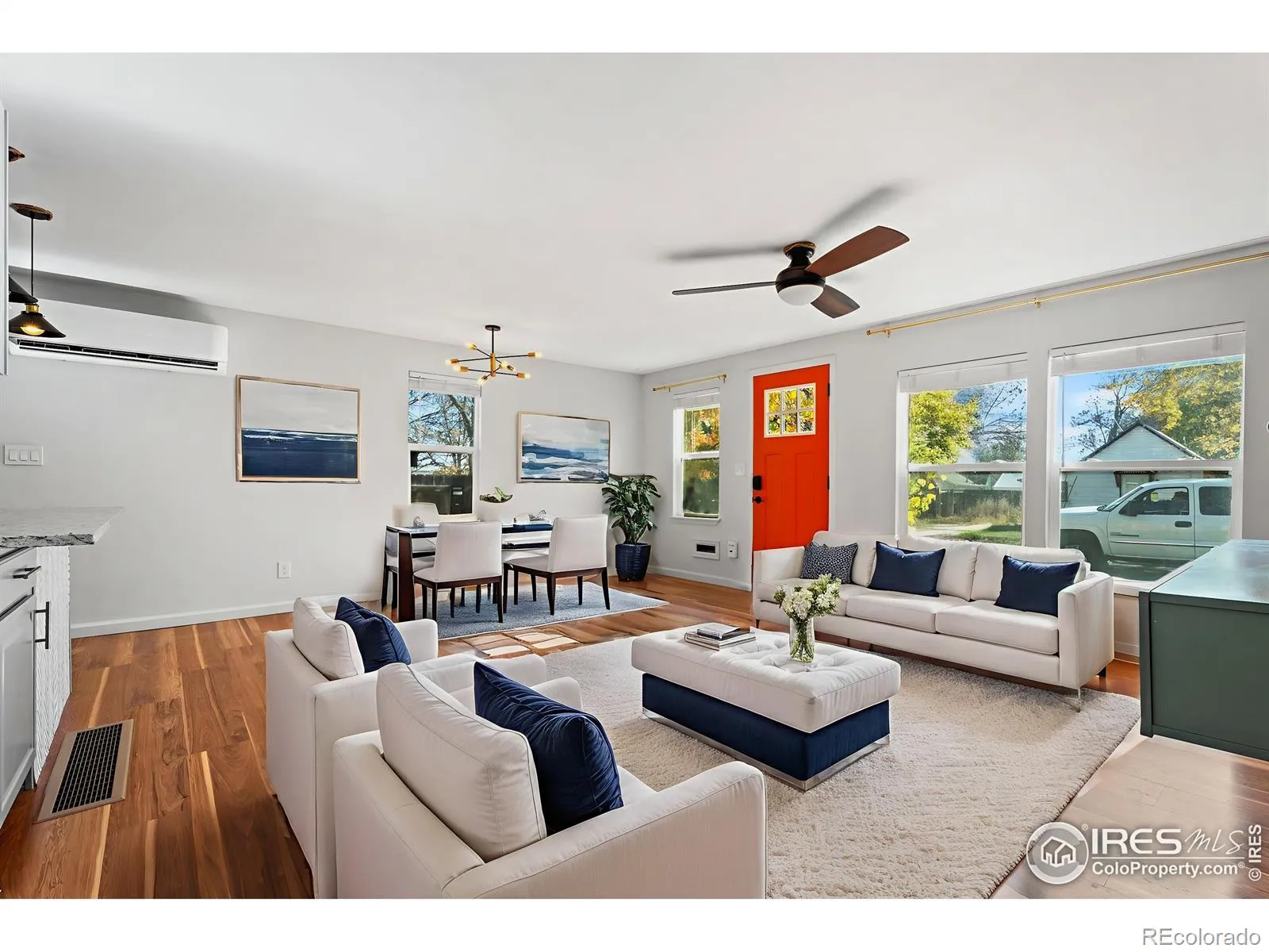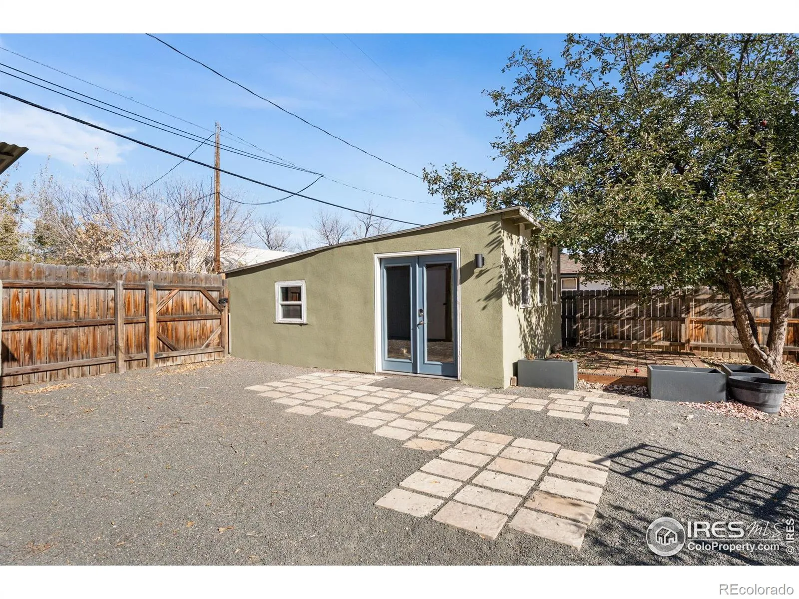 Charming Bungalow in Historic Downtown Loveland. Just minutes from downtown, this beautifully remodeled bungalow perfectly blends vintage character with modern comfort. Inside, an inviting open floor plan features three bedrooms, newer stainless-steel appliances, washer and dryer, hot water heater, updated cabinetry, and granite countertops that combine style and function. Custom finishes, accent walls, and upgraded fixtures make this home truly one of a kind. The outdoor spaces are just as impressive, with multiple outbuildings including a temperature-controlled building for flex space – ideal for guests, a home office, or a recreation room. The property has been completely refreshed with new landscaping and a sprinkler system designed for easy Colorado living and outdoor enjoyment. Relax in the sunroom off the oversized one-car garage, garden in the spacious backyard with alley access, or tinker in the workshop and garden shed – there’s a space for every passion. A newly installed solar-powered electric gate provides secure driveway and garage access, enhancing privacy and adding an executive feel to this backyard sanctuary. The garage also features an upgraded electrical system, perfect for hobbies or toys. Mature apple trees and colorful flower beds add to the charm of this generous lot, offering the perfect blend of downtown convenience and relaxed neighborhood living. This home is a must-see!
