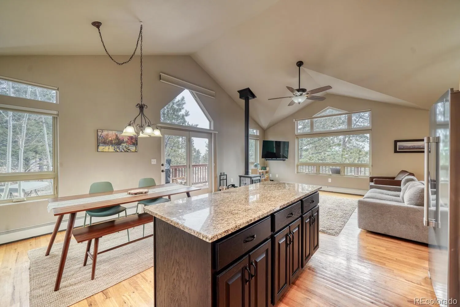 Welcome home to this beautiful, updated, move-in ready mountain escape just 10 minutes from Main Street and 10 minutes from National Forest access with a variety of trails right in your back yard. This forest home, with views, features 3 bedrooms and 3 bathrooms with a bonus room downstairs. Two living areas. Many updates including new stainless steel kitchen appliances, light fixtures, remodeled bathrooms, all new LVP throughout the whole house aside from the main living area where the original oak hardwood flooring has been maintained. Most exciting upgrades include the new Navien hot water on demand combi boiler, new fenced backyard that helps keep pets in and wildlife out. You will have plenty of wildlife here as moose, deer, and elk call the area home year round. A wood burning stove upstairs offers heat throughout the winter, or the brand new boiler with baseboard heating will have you covered. Summer evenings cannot be beat with a large wrap around deck out front and an additional deck off the master bedroom. An Aspen grove right off the kitchen and mature pine trees off the living room makes the setting even more picturesque. Game Trail is an outdoor enthusiasts’ paradise with an elk corridor, private roads for walking and biking, and national forest access. In addition, weekly walking, hiking, paddling and social meet ups. Sellers are motivated — schedule your showing today!
