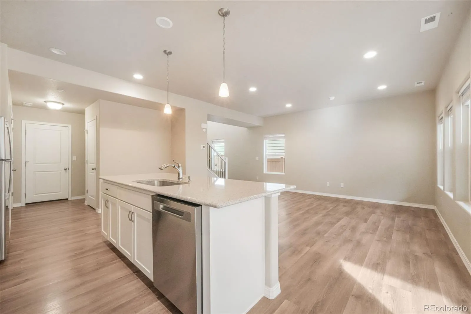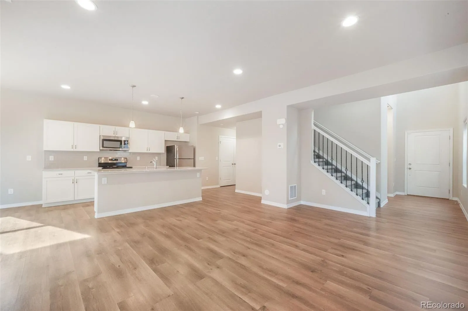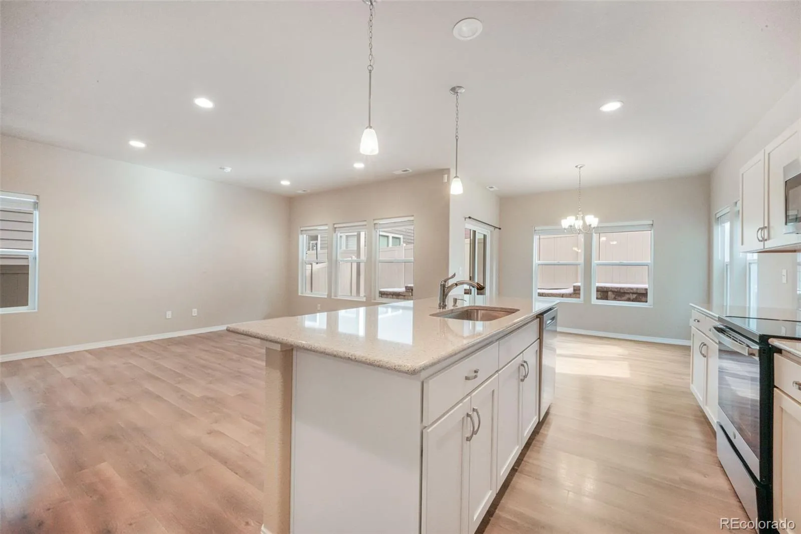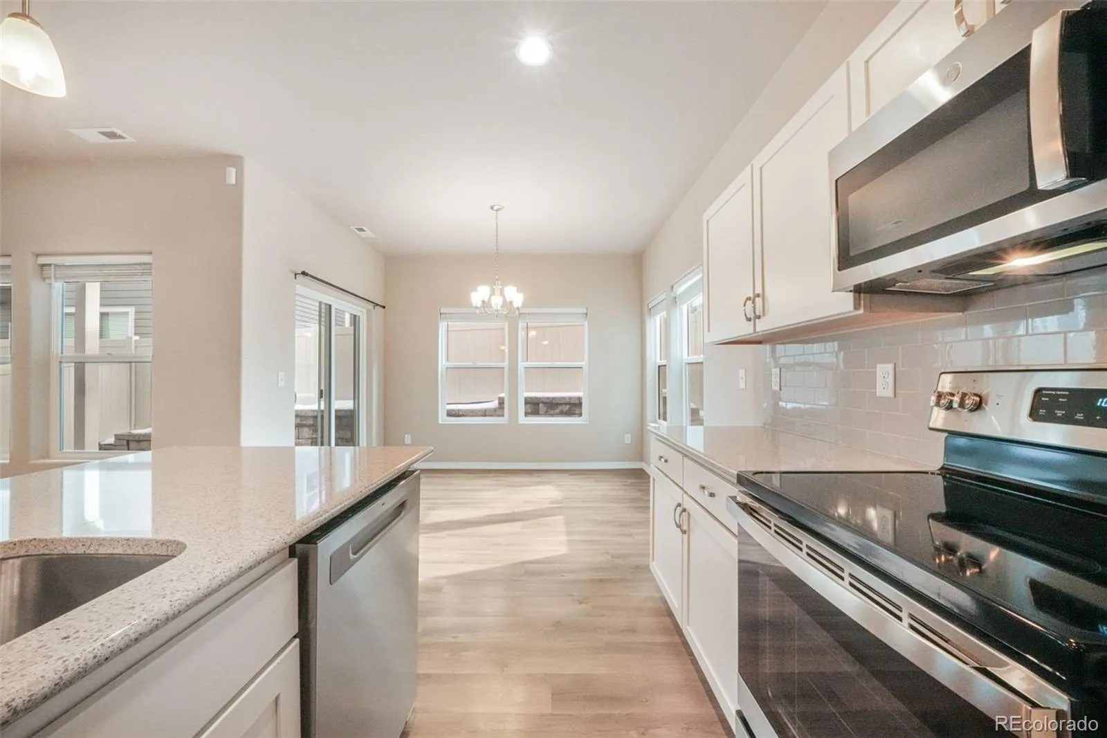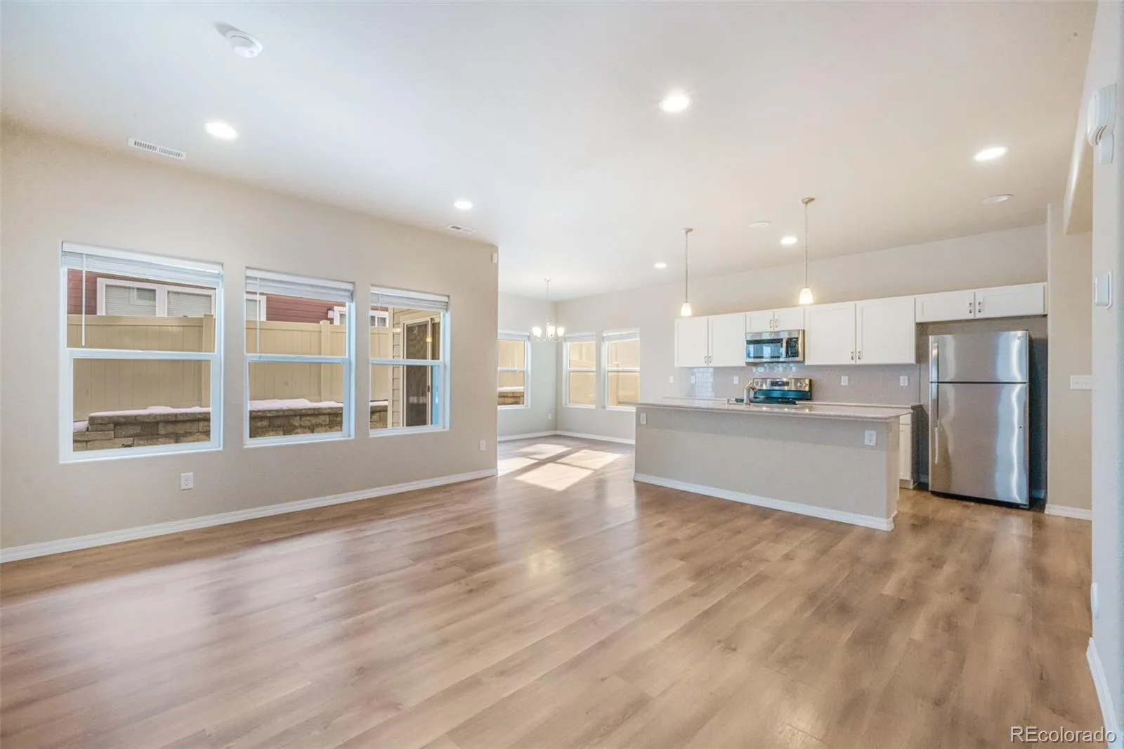 From the moment you arrive, you’ll appreciate the beautiful curb appeal and inviting covered front porch. Inside, the home has been exceptionally well cared for and features laminate flooring on the main level, granite countertops, white cabinetry, stainless steel appliances, and a spacious kitchen with a large island. The open-concept layout flows seamlessly into a generous living room and an eat-in dining area with direct access to the backyard and covered patio.