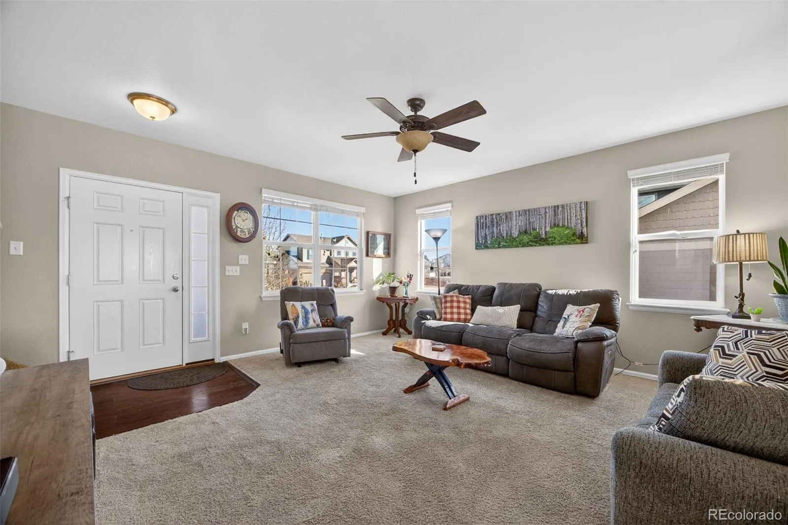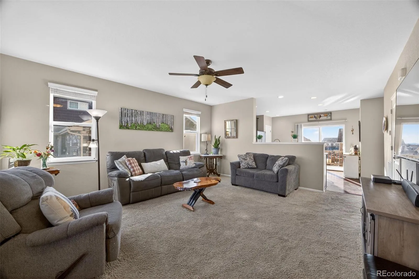 Welcome to this bright, immaculate home set in a quiet, friendly neighborhood with stunning mountain views and unforgettable sunsets from the back deck and backyard. The open living room flows seamlessly into the kitchen—complete with a cozy eating nook, nearby restroom, and easy access to the oversized two-car garage—and out onto the deck overlooking an updated community park. Upstairs, more views await along with four bedrooms, including a spacious primary suite featuring dual sinks and a generous walk-in closet. Three additional bedrooms offer flexibility for a growing family, home office, gym, or guest space, complemented by a full bath. The walk-out lower level opens directly to the backyard and is ready for your personal finishing touches. Outside, enjoy beautifully landscaped yards, multiple nearby parks, and miles of walking and biking trails. The neighborhood comes alive with summer movies in the park and festive holiday decoration contests, and you’re just minutes from grocery stores, restaurants, medical offices, and the Bison Ridge Recreation Center. With an RTD bus stop within walking distance and Denver International Airport only 15 minutes away, this home delivers the perfect blend of comfort, convenience, and Colorado living.