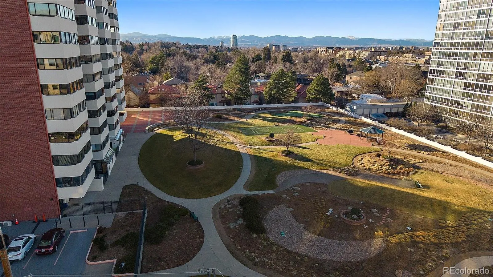 Live the easy life in the legendary Polo Club! This iconic and well-managed building blends convenience, community and comfort. The Polo Club is known for its astonishing 21-story atrium, resort-style amenities and sense of community. Pair that with a 7th-floor, 2 bedroom, 2 bath condo filled with open living space, incredible southern light, mountain views, a large lanai and it’s the perfect combo! The condo features LVP flooring in the main living areas, an open-concept family and dining area, cute kitchen with a pantry, a primary suite featuring a full ensuite bath and walk-in closet, and a second bedroom and bathroom to provide flexibility for guests or a home office. Thick concrete walls and floors ensure exceptional soundproofing and privacy—you won’t be disturbed by neighbors. The Polo Club continues to improve with recent and ongoing building renovations and also provides extensive amenities including: laundry on every level, front desk security and reception, remodeled community/party room available for private events, fitness room, indoor pool and hot tub, 2-acre, walled-in backyard with walking paths, gardens, grilling area, gazebo and relaxation areas, secure underground garage with reserved parking (#37), storage and EV charging stations, on-site property manager (Monday–Friday), guest suites available for rent, lending library and packages delivered directly to condo’s door. Polo Club residents can enjoy an active social calendar with weekly coffee gatherings, themed parties and community events often featuring live music, buffet dining and open bar. Perfectly located on Alameda between University and Colorado where the Cherry Creek Trail crosses through the neighborhood. It’s an easy walk to Cherry Creek North, Bonnie Brae and Glendale, with quick access to trails, dining, and shopping!