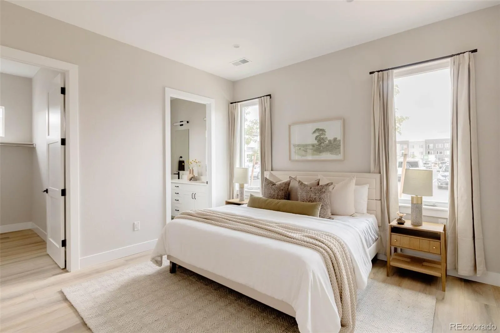 Welcome to ALINE in Central Park — where striking modern architecture, intuitive design & an unbeatable location converge in one of Denver’s most dynamic & walkable neighborhoods. With its bold A-frame silhouette, this 4-bedroom home commands attention & exudes contemporary curb appeal. Inside the “Oak” floor plan, natural light pours through expansive windows, illuminating an open-concept main level thoughtfully designed for seamless everyday living & effortless entertaining. The chef’s kitchen features sleek quartz countertops, a generous center island, tile backsplash & premium stainless steel appliances. Off the kitchen, push back the barn sliding door to discover a main floor office. Beyond, the dining area is anchored by a custom wet bar with floating white oak shelves, a wine fridge nook & an integrated sink. Tucked off the kitchen, the main-floor primary suite offers both convenience & privacy, complete with a large walk-in closet & a spa-inspired bath featuring dual sinks & designer finishes. Upstairs, you’ll find a second primary bedroom with an en-suite bath, two additional bedrooms, a full hall bathroom & a well-placed laundry room for added ease. Step outside onto the expansive second-level deck, a sun-drenched retreat perfect for morning coffee or sunset cocktails. Throughout the home, clean-lined black metal railings provide a cohesive modern edge & the attached 2-car garage adds everyday practicality. Located in the vibrant heart of Central Park, you’re mere steps from Sprouts, the 29th Avenue Town Center, seasonal farmers markets, live music on the green & an array of shops, restaurants & top-rated schools. The Anschutz Medical Campus is just 12 minutes away, while the nearby light rail offers easy access to downtown Denver (16 minutes) & DIA (22 minutes). With low-maintenance living, lock-&-leave ease & miles of nearby parks & bike trails, this home offers the ultimate blend of urban energy & neighborhood charm.