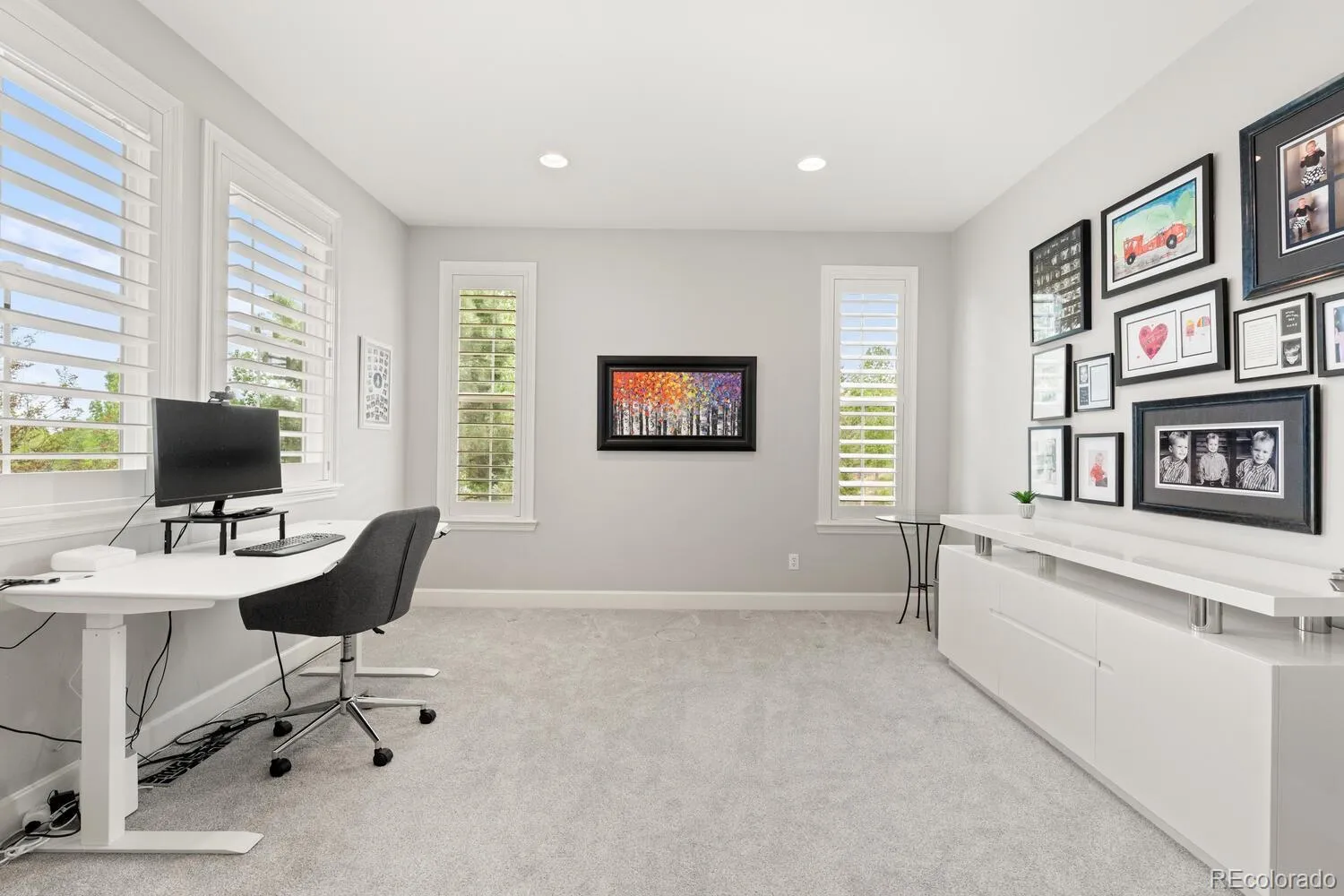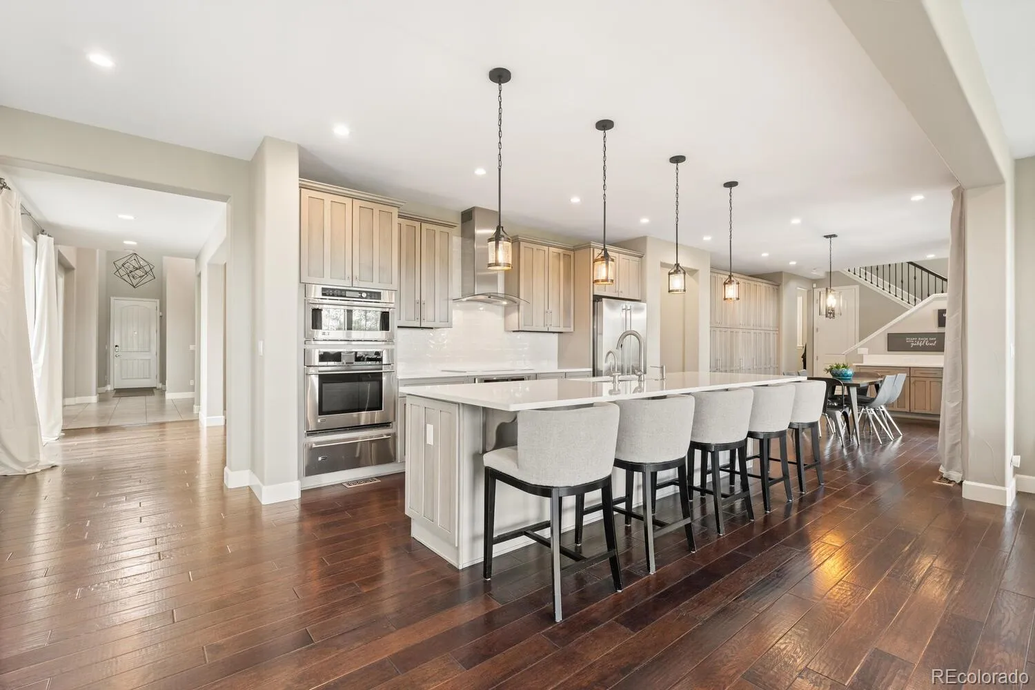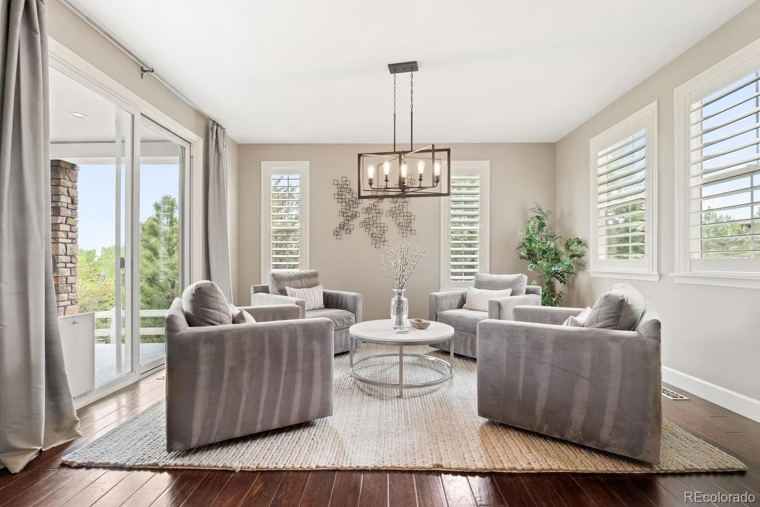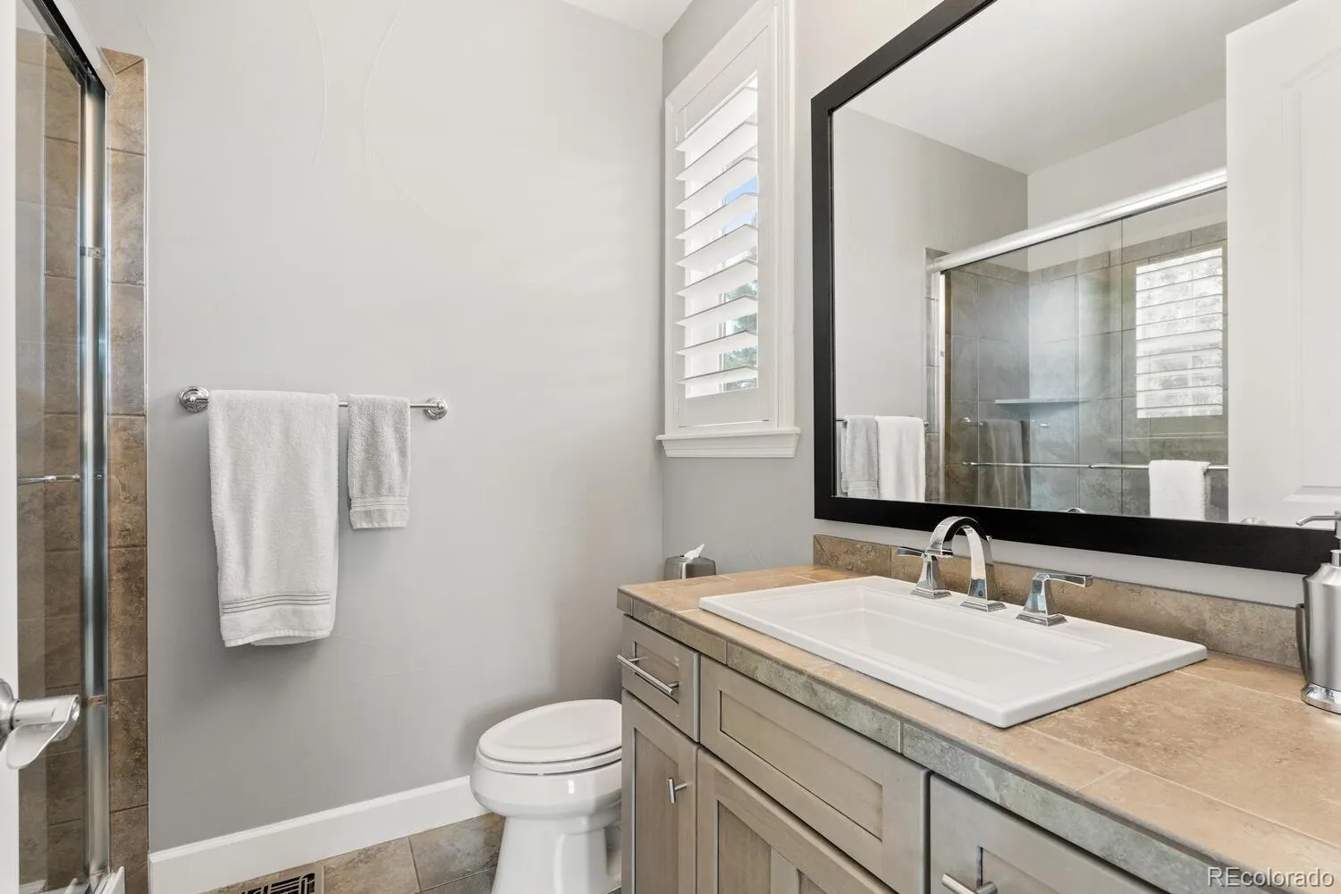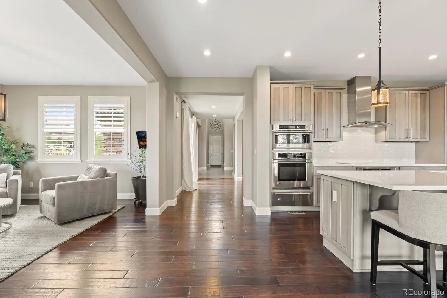 This meticulously maintained, move-in-ready home is nestled on a premium lot offering mountain views and designer finishes throughout. Upon entry, you’ll be greeted by vaulted ceilings, expansive mountain vistas, and exquisite lighting. The kitchen is an entertainer’s dream, equipped with high-end appliances, a large island, ample cabinetry, and an eat in kitchen with doors to patio. The main floor also features a private bedroom with an en suite, an office, dining room with a wet bar and sliding doors to a secluded patio, a great room, and a versatile bonus room. Upstairs, the spacious primary suite includes a fireplace, a sitting area, and a luxurious bath with dual sinks and a generous walk-in closet. Three additional bedrooms—two with en suite baths—along with a laundry room and a loft that opens to an upper deck with a hot tub, perfect for soaking in the mountain scenery, complete this level. The finished lower level offers a great room with a wet bar, a bonus room that could easily be converted into a bedroom, and a bathroom. This home also boasts a rare 4-car garage, front and rear staircases, and an in-ground trampoline. Step outside to your private patio and relax by the fireplace while enjoying breathtaking Colorado sunsets! Embrace the Backcountry lifestyle with resort-style pools, a fitness facility, trails, parks, ponds, and so much more.