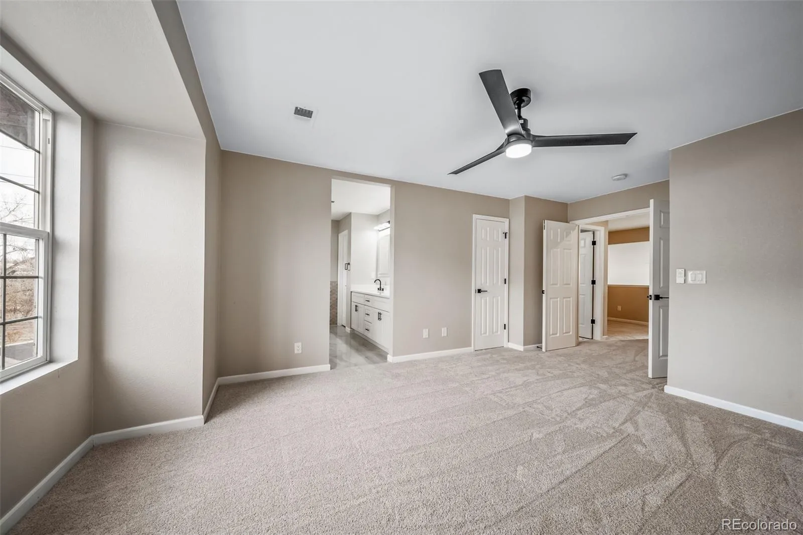 The spa-inspired primary suite is a true retreat, offering a custom walk-in shower, freestanding soaking tub, dual vanities, and generous his-and-hers closets. Two additional bedrooms and four beautifully updated bathrooms provide comfort and flexibility for guests or home office needs.