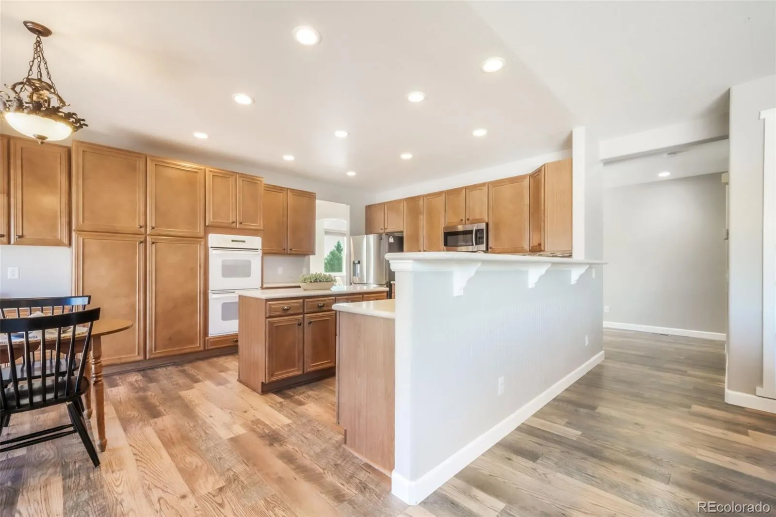 Beautifully updated and exceptionally well cared for two-story home in desirable Woodmoor Greens in Monument, set on a rare .63-acre lot backing to open space with sweeping Pikes Peak views. From the moment you arrive, the curb appeal stands out with a curved driveway offering extra parking and a spacious three-car garage. An added bonus are the paid-off solar panels, providing long-term energy savings and efficiency.
