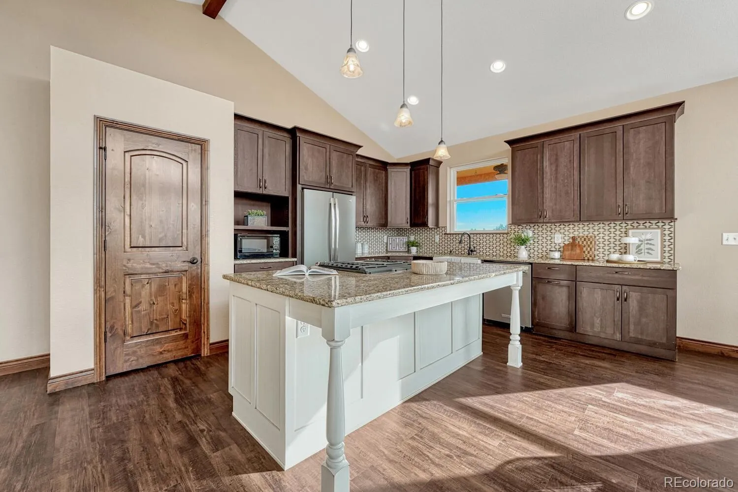 You are invited to experience this is a refined rural retreat offering privacy, space & luxury. Set on 4.92 pristine acres, this raised ranch captures breathtaking 360-degree vistas spanning mountain peaks, rolling forested hillsides, dramatic red rock formations & distant city lights. The sense of space, serenity, & connection to nature is truly unmatched. Inside discover soaring ceilings & a striking wall of windows that frame the surrounding landscape like living artwork. The main level has been completely reimagined through a professional redesign. Vaulted ceilings span the open concept living room with a wood burning fireplace, dining area & a chef-inspired gourmet kitchen. The kitchen is a true showpiece, featuring stainless steel appliances, granite countertops, a large center island, gas range, soft-close cabinetry, abundant pantry/storage space & a farmhouse sink. Massive double hung sliding doors open the living area to a huge wrap around deck, offering front-row views of the spectacular scenery beyond. Also on the main level find a serene primary suite featuring its own wood-burning fireplace & a spa-like five-piece ensuite bath with dual walk-in closets, a soaker tub & luxurious finishes. The primary suite enjoys direct access to the laundry room. A spacious auxiliary bedroom and full bathroom complete this level. Downstairs discover two additional bedrooms, a full bathroom, & direct access to the 3 car garage. For those who work hard & play hard, enjoy a large 1,750 sqft shop with space for two car lifts (14+ ft ceilings), a wood-burning stove, 200-amp panel, multiple 220v outlets & a dyno pit. The shop slabs are 6″ concrete & doors are 10ft x 10ft. The shop features a 420 sqft mezenne for additional storage or recreation. Multiple fenced in areas allows for horses, pigs, goats, or chickens! Every detail reflects exceptional pride of ownership. Just as impressive as the home itself is the lifestyle it affords—peaceful, private & undeniably elevated.