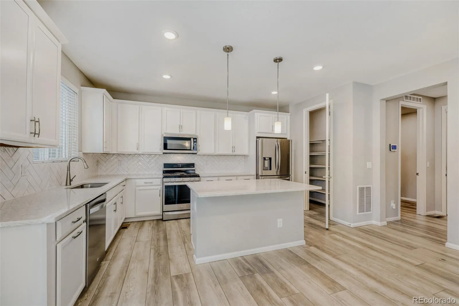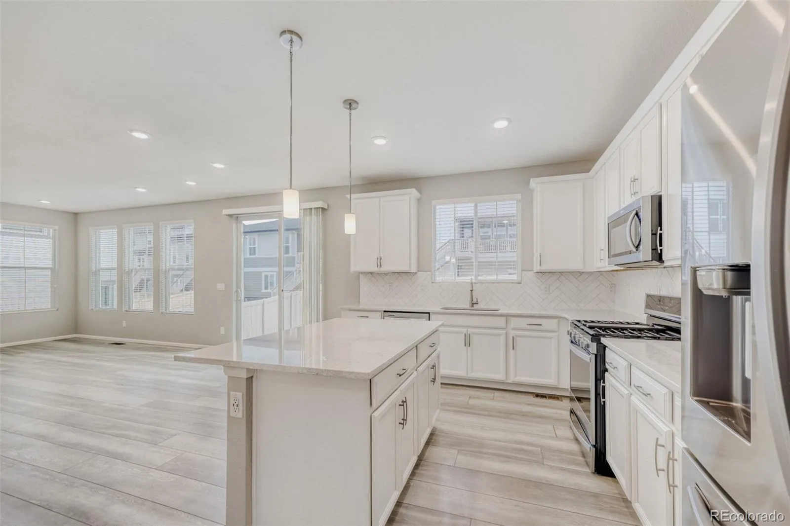 Step inside and you immediately feel it – this home is bright, warm, and easy to love. Sunlight fills the open kitchen and living area, setting the tone for relaxed mornings and comfortable evenings. The kitchen truly anchors the home, with a spacious island that naturally draws people together, whether it’s coffee before work, homework after school, or friends lingering while dinner comes together. The dining area flows effortlessly to the back patio, making indoor-outdoor living simple and inviting. Upstairs, the loft offers a flexible retreat that fits your life. It’s cozy enough for movie nights, quiet enough for reading or working from home, and open enough to adapt as your needs change. Throughout the house, natural light and an open layout create a calm, welcoming atmosphere that feels both modern and comfortable. Built just three years ago, this home offers the peace of mind buyers are looking for. Thoughtful upgrades like a tankless water heater, smart thermostat, humidifier, and water softener make everyday living more efficient. Stylish and durable LVT flooring adds warmth, and the fully finished garage keeps everything clean and organized. Outside your door, life at The Meadows is about more than just the house. Spend summers at the pool, enjoy concerts in the park, celebrate seasonal festivals, and explore nearby trails and open space for biking and hiking. Castle Rock’s shops, restaurants, and community events are only minutes away, offering small-town charm with modern convenience. This is the kind of home where daily routines feel special and memories are made naturally. Come see it in person, you’ll know right away if it’s meant to be yours.