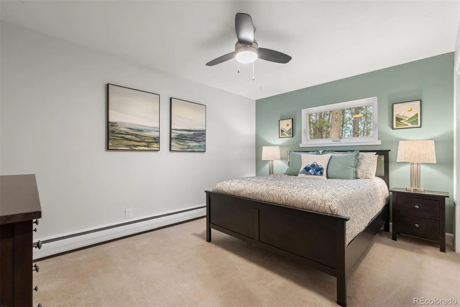 Stylish upgrades extend throughout the home, including a newly renovated full bath with custom glass doors and in-floor heating, as well as an upgraded primary bath with a custom shower, glass doors, and heated floors. Two custom, high-efficiency gas fireplaces add style and ambiance and new ceiling fans enhance comfort in three bedrooms. The new Lochinvar boiler system provides efficient radiant heat and instant hot water, complemented by a new water softening system. Outdoor living is exceptional. The covered front patio with brick flooring offers a welcoming arrival, while the custom TREX rear deck with gazebo is ideal for entertaining. The usable acre sized lot features custom landscaping with natural rock, staircases, deer- and elk-resistant plantings, two storage sheds, and a large dog run with direct garage access. You’ll appreciate the oversized heated garage, RV parking with a 30-amp disconnect and a Generac 11kW generator. Modern, meticulously maintained, and wonderfully appointed, this home offers effortless Evergreen living—both indoors and out.