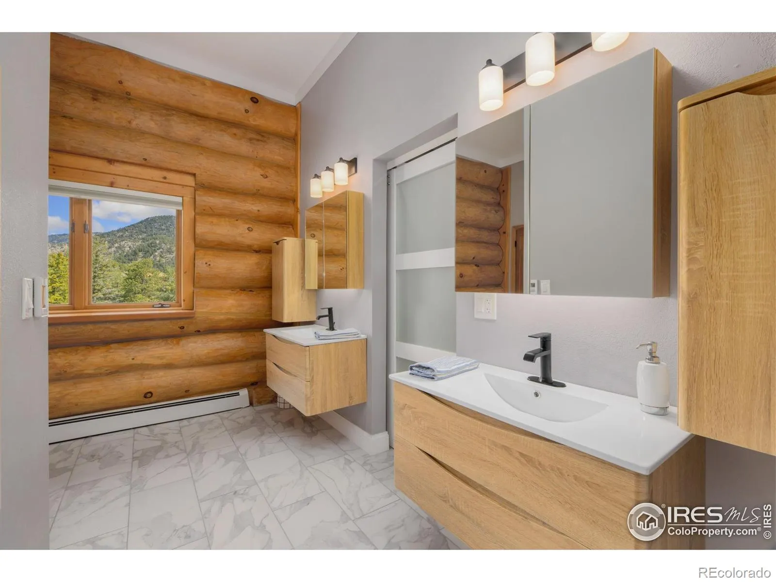 An extraordinary mountain retreat bordering Roosevelt National Forest, 95 Choctaw offers a rare blend of privacy, craftsmanship, and refined comfort on 11 pristine acres. This authentic log residence is thoughtfully positioned to capture the serenity of its natural surroundings while delivering a level of quality and detail discerning buyers expect.Inside, the home balances rustic elegance with modern upgrades. The great room is anchored by a dramatic floor-to-ceiling wood-burning fireplace, highlighted by a custom hand-painted mural of Bear Lake and Longs Peak-a striking focal point that reflects the beauty just beyond the walls. The home features three bedrooms and three bathrooms, including a tranquil primary suite complete with a spacious steam shower designed for spa-like relaxation.An upper-level loft offers a refined sitting area with a gas fireplace, an 84″ television, and access to a private balcony overlooking the forested landscape. The lower level provides a versatile bonus space ideal for a private gym, wine cellar, studio, or artisan workspace-allowing the home to adapt seamlessly to your lifestyle.Outdoor living is equally compelling, with a covered front porch, a serene rear patio, a man-made pond, and a designated campsite perfect for entertaining under Colorado’s night skies. Direct access to National Forest trails ensures immediate connection to hiking, exploration, and quiet moments in nature.Located just 15 minutes from Lyons and 20 minutes from Estes Park, this exceptional property offers you a personal sanctuary, with city conveniences nearby and proximity to Rocky Mountain National Park adding to its appeal. 95 Choctaw Road is a refined mountain estate-designed for those seeking authenticity, privacy, and elevated Colorado living.