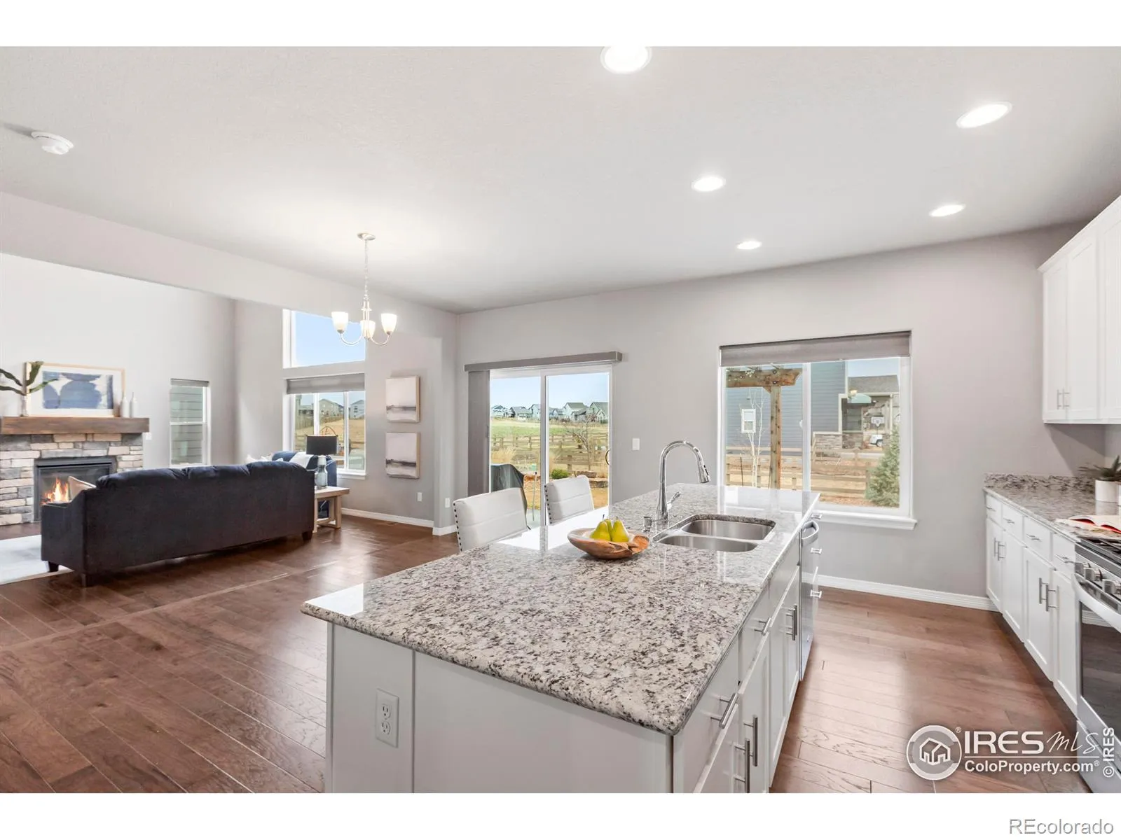 This property is a true gem, offering a perfect blend of style, comfort, and potential. Don’t miss the opportunity to make it your own.Experience the best of modern living at 5461 Homeward Drive, a sophisticated and functional 3-bedroom, 3-bathroom residence in Timnath, CO. This stunning home spans 3,530 square feet and is perfectly situated on a generous 8,515-square-foot corner lot. Step onto newly installed hardwood floors that flow seamlessly throughout the entire home, setting a tone of timeless elegance.The chef’s kitchen is a culinary dream, featuring granite countertops, sleek new hardware on 42″ white cabinets, and top-of-the-line stainless steel appliances, including a brand-new dishwasher.A luxurious butler’s pantry adds convenience and style.The primary suite serves as a true retreat, complete with a spacious walk-in closet and a luxurious soaking tub for ultimate relaxation.The additional bedrooms offer comfort, complemented by thoughtfully designed bathrooms. The home includes air conditioning, an attached garage, and a dedicated laundry area with a washer and dryer. The unfinished basement, with a bathroom rough-in, provides abundant storage and excellent potential for future expansion. Venture outside to an outdoor oasis perfect for entertaining or unwinding, featuring breathtaking mountain views.Enjoy the custom pergola, an extended concrete patio, and professionally landscaped garden beds.This property is a home you don’t want to pass by, offering a perfect blend of style, comfort, and potential. Don’t miss the opportunity to make this contemporary home your own.