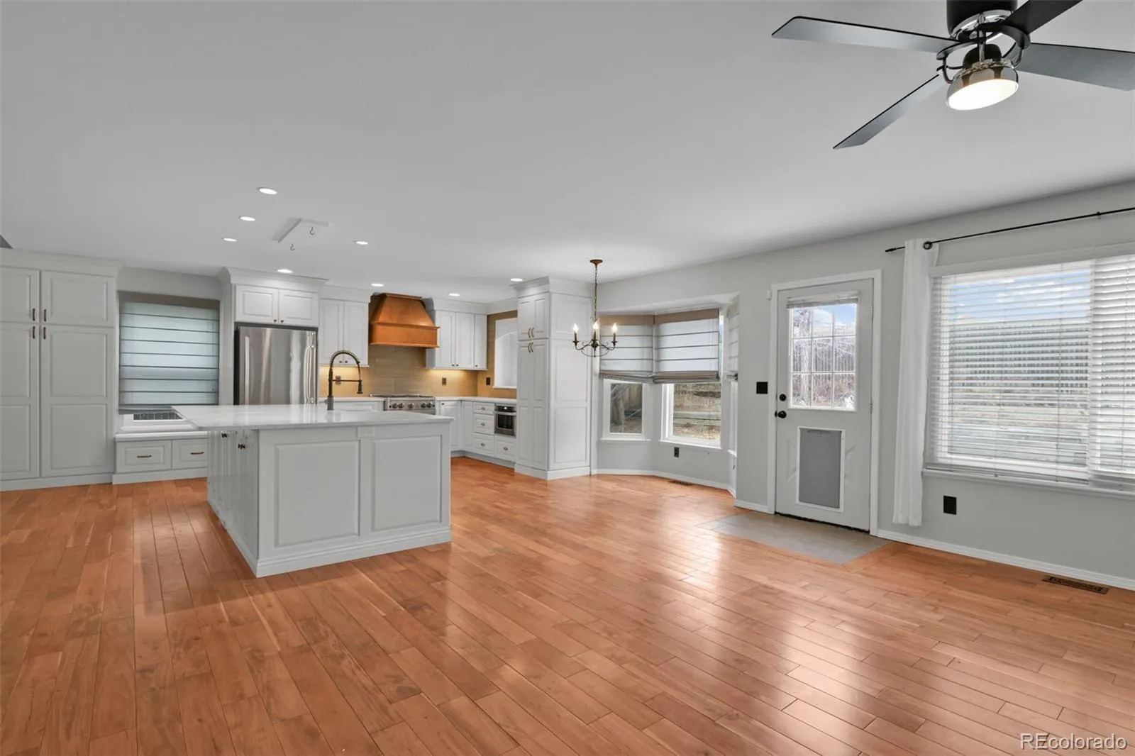 Two-story home with fresh exterior paint and thoughtful updates throughout, located in the Sundown Subdivision and conveniently situated near the Powers Corridor with easy access to shopping, gas stations, dining, and nearby hospitals. The upper level features four bedrooms and two full bathrooms, with fairly new carpet and approximately 90% of the space recently repainted. The main level offers a remodeled kitchen with a gourmet stove, large center island, granite countertops, and a cozy wood-burning fireplace. A conveniently located laundry room sits near the attached two-car garage. The finished basement expands the living space with two additional bedrooms, a family room, and a full bathroom, all complemented by new carpet and fresh paint. This well-maintained home offers a functional layout, updated finishes, and generous space across all levels in a desirable, centrally located neighborhood.