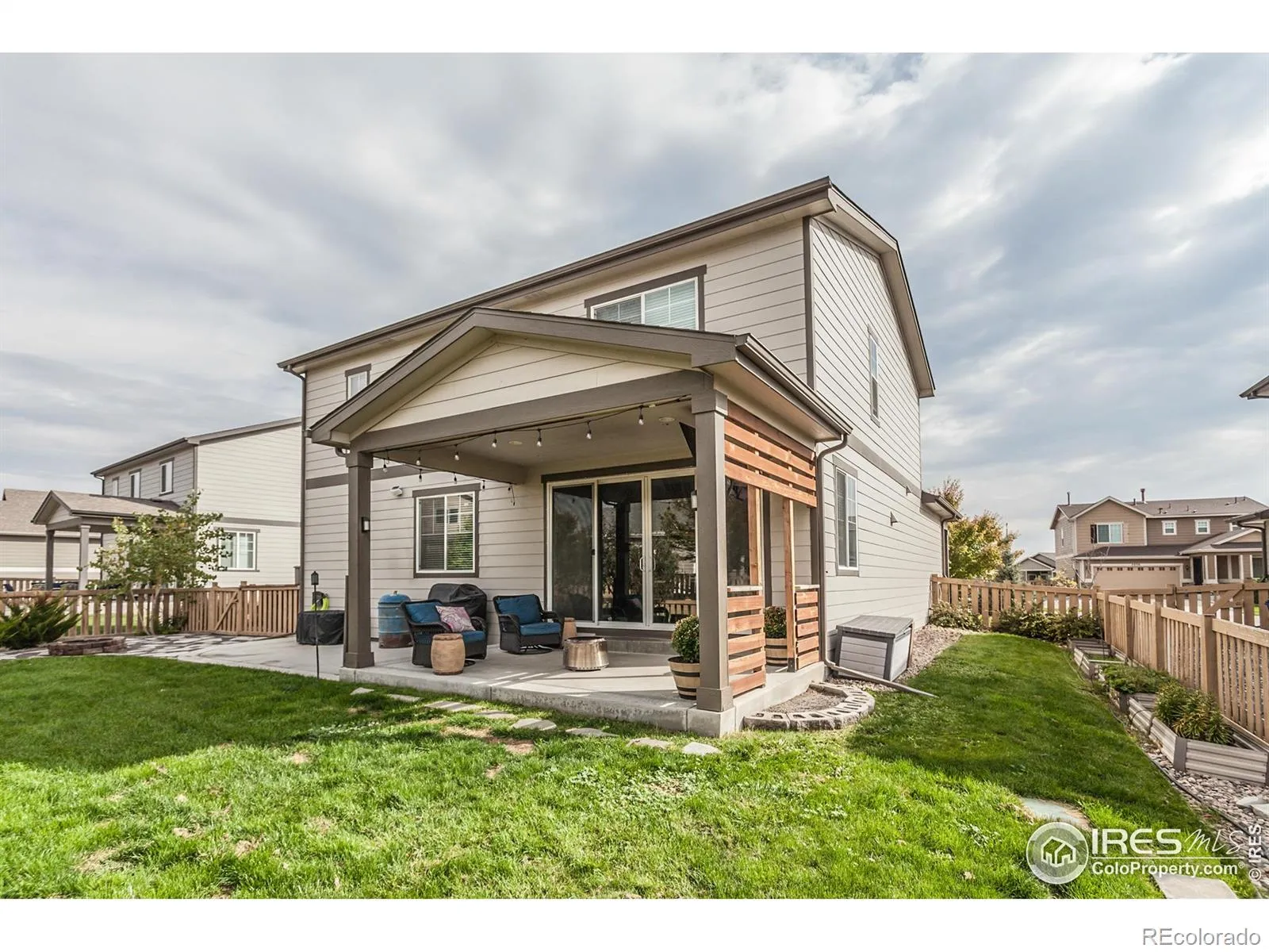 Welcome to this stunning 3-bedroom, 3-bath home in the heart of Timnath, where modern finishes meet inviting indoor and outdoor living. The open-concept layout features hardwood floors throughout the main living areas and an inviting kitchen with quartz countertops, stainless steel appliances, and an oversized island perfect for entertaining. The living room is warm and welcoming with a striking stone fireplace with wood mantle and clever under-stair storage with a custom barn door. Upstairs, you’ll find a conveniently located laundry room and an oversized primary closet complete with a built-in safe. The fully fenced backyard backs to a community greenspace and is designed for outdoor relaxation with an oversized, partially covered patio and built-in stone fire pit. Additional highlights include a main-level study, a 3-car garage, and a solar panel system to be paid off at closing. Enjoy access to neighborhood schools, parks, walking trails, dog park, pools, and pickleball / tennis / basketball courts. This is truly an exceptional place to call home!