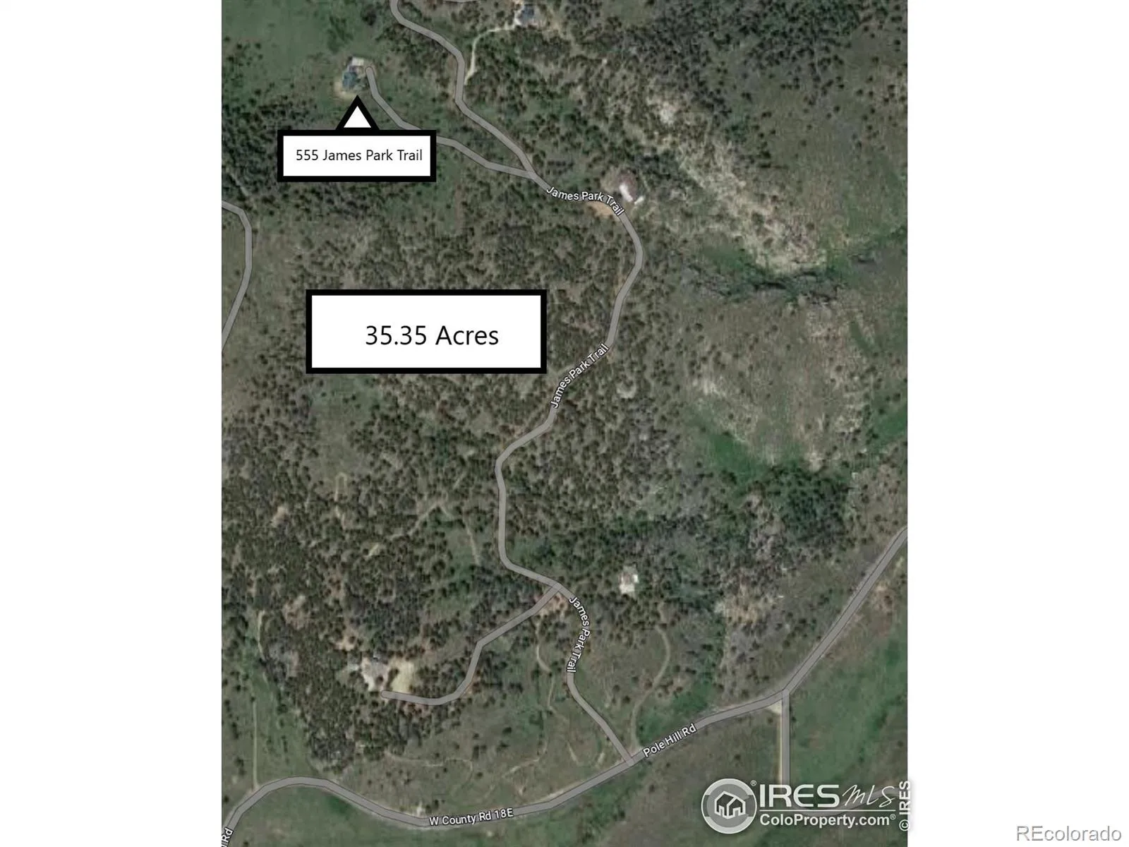 From the intersection of W CR18 and CR29, go west to CR18 towards Carter Lake and Pinewood Reservoir. Turn north on James Park Trail (Re/Max Yard sign) 0.6 miles to property's address.